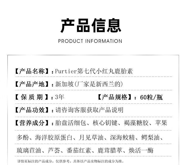 新加坡鹿胎素第7七代小红丸干细胞胶囊鹿胎盘素新西兰 第七代 60粒*1瓶