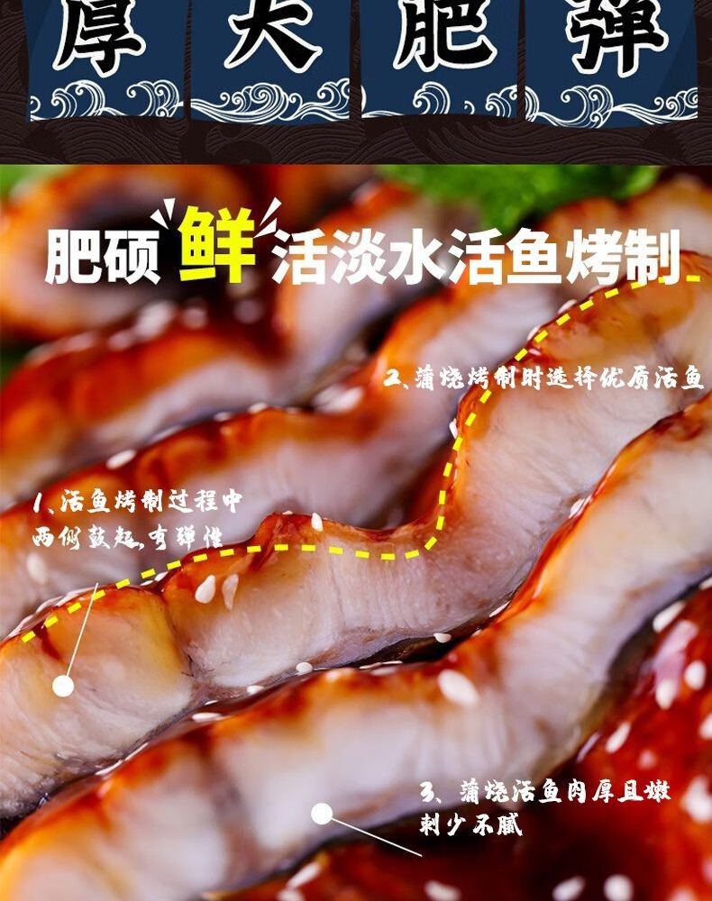 蒲烧鳗鱼风味 日式炭烤鲲鳗 寿司日料鳗鱼饭寿司半成品食材烤河鳗 五条装 250g整条(独立包装)