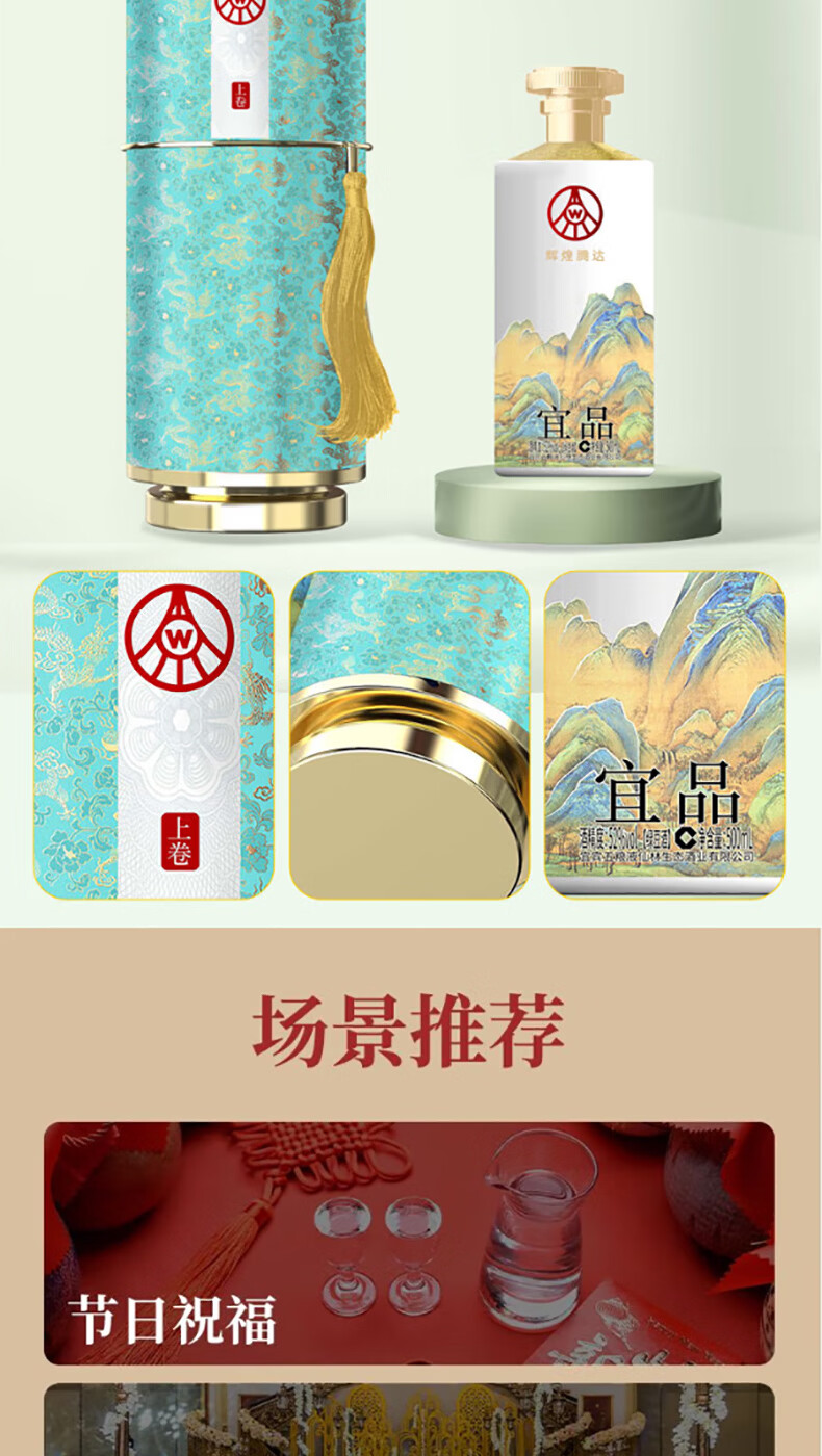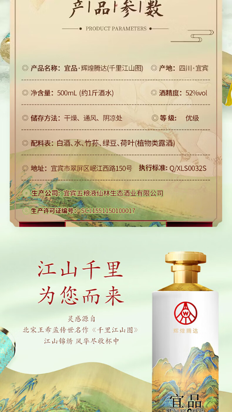 五粮液仙林生态出品 千里江山 卷轴礼盒 送礼优选 商务宴请酒 52%vol 500mL 6瓶 原箱发货