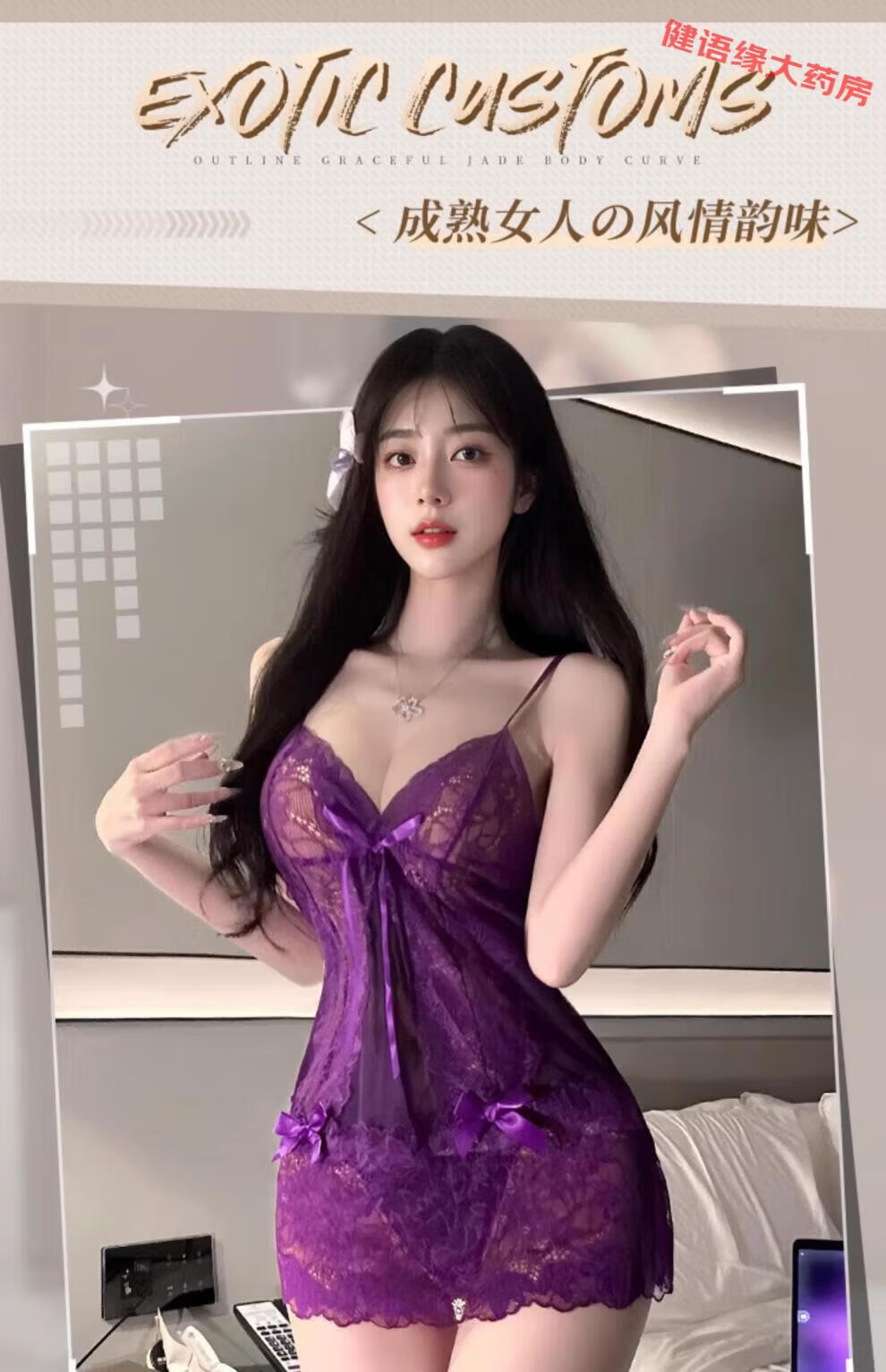 通用性感女紫色睡衣蕾丝欲风激情小胸诱惑战袍qqny火辣 均码[建议 蕾丝魅影紫[睡裙+T裤]