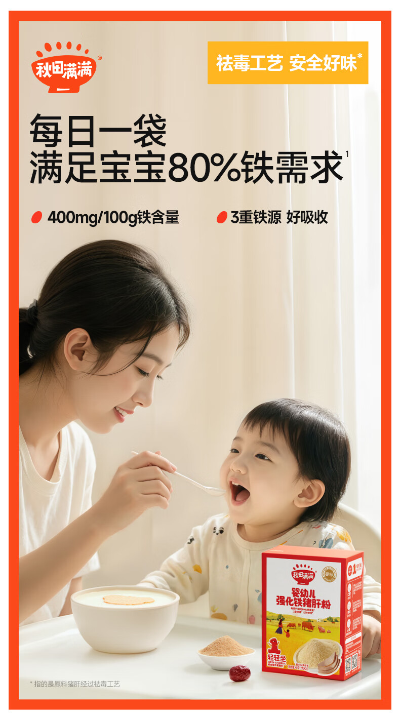 秋田满满猪肝粉婴幼儿食用辅食补铁肝粉宝宝辅食调料试用 婴幼儿强化铁猪肝粉