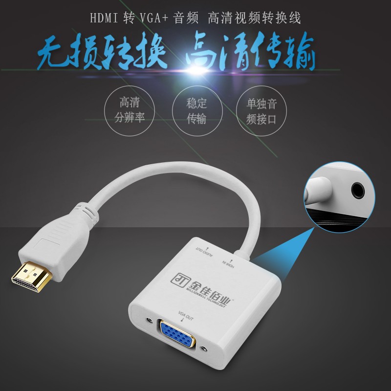 金佳佰业HDMI转VGA线转换器 高清视频转接头适配器 电脑机顶盒连接投影机电视显示器线 Z138 z138HDMI/VGA母 畅享版 带音频