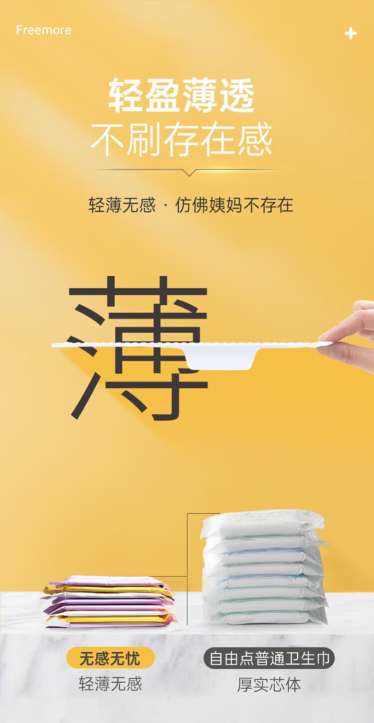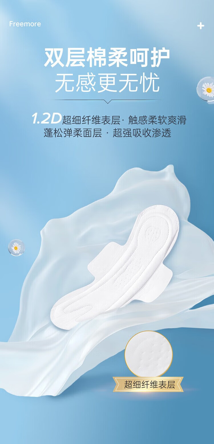 自由点(FREEMORE)无感无忧卫生巾 双层棉柔防漏超薄姨妈巾 日用囤货装4包20片(240mm)