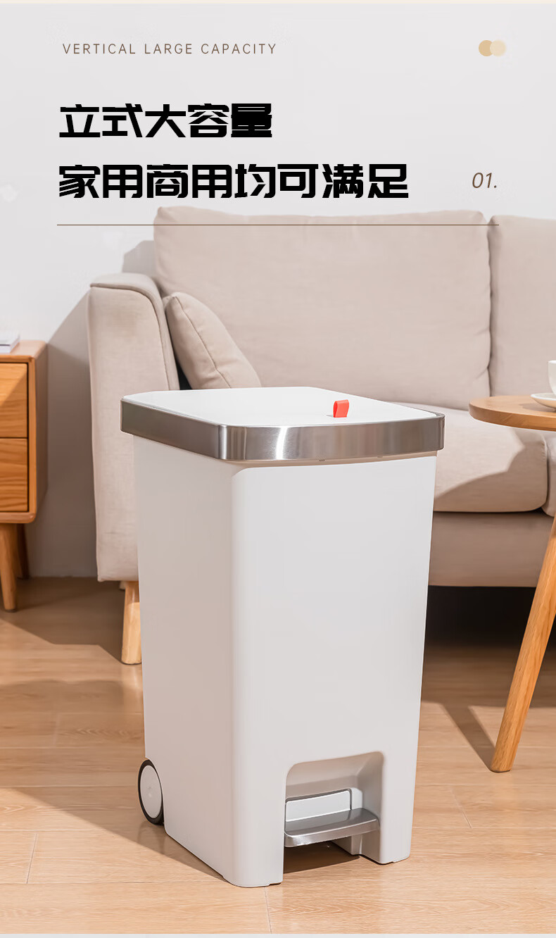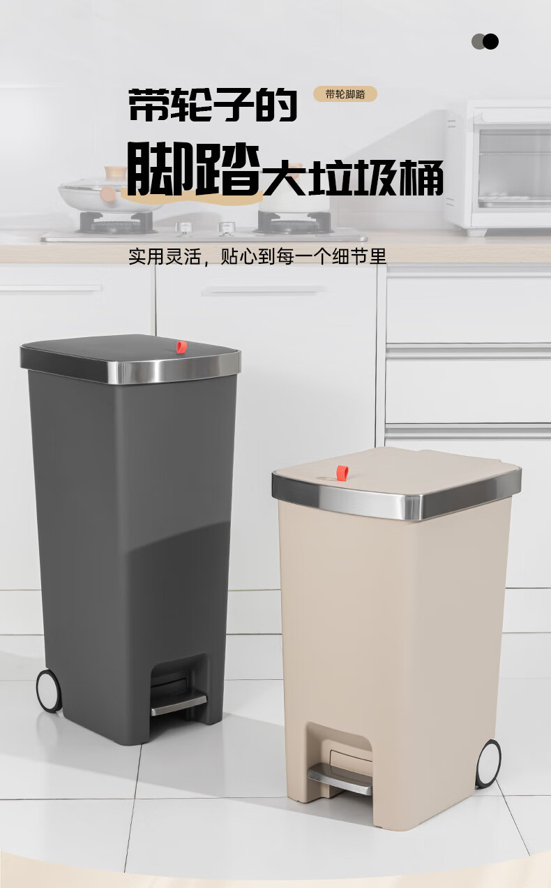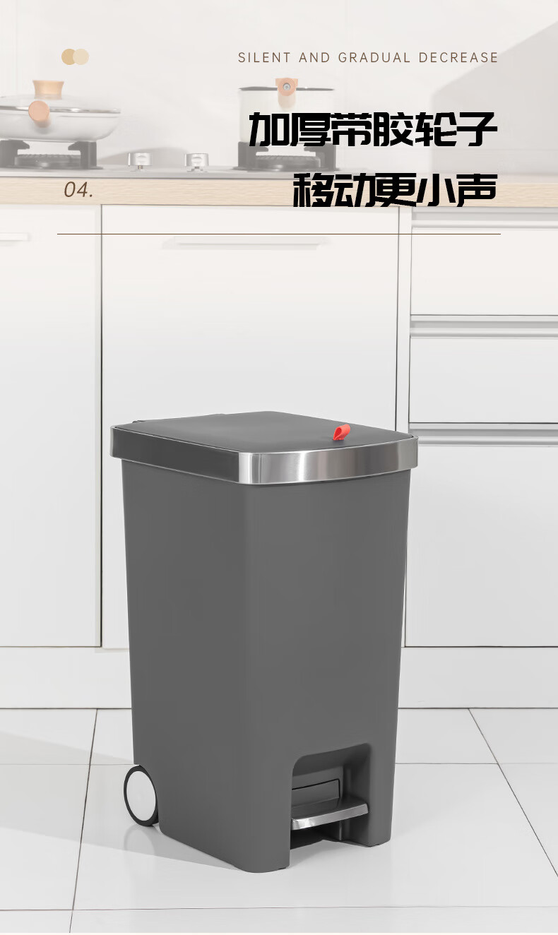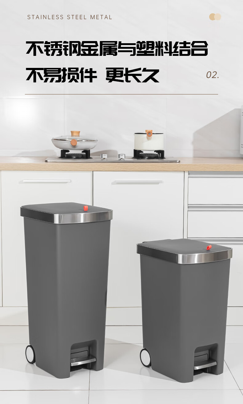 飞达三和厨房专用垃圾桶带盖脚踏家用带轮高款可移动大号大容量客厅厨余桶 15L【手按+脚踏】深空灰