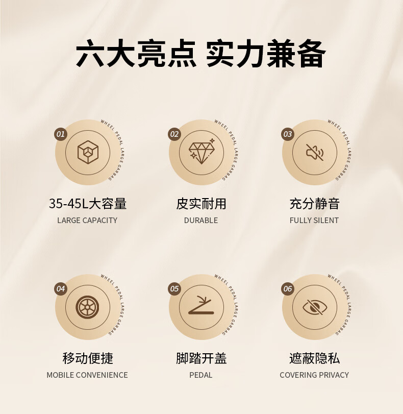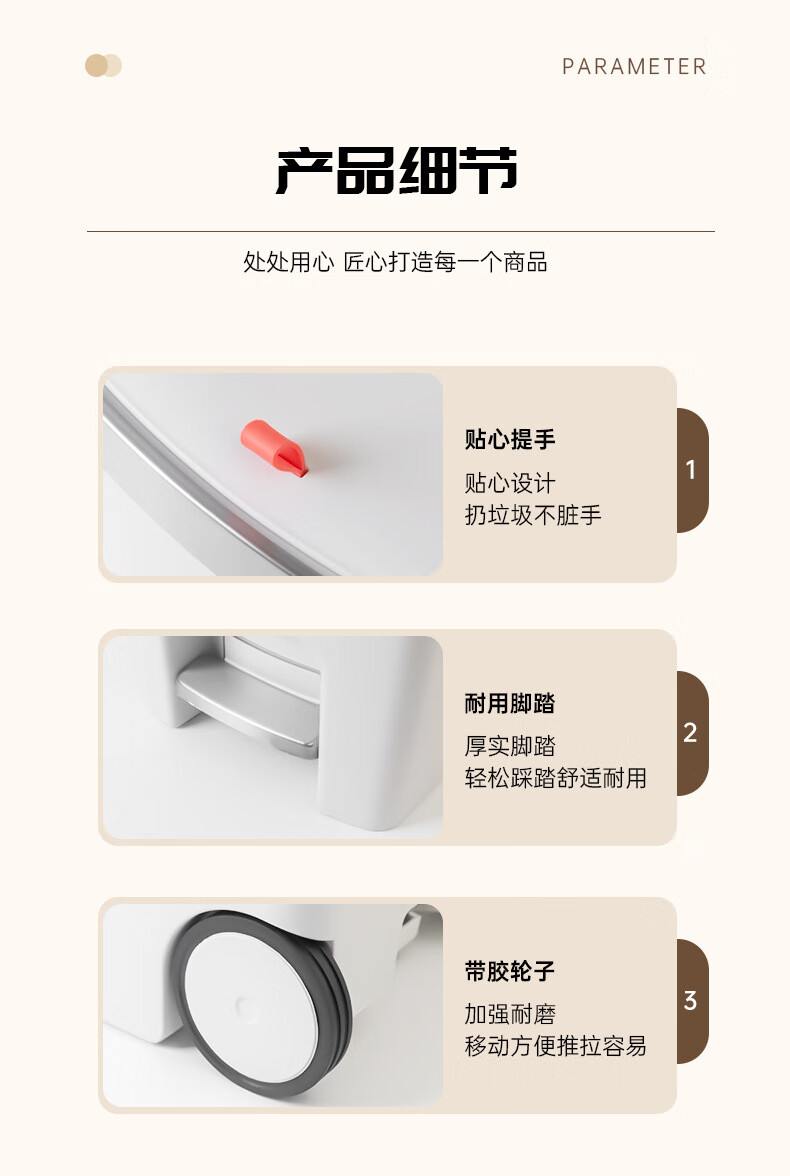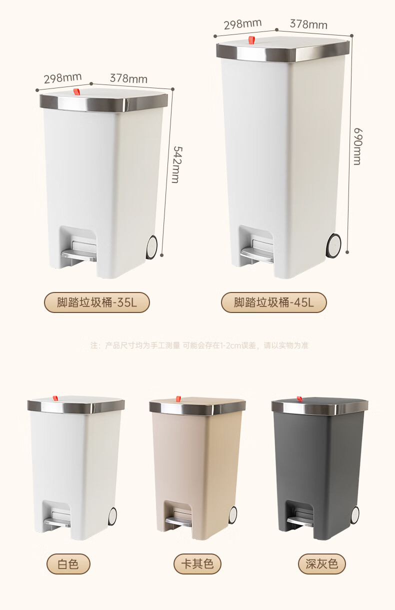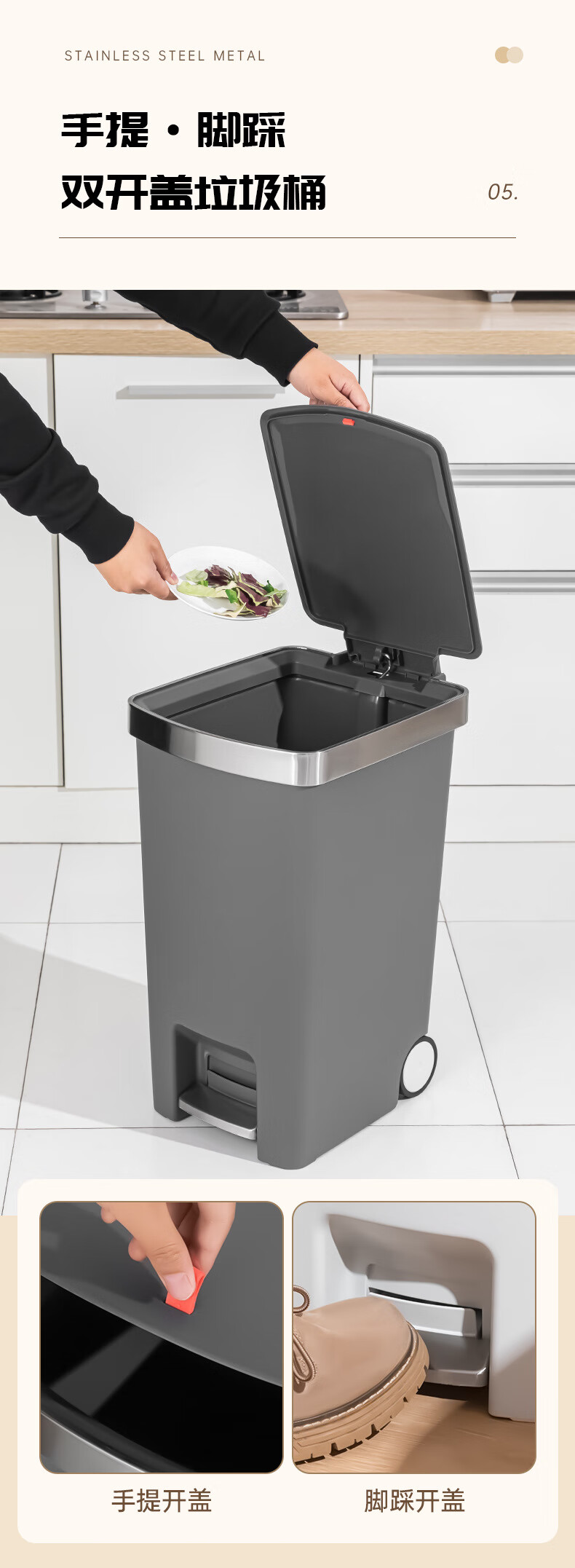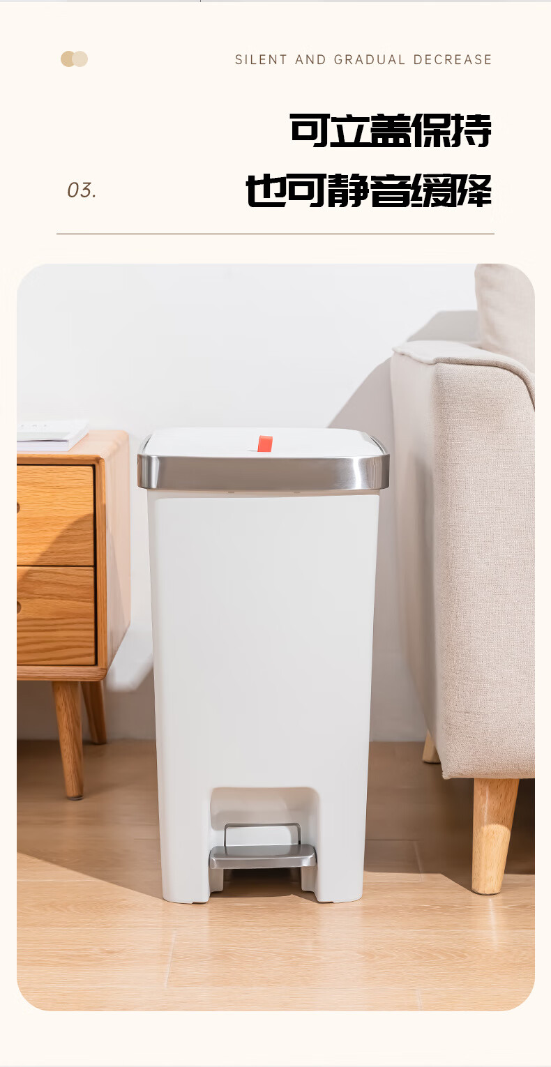 飞达三和厨房专用垃圾桶带盖脚踏家用带轮高款可移动大号大容量客厅厨余桶 15L【手按+脚踏】深空灰