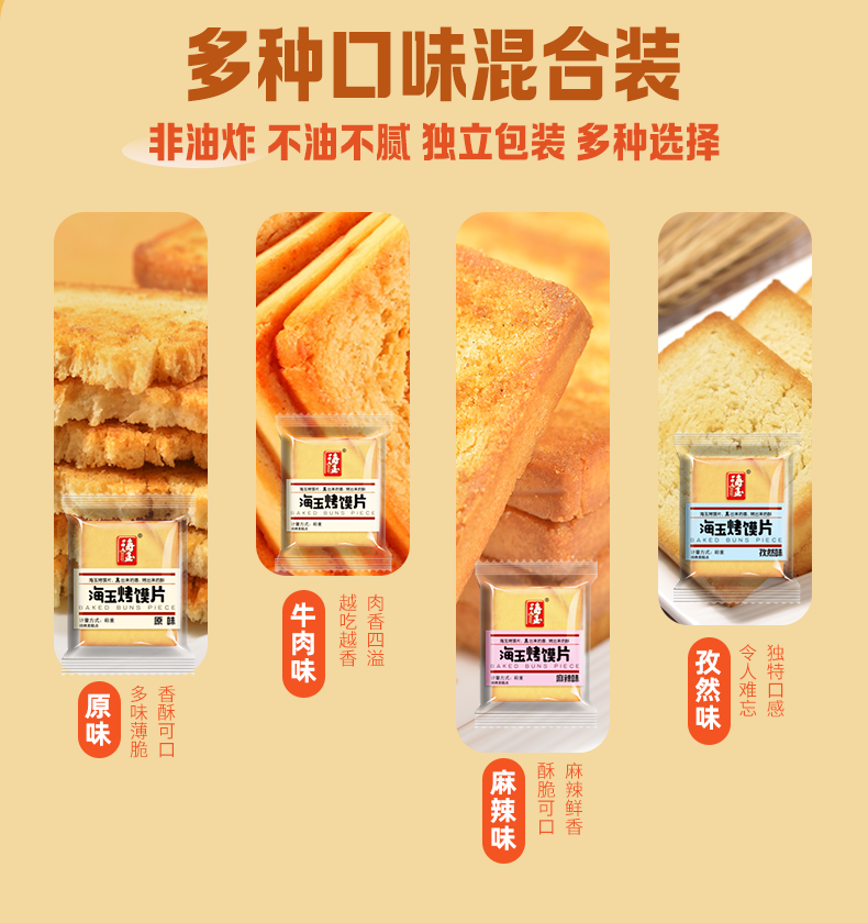 海玉非油炸烤馍片 早餐代餐饼干 休闲零食 混合口味1060g 山西特产