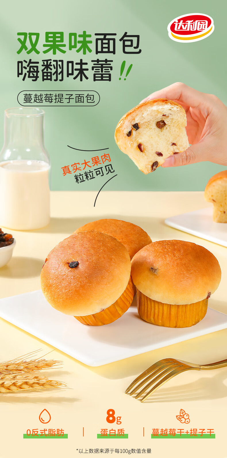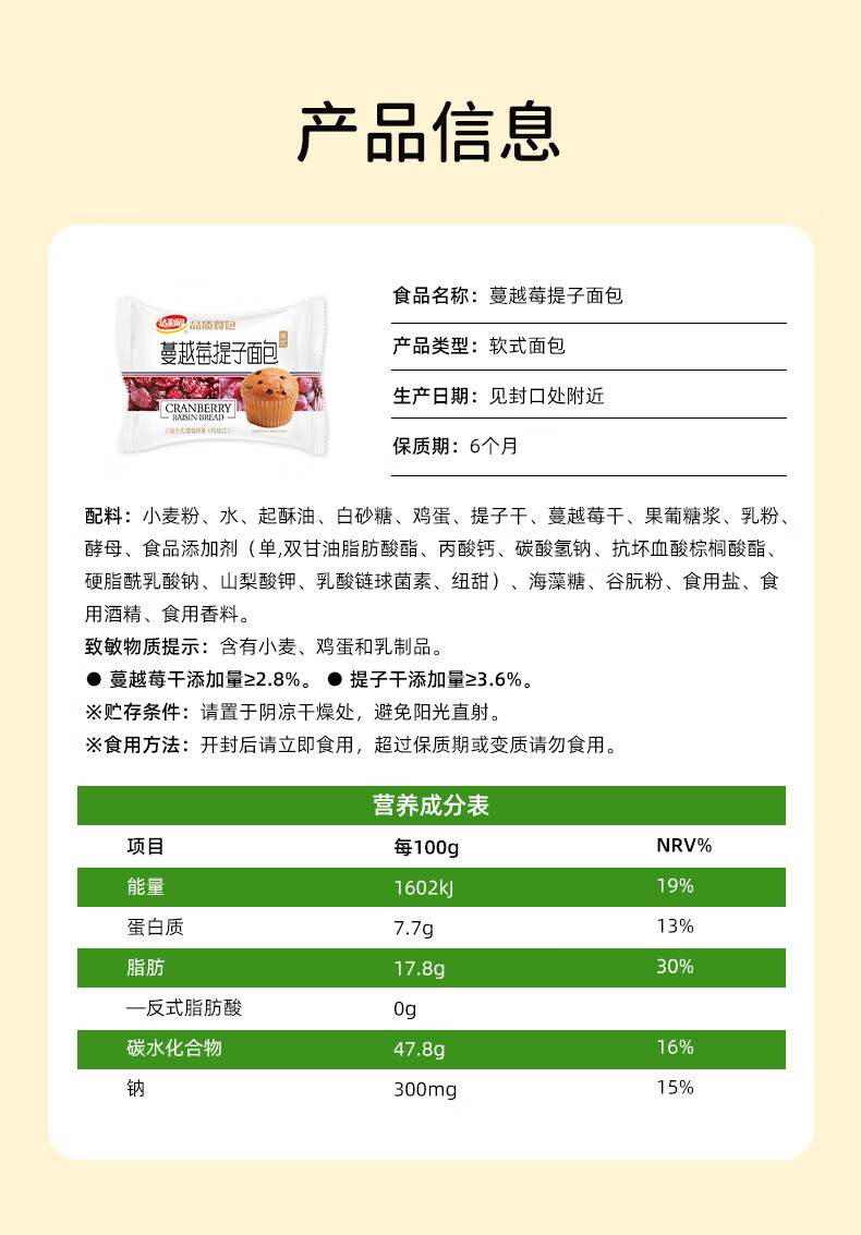 达利园蔓越莓提子面包320g点心网红零食小吃营养早餐办公室食品