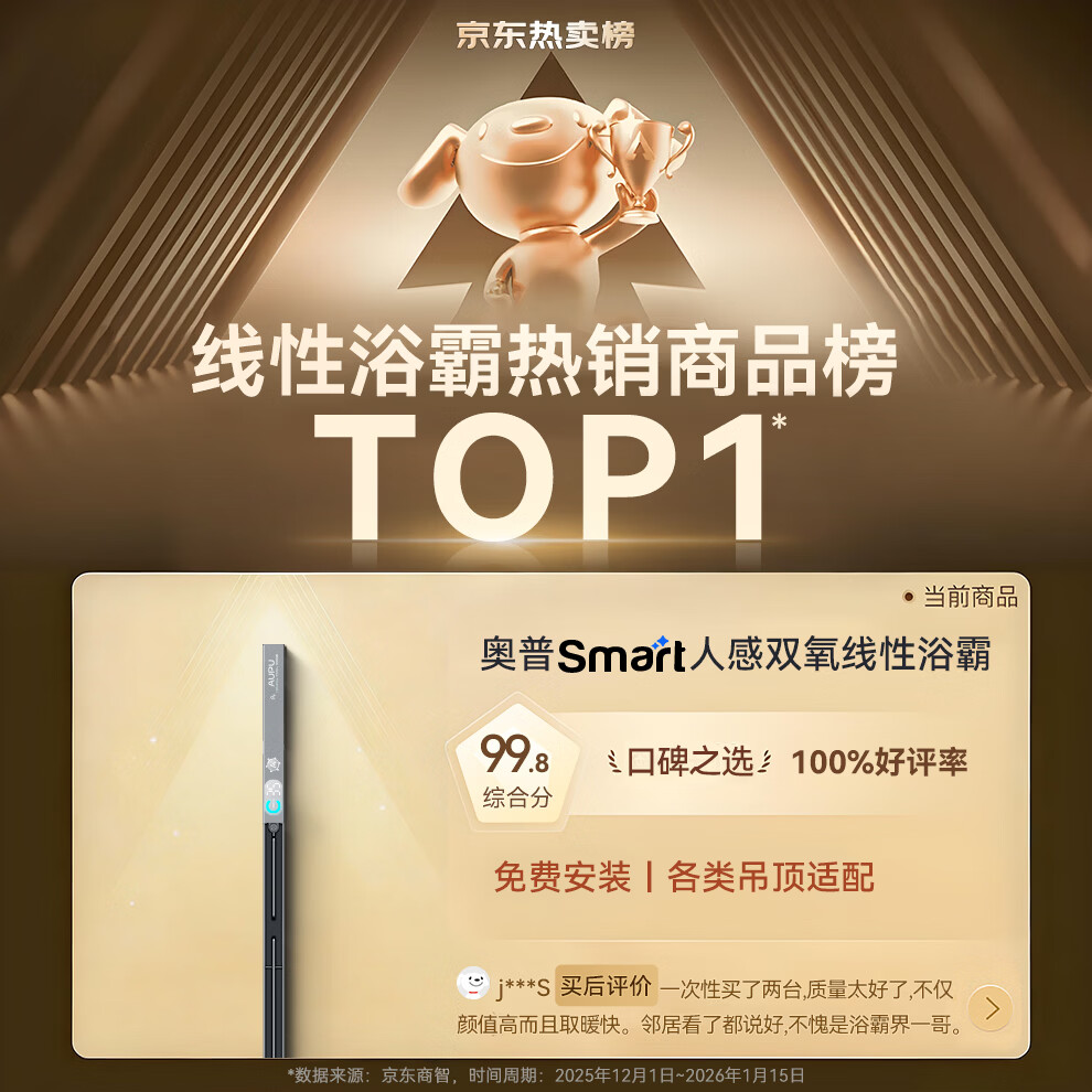 奥普Smart线性浴霸【迷瞪专属】智能浴霸风暖一体换气极窄L3B-Pro+ 【大板吊顶】L3B-Pro+双氧除菌除臭 智能人感 米家APP