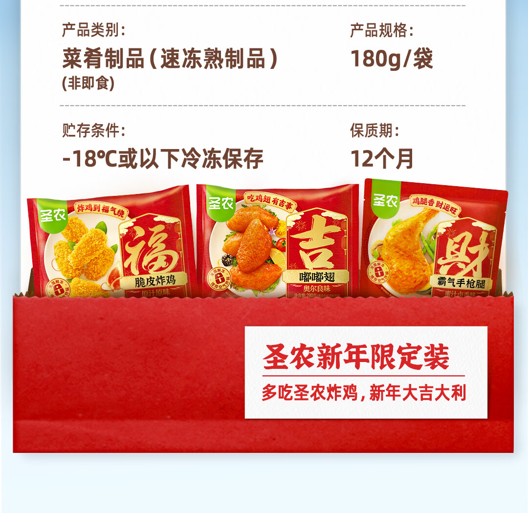 圣农手枪腿180g冷冻单个装蜜汁卤香味微波烤全腿半成品儿童学生早餐