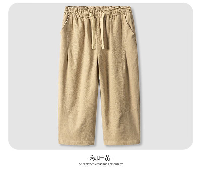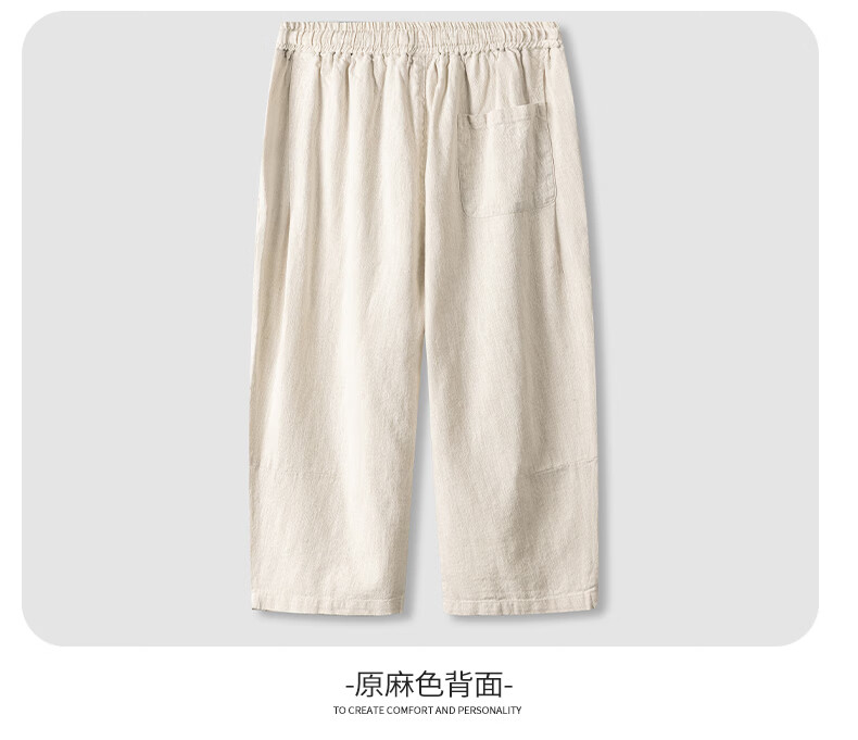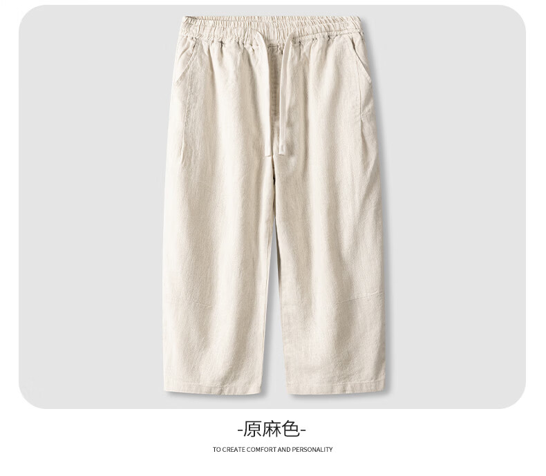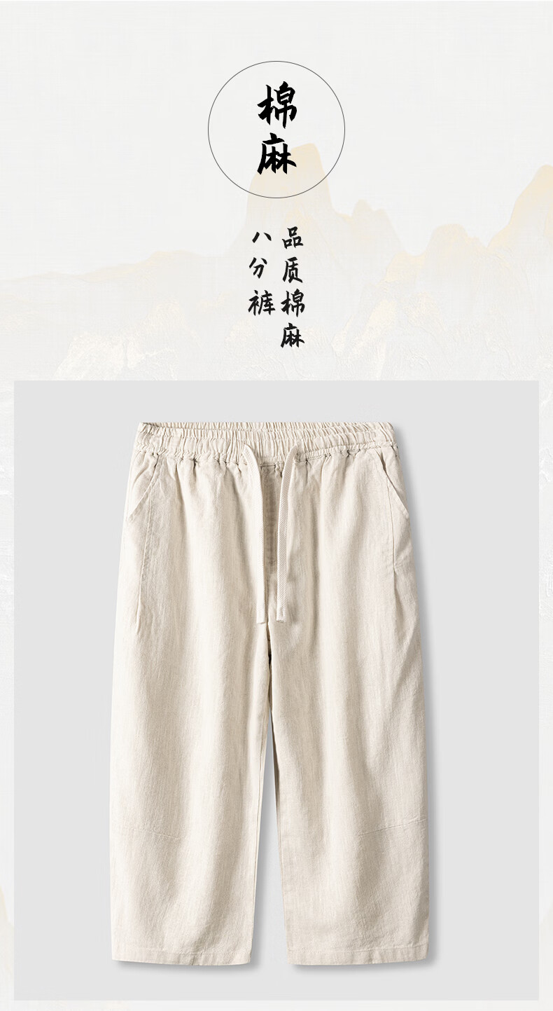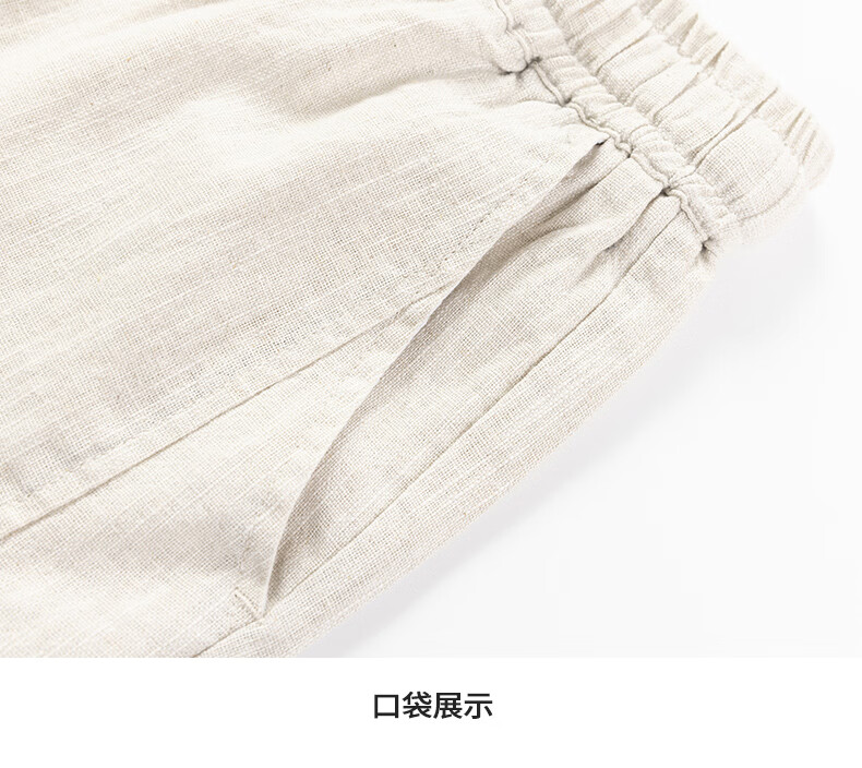 SHANSHAN杉杉【苎麻+棉】休闲裤男士夏季新款简约舒适松紧腰通勤八分裤 原麻色 L /175