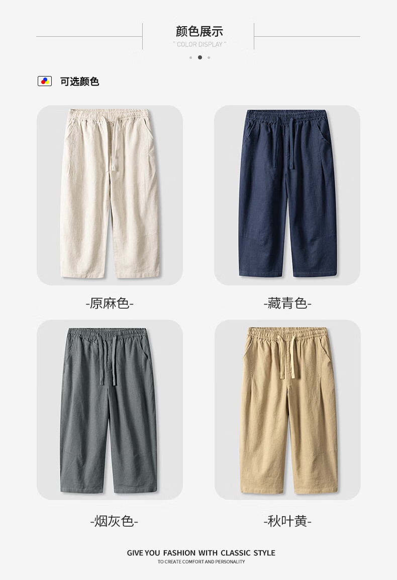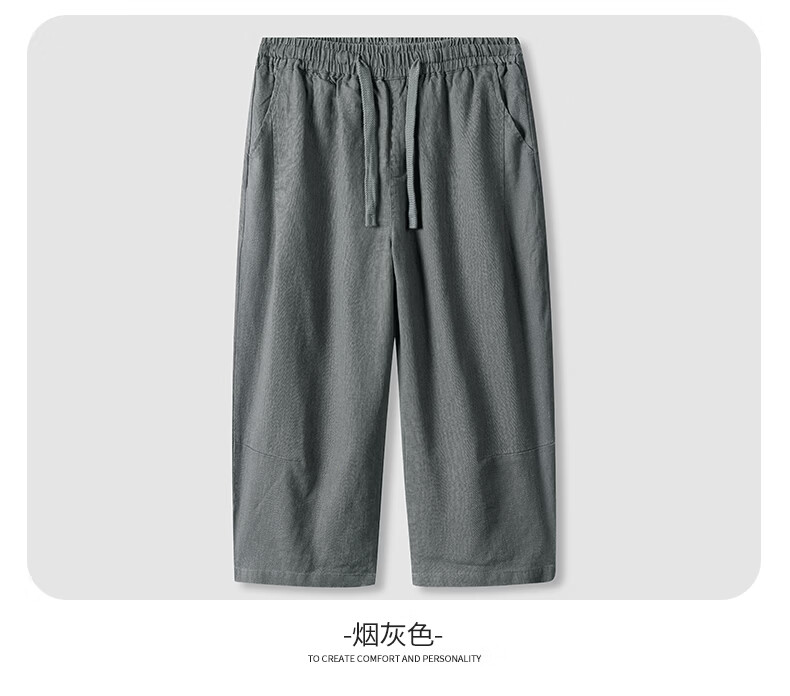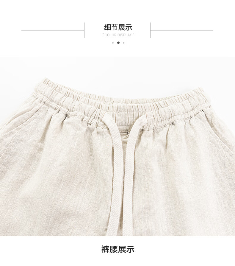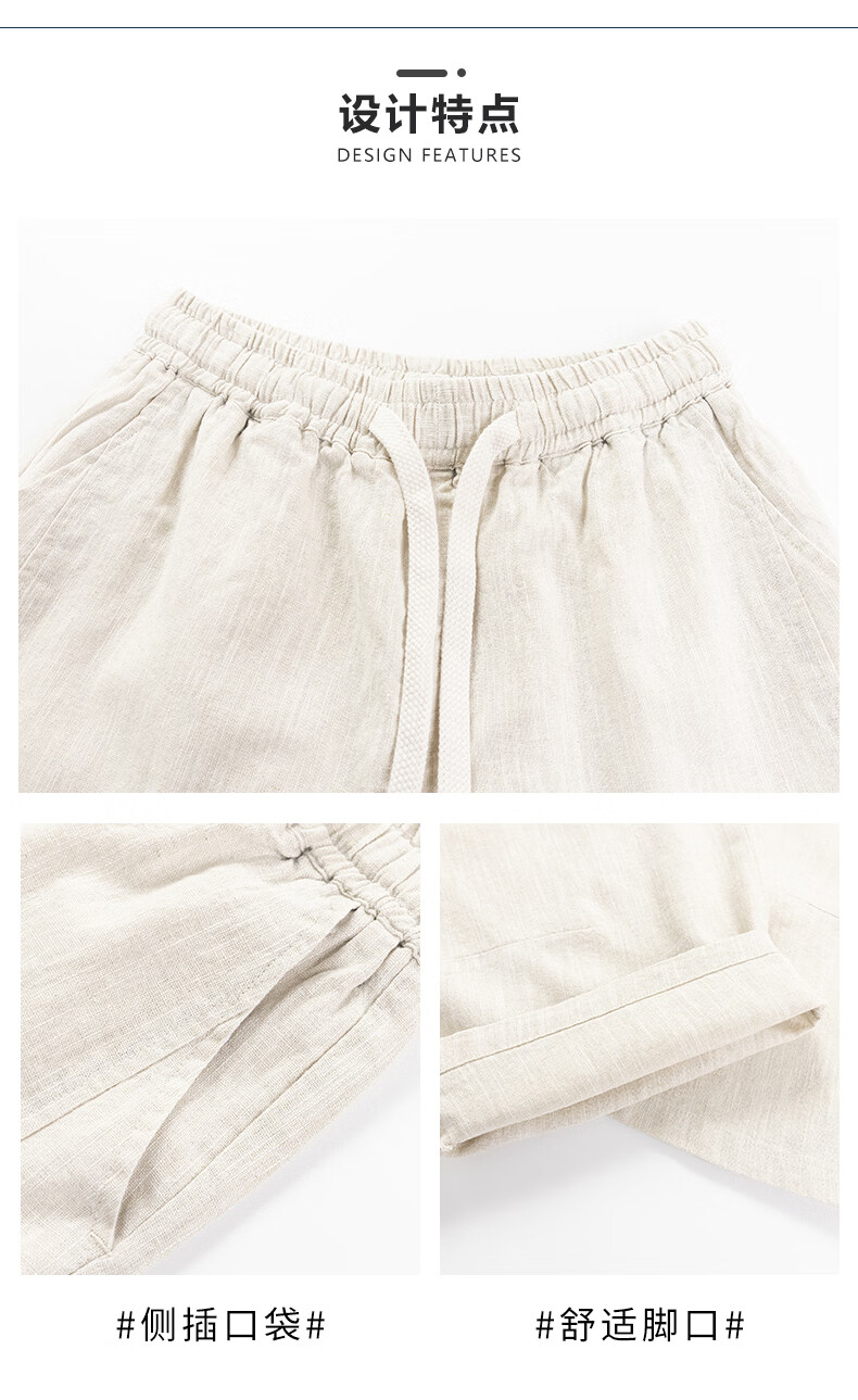 SHANSHAN杉杉【苎麻+棉】休闲裤男士夏季新款简约舒适松紧腰通勤八分裤 原麻色 L /175