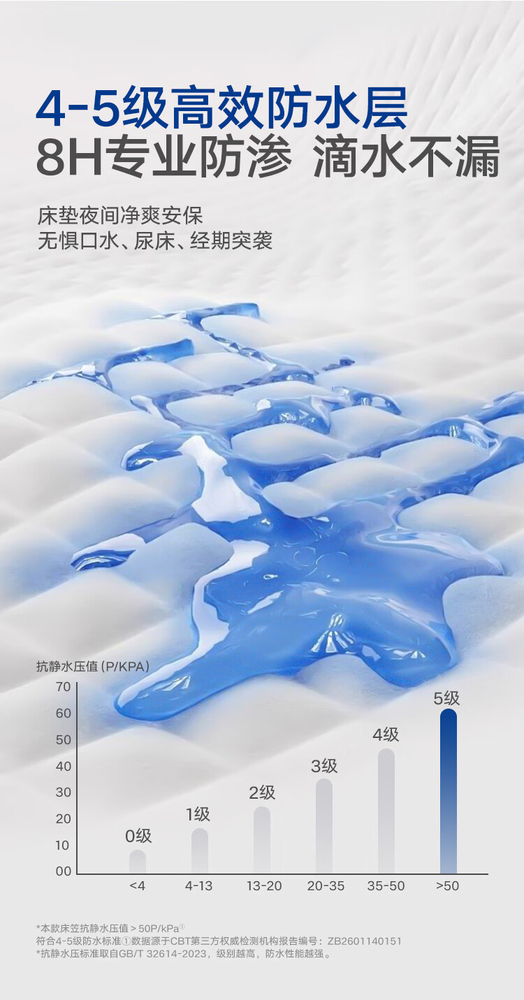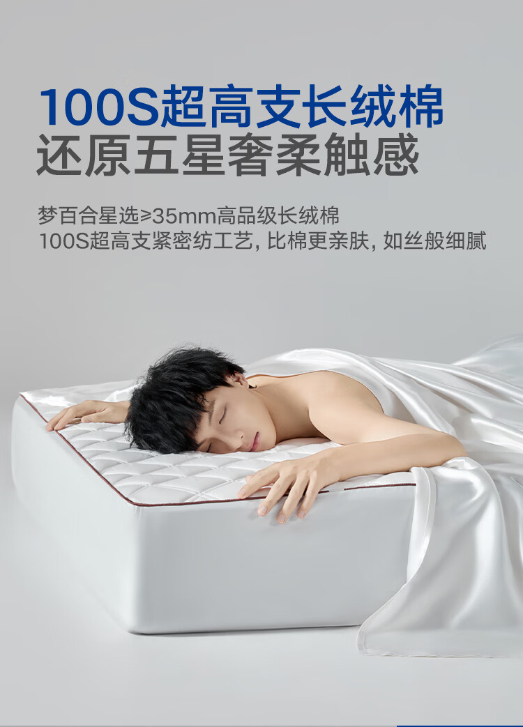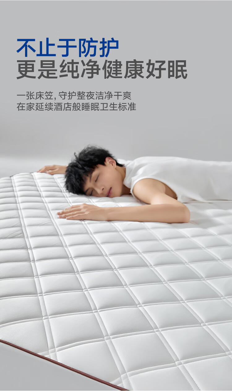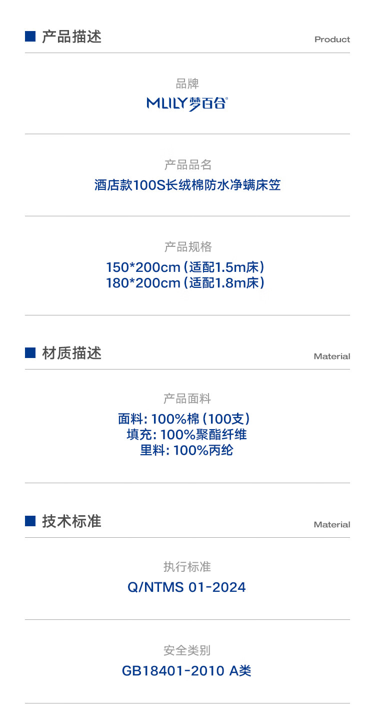 梦百合(MLILY)床笠1.5x2米 100S长绒棉防水床笠100%防螨酒店床垫保护套 白色