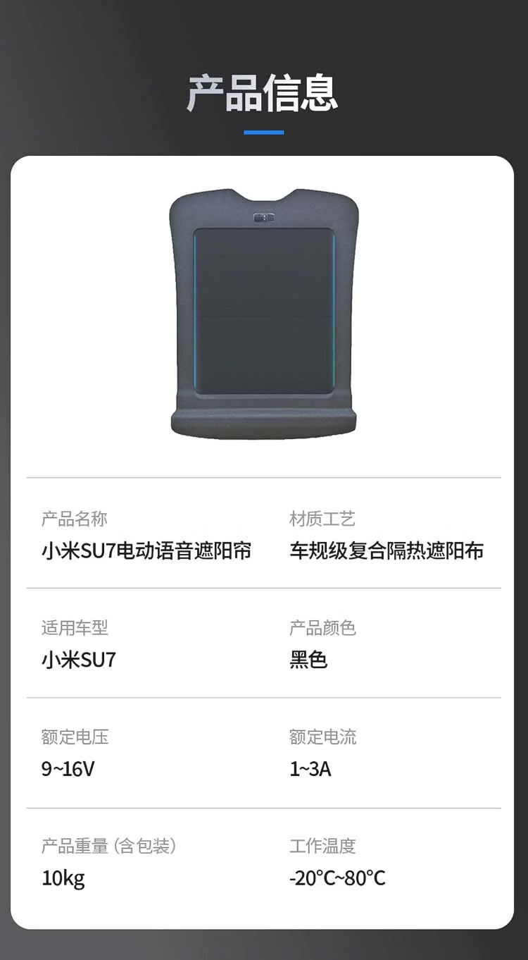 馨猫适用小米SU7电动遮阳帘全景天窗天幕遮阳挡板SU7顶部防晒隔热配件 小米SU7Ultra 基础款---全新升级第二代[智能款按键】