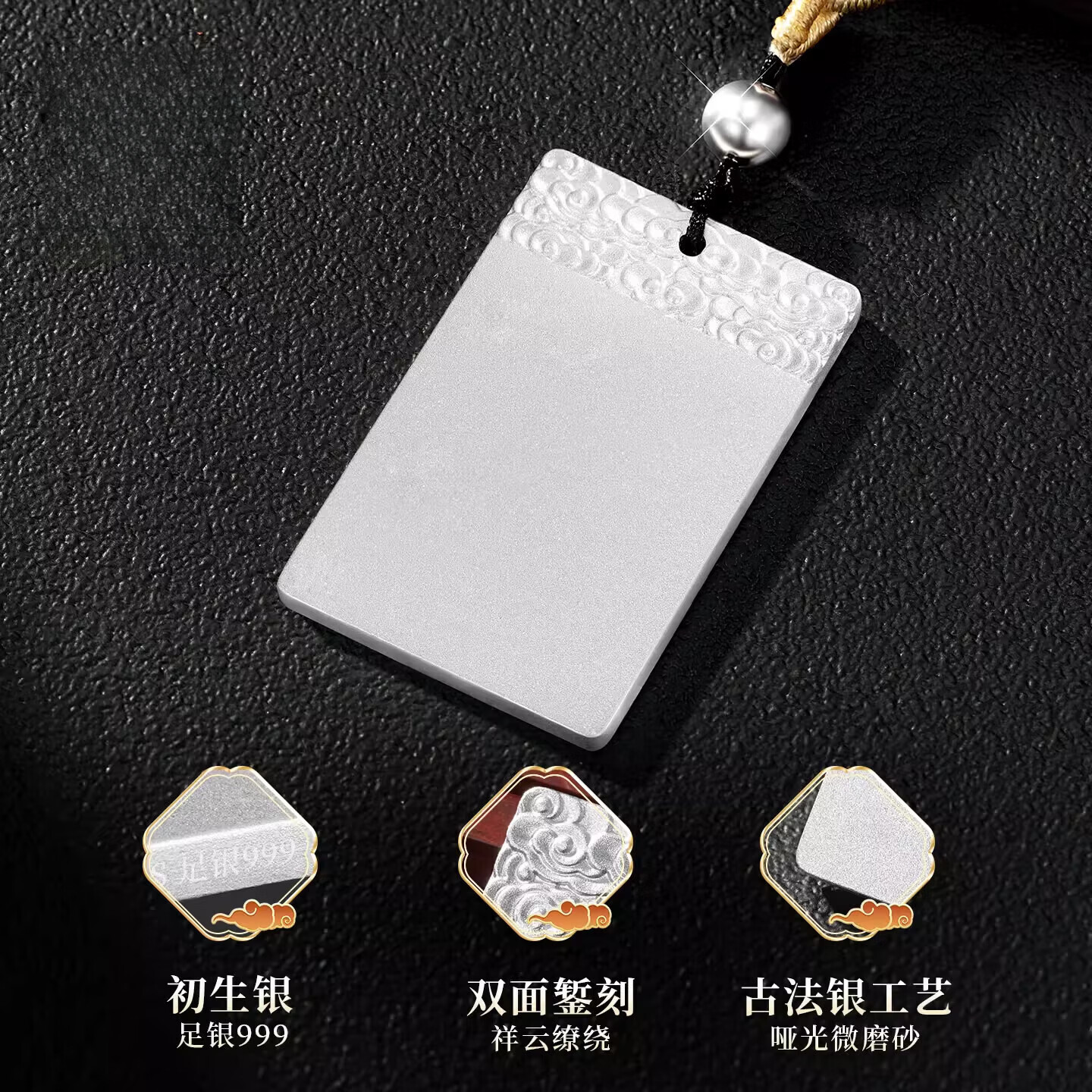 足银无事牌白银 999银祥云吊坠挂件男士平安扣礼物代购 B【祥云无事牌】