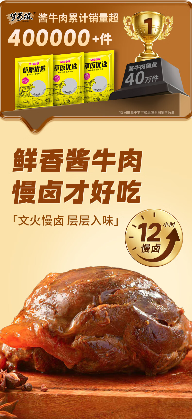 梦可极酱牛肉2斤装100g*10 熟开袋即食卤牛腿肉五香味休闲零食京东物流