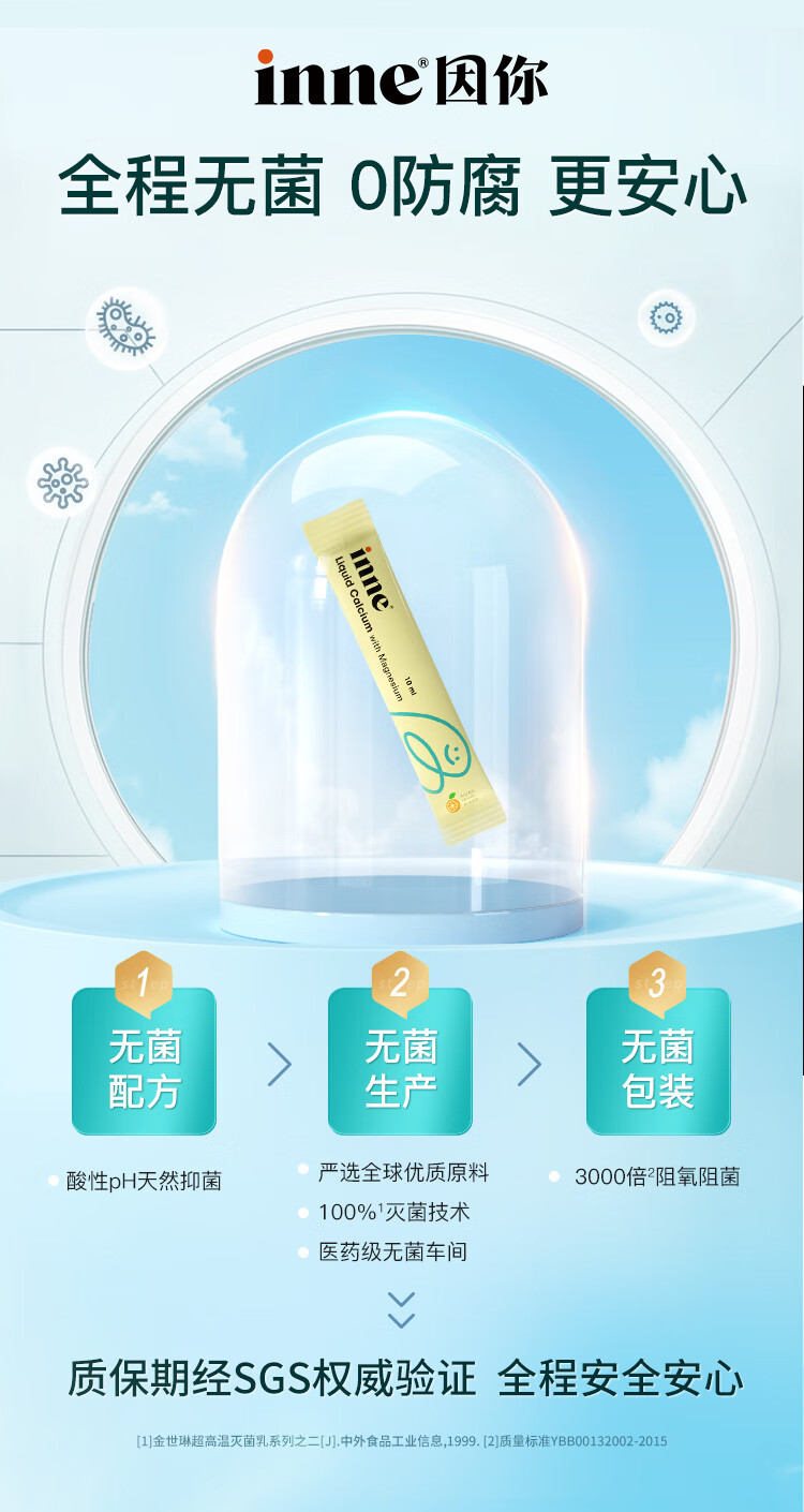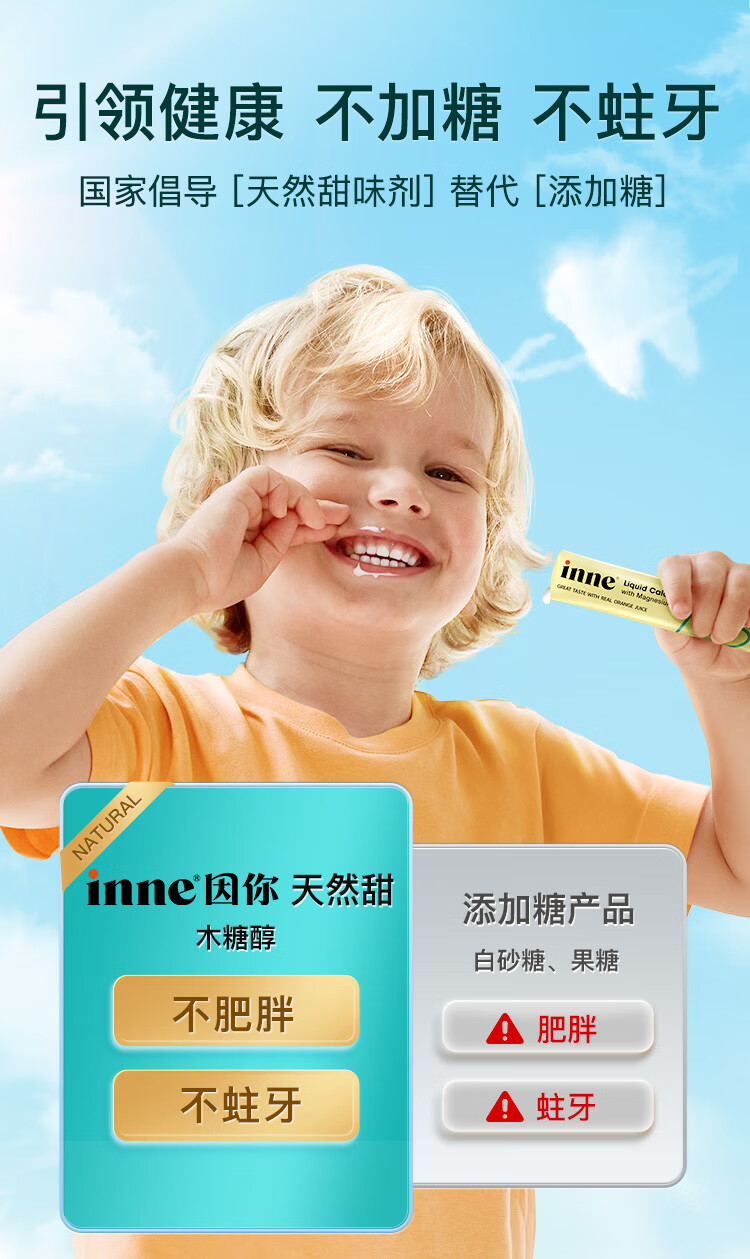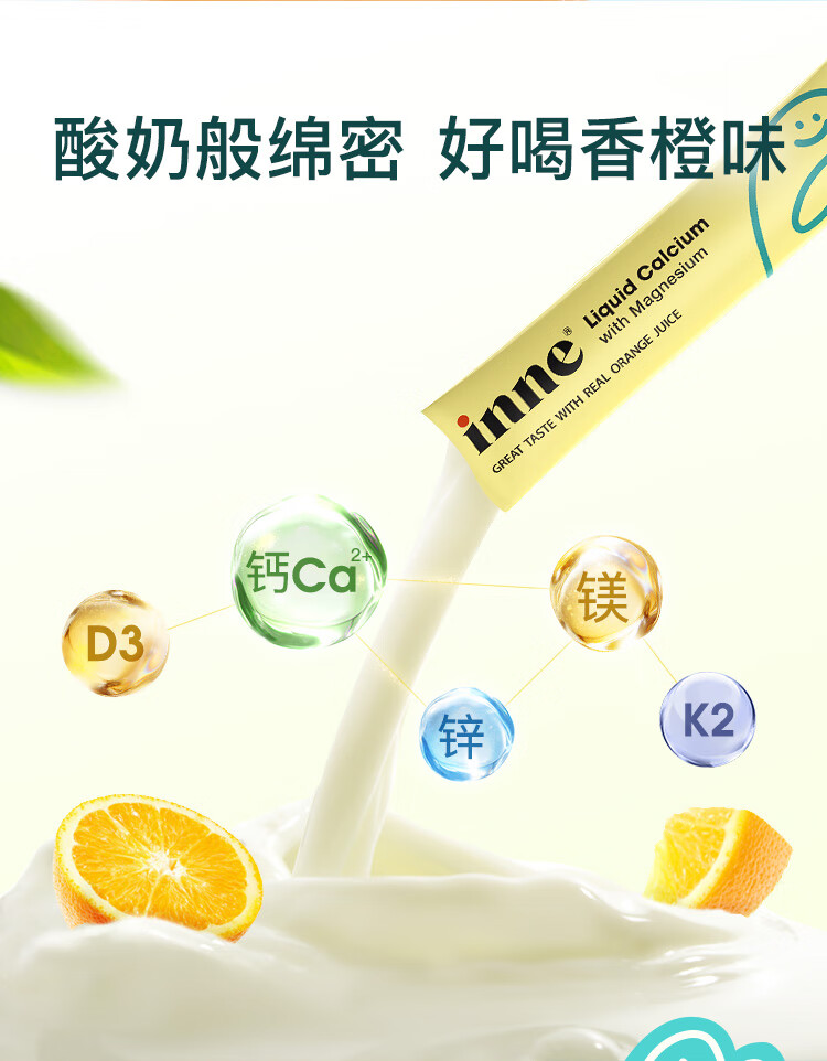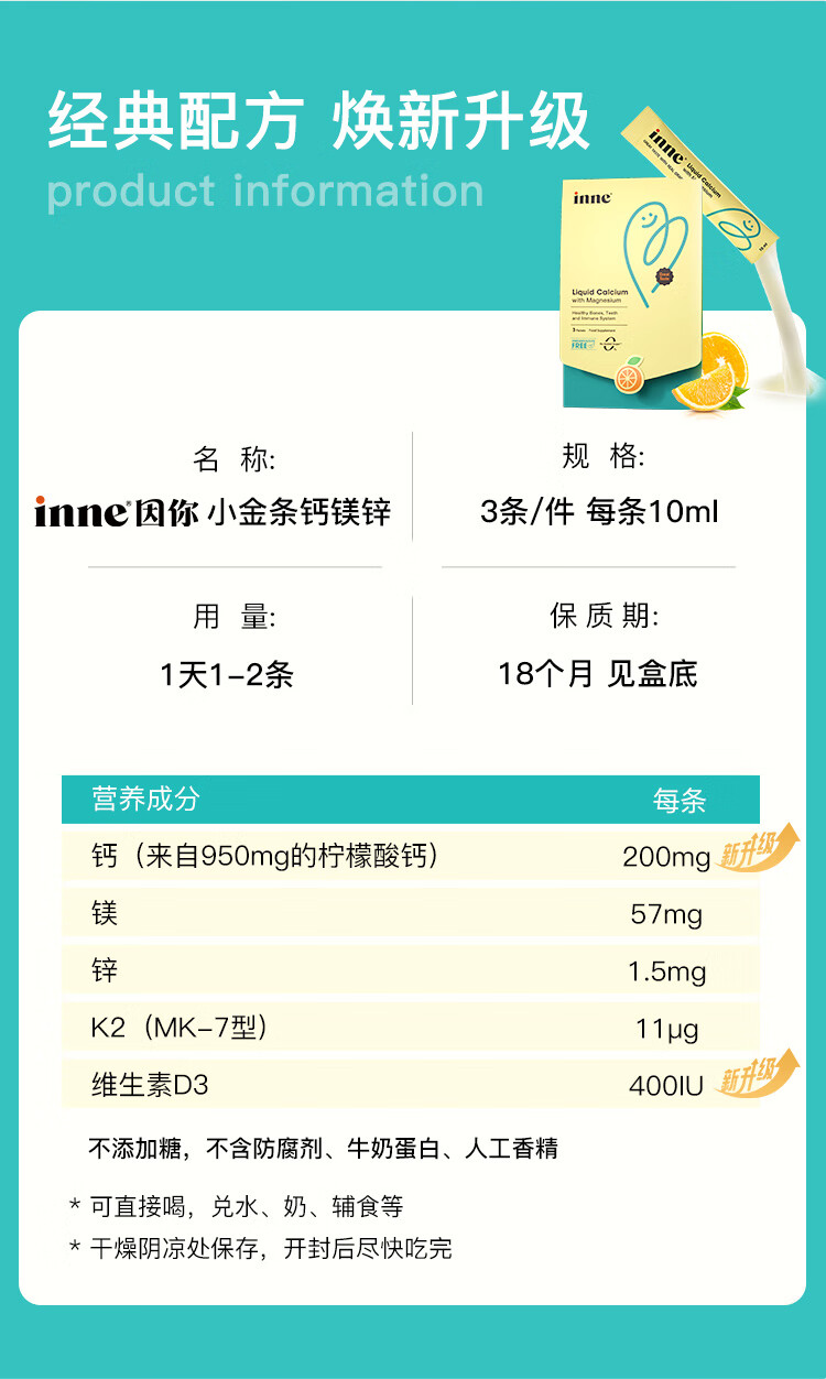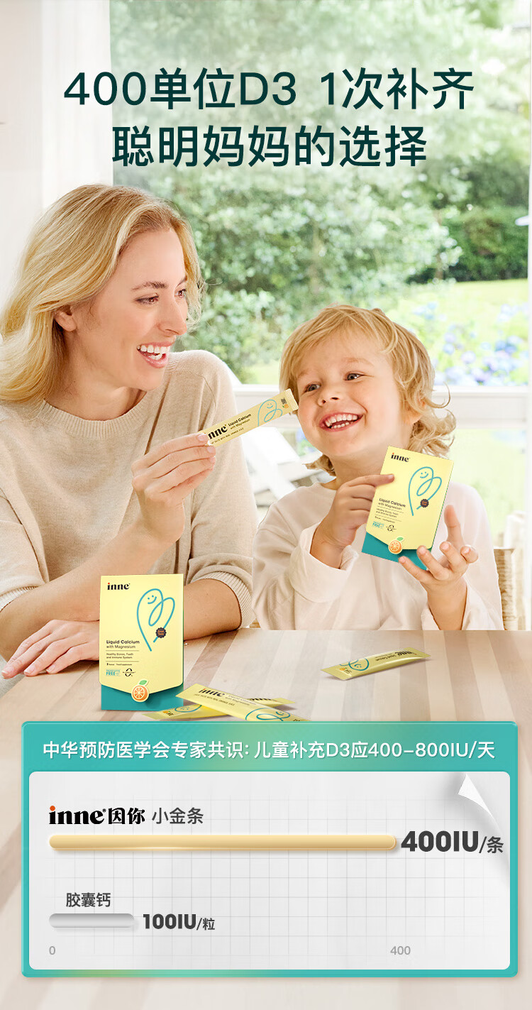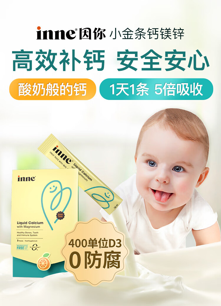 Inne因你钙镁锌小金条液体钙儿童钙维生素d3婴儿香橙味3条体验装