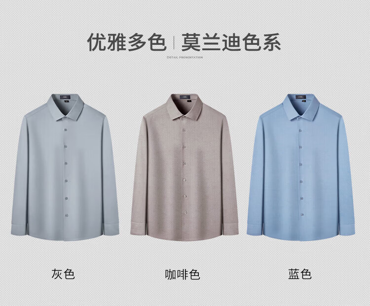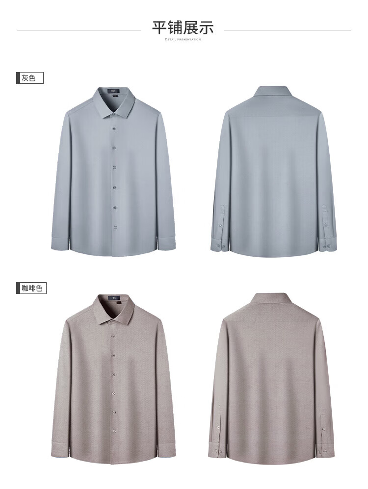 杉杉(FIRS)【凉感】长袖衬衫男春秋轻薄透气桑蚕丝醋酸亲肤柔顺纯色衬衣 灰色 39 170/88A