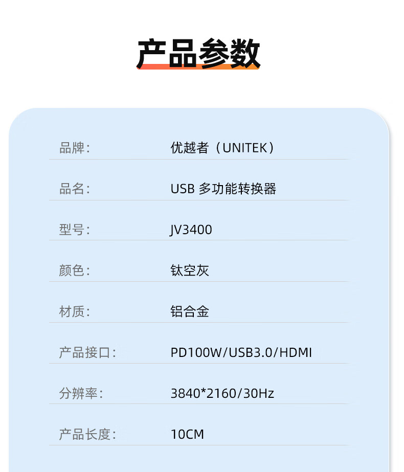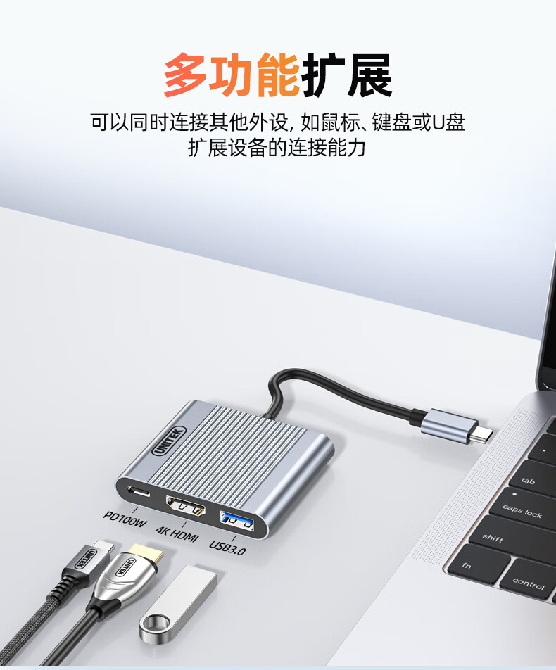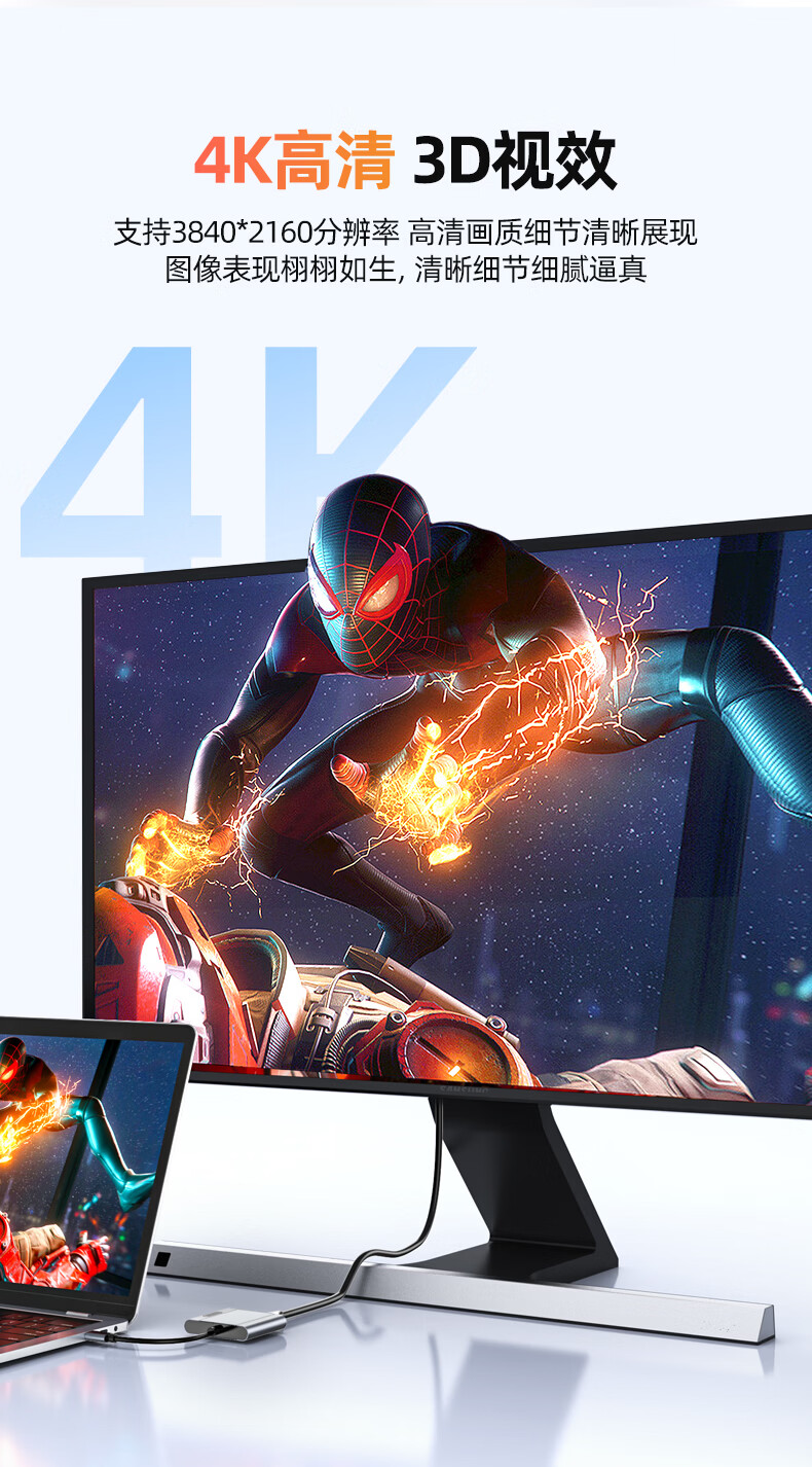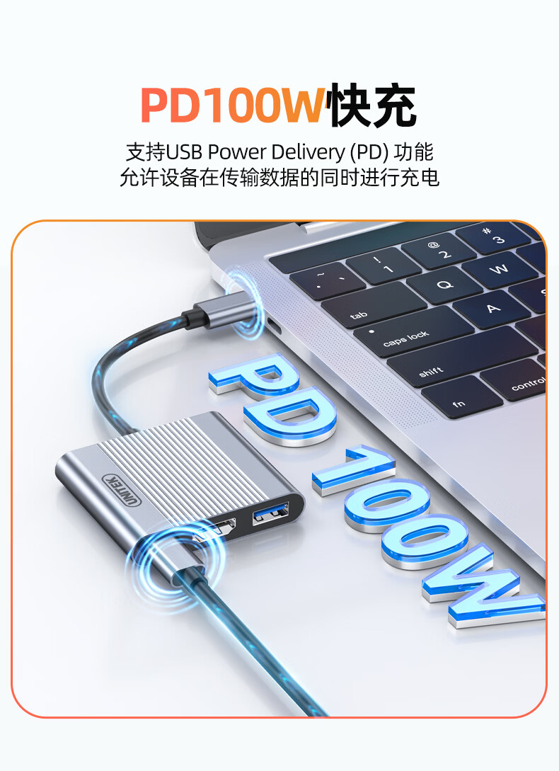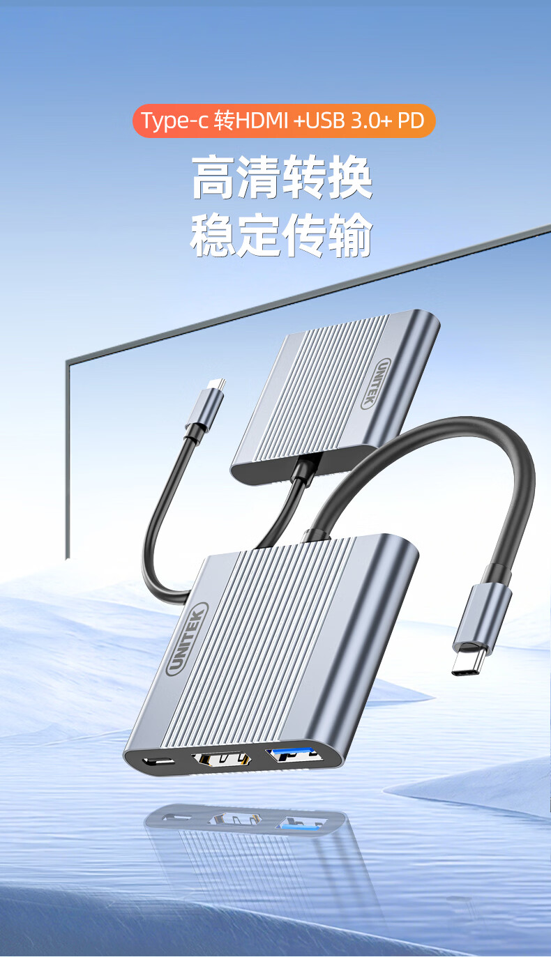 优越者Type-C转HDMI转换器4K高清投屏转接头USB-C拓展坞带PD快充USB3.0扩展器适用华为苹果笔记本连大屏