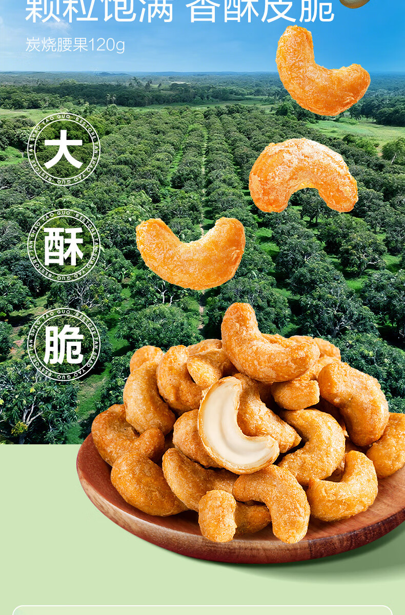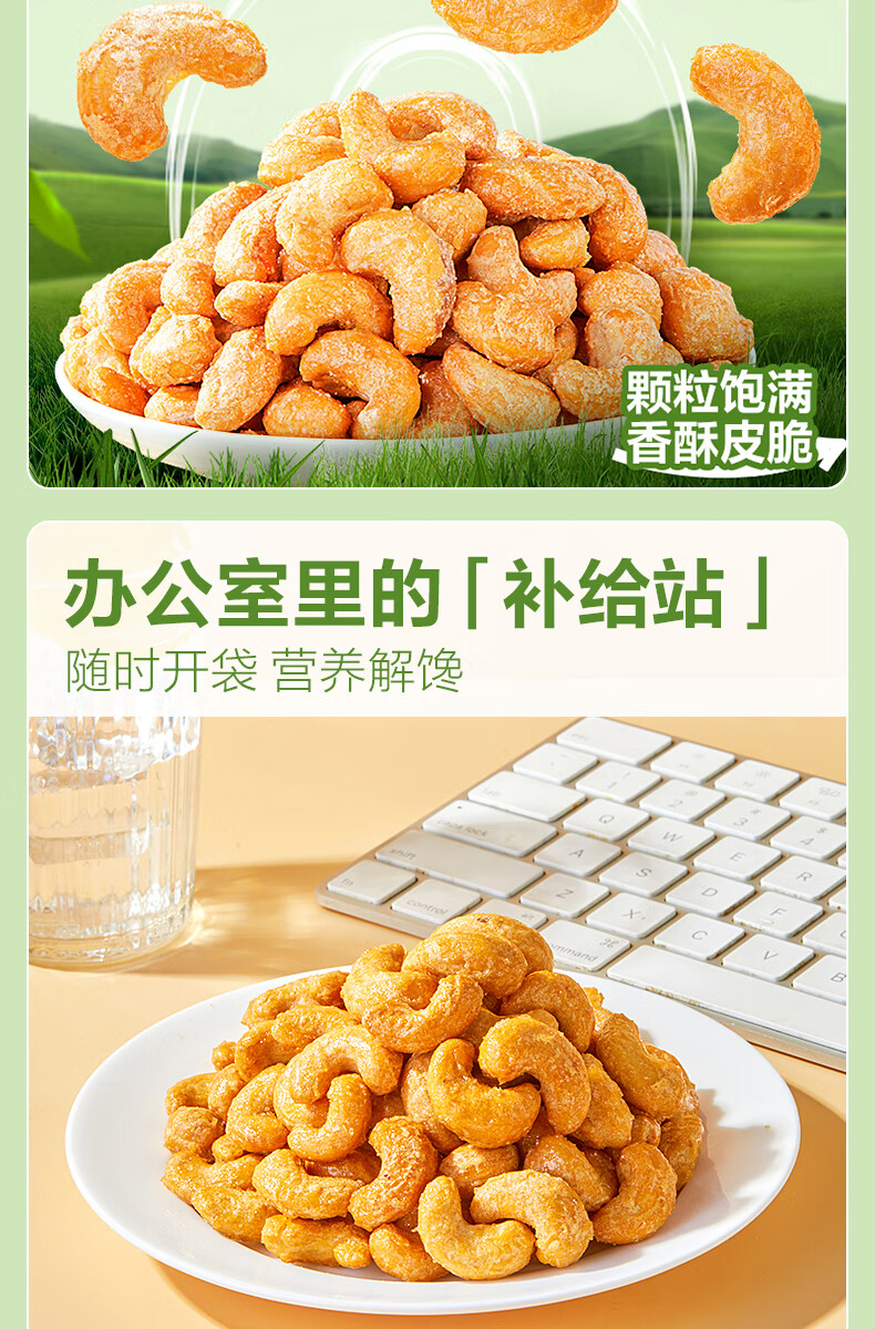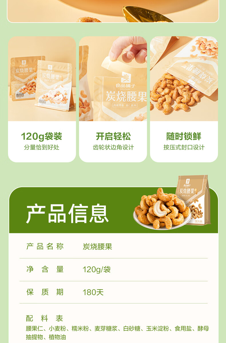 良品铺子炭烧腰果每日坚果零食干果炒货腰果仁小吃120g休闲零食小吃