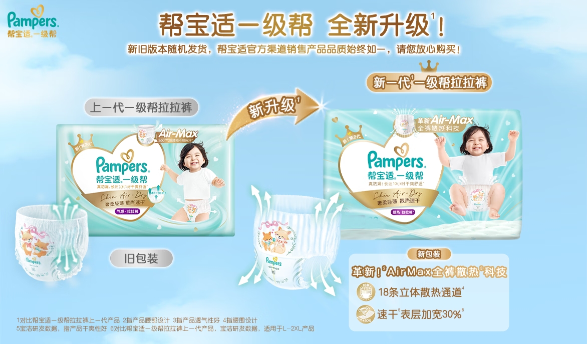 帮宝适【散热王者】新一级帮拉拉裤超薄透气 婴儿尿不湿尿裤尿片 【超值】XL64片(12-17kg) 常规款