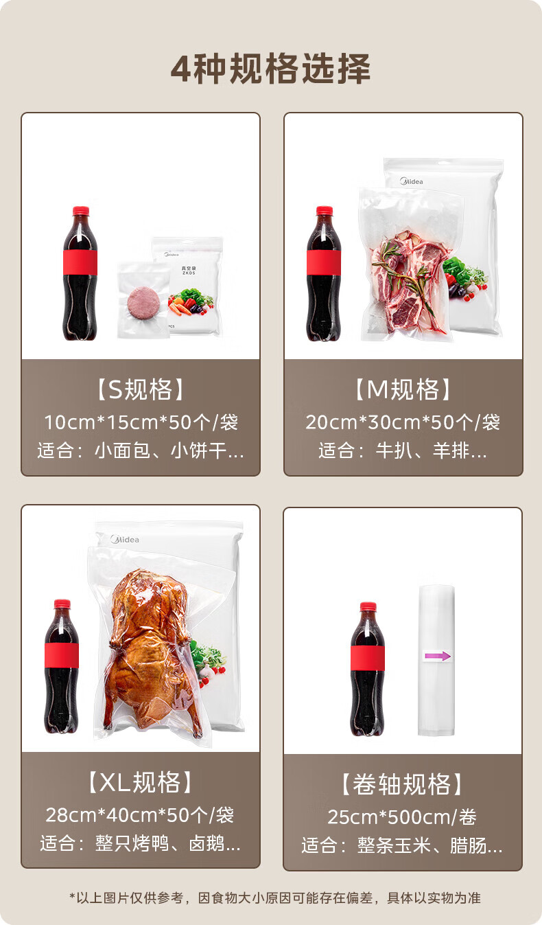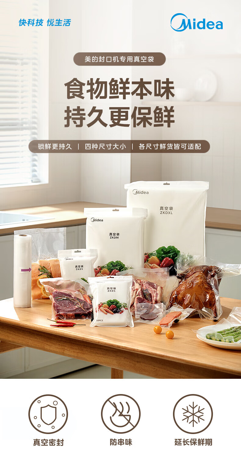 美的(Midea)真空封口袋家用商用干湿两用加厚食品级保鲜袋塑封袋密封袋超大号ZKDXL
