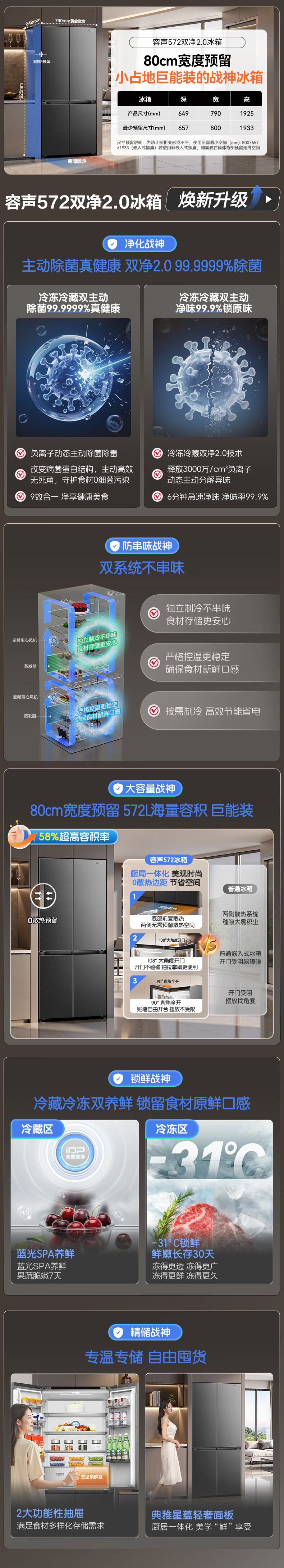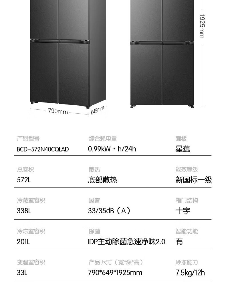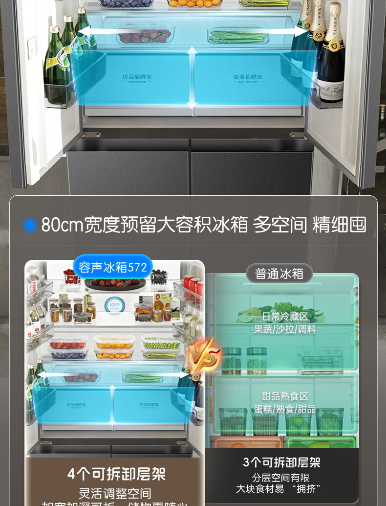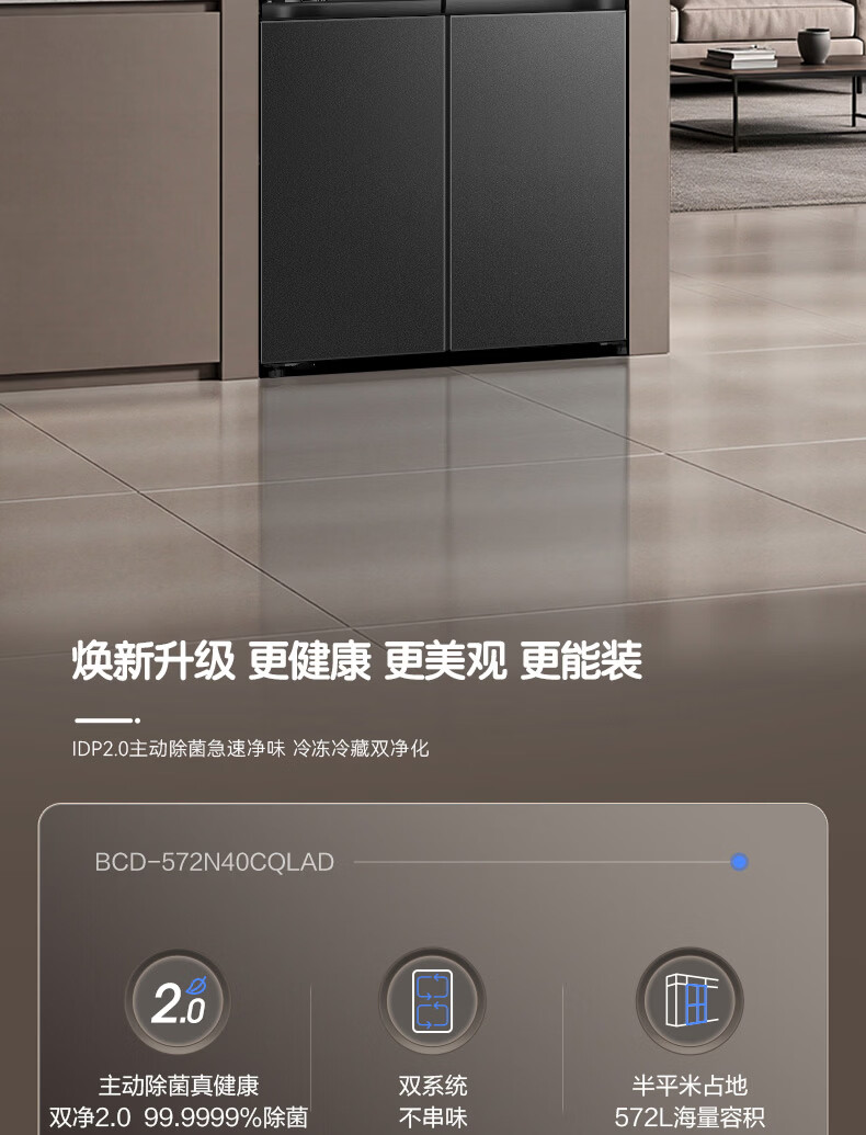 容声【526升级款】战神572L十字门冰箱大容量双系统超薄零嵌入式一级能效无霜BCD-572N40CQLAD国家补贴