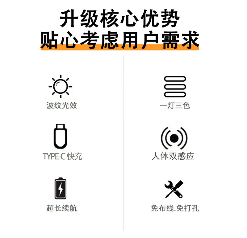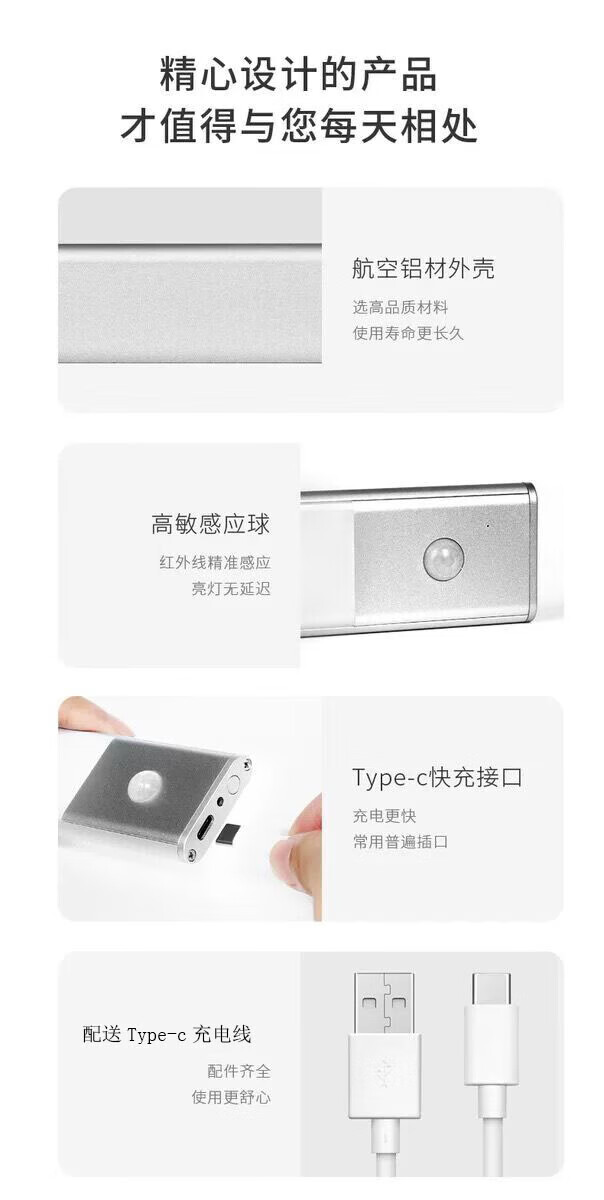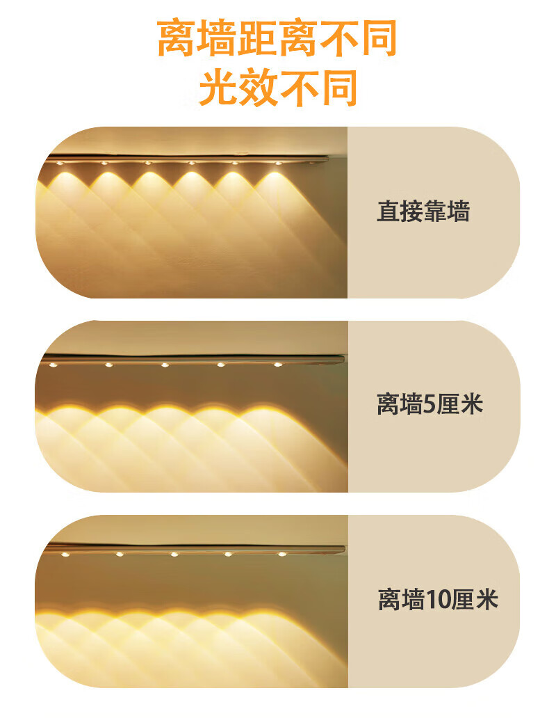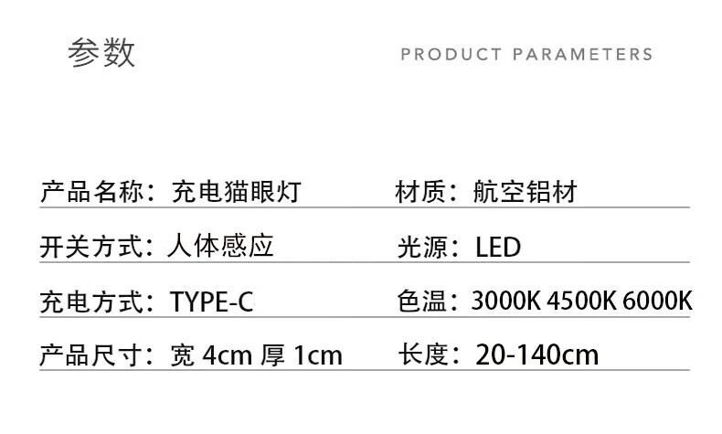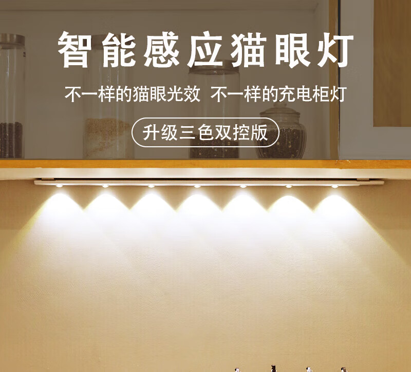 智能人体感应猫眼灯全自动家用充电橱柜玄关鞋柜酒柜LED灯带 白色100CM【8灯珠】人体感应