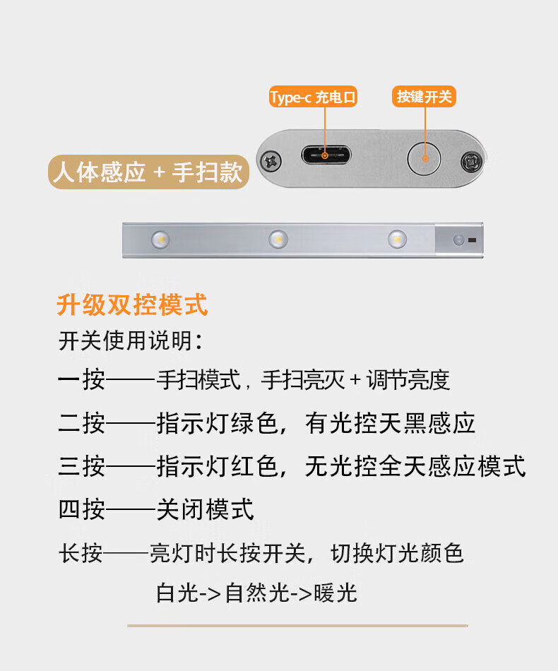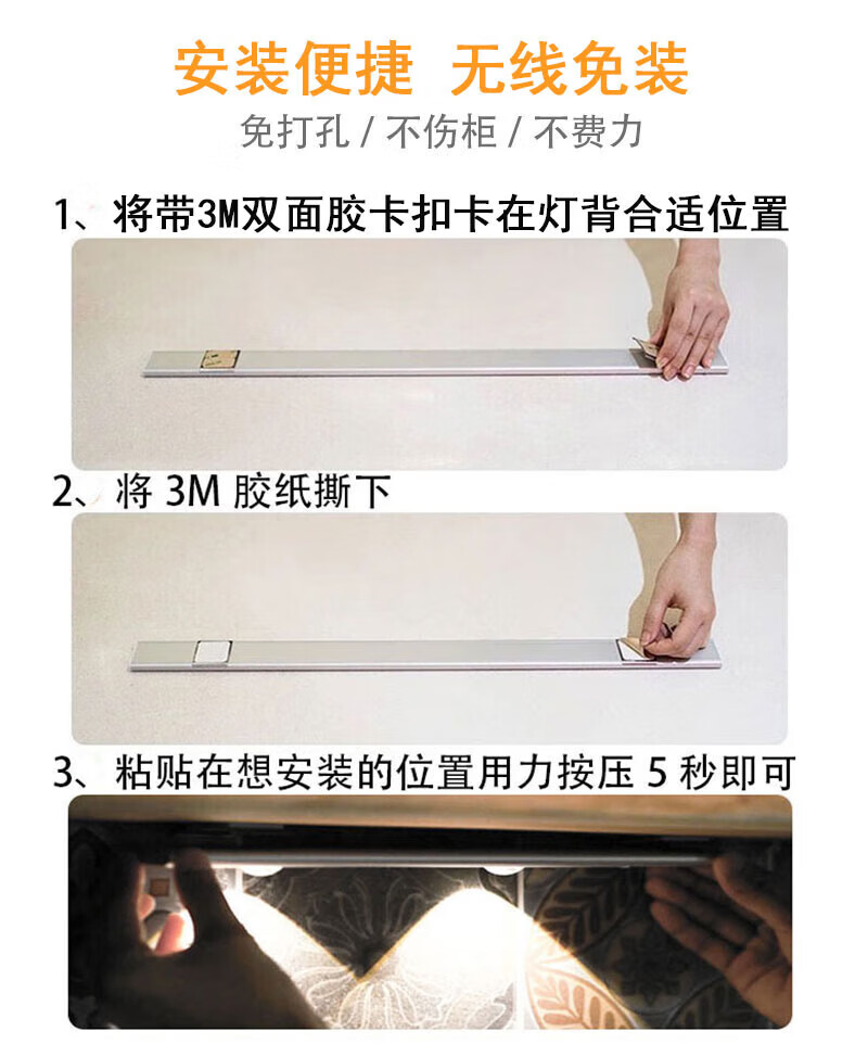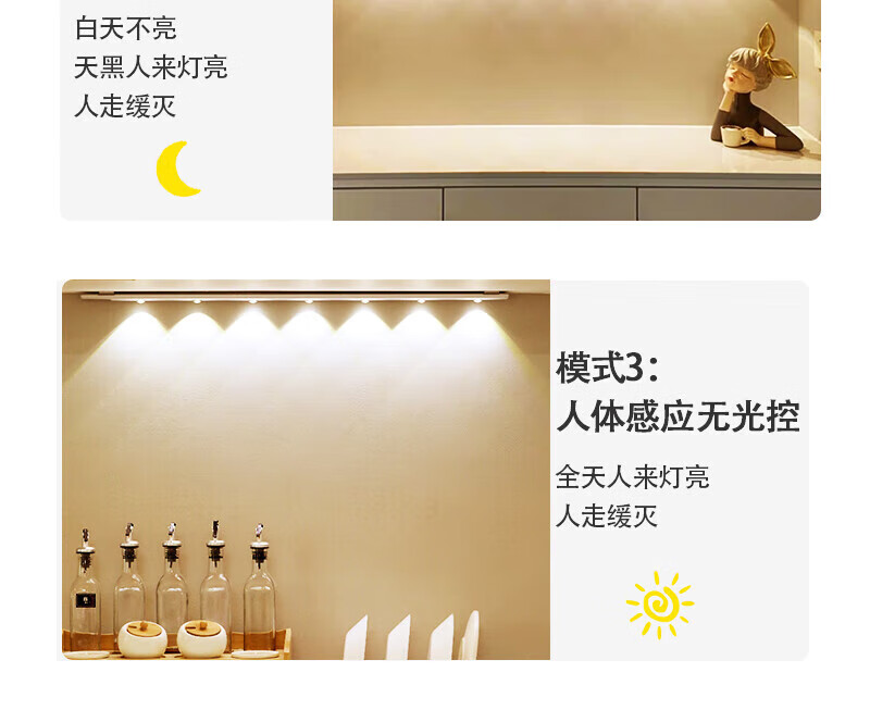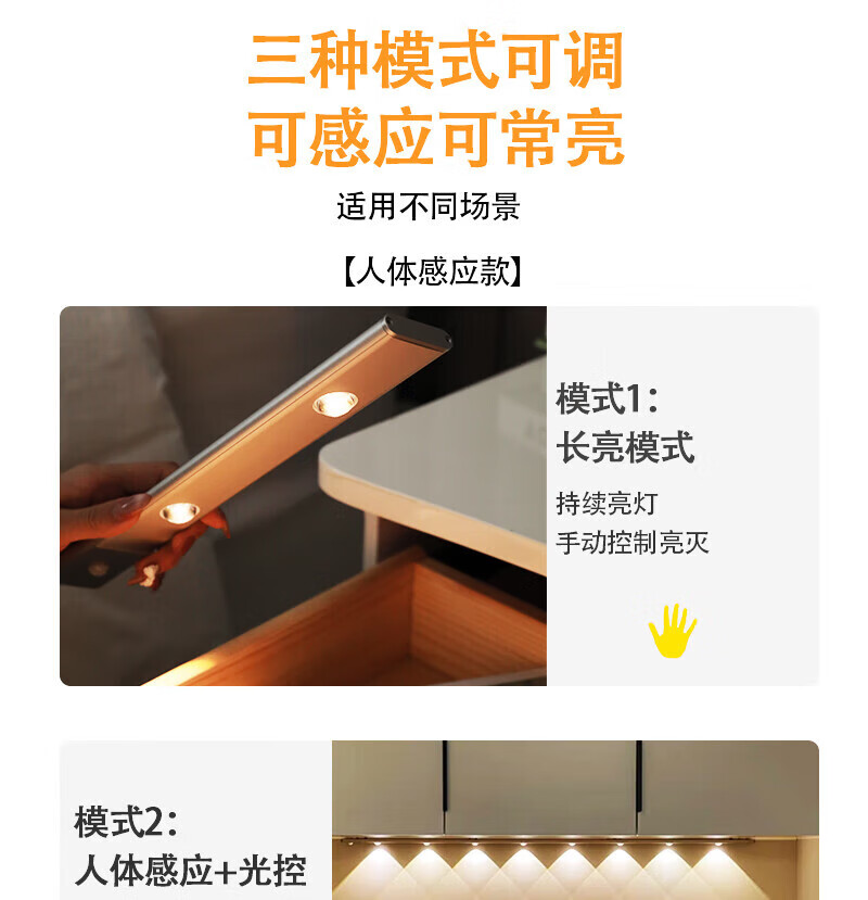 宝斯恩手扫感应灯橱柜书桌吊柜补光LED灯可调色温调亮度航空铝材质家用 手扫感应灯 50CM 8W