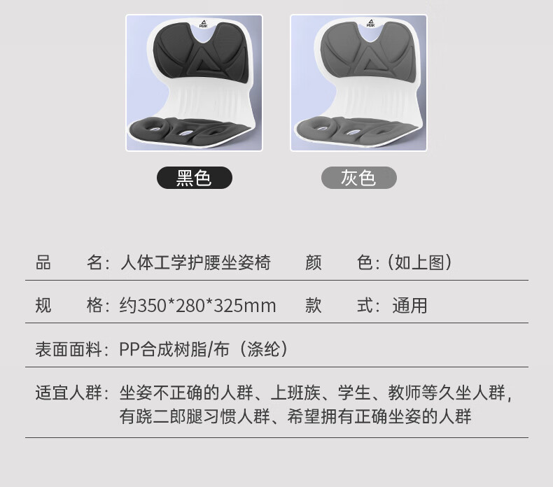 匹克(PEAK)护腰坐垫久坐神器成人学生坐姿矫正器办公居家开车腰椎顶腰板 标准款中号-静谧黑