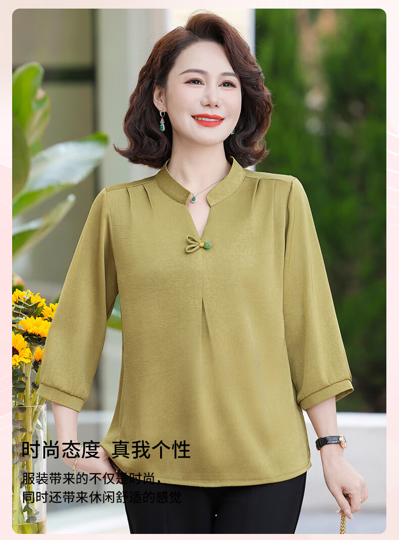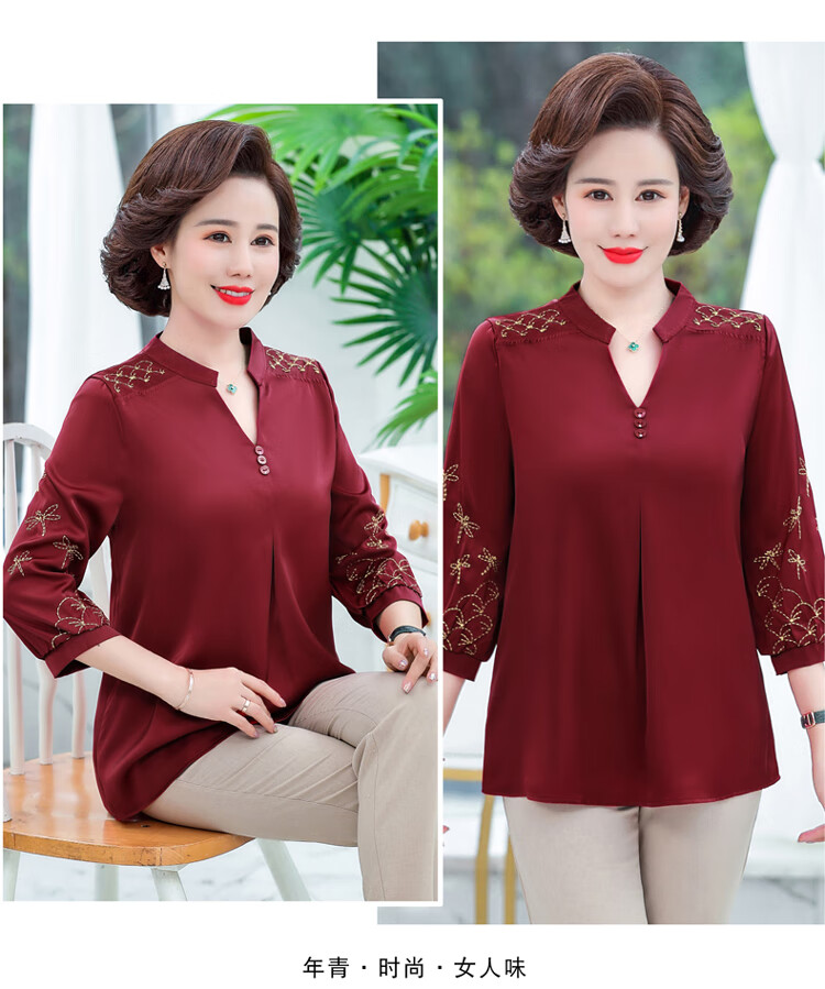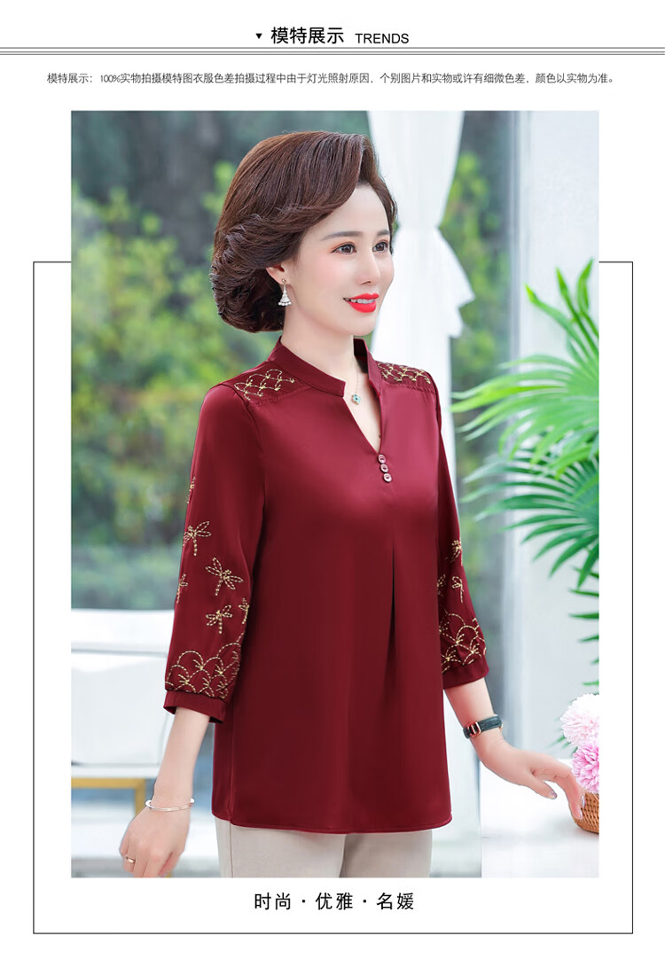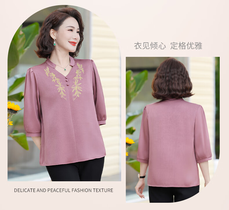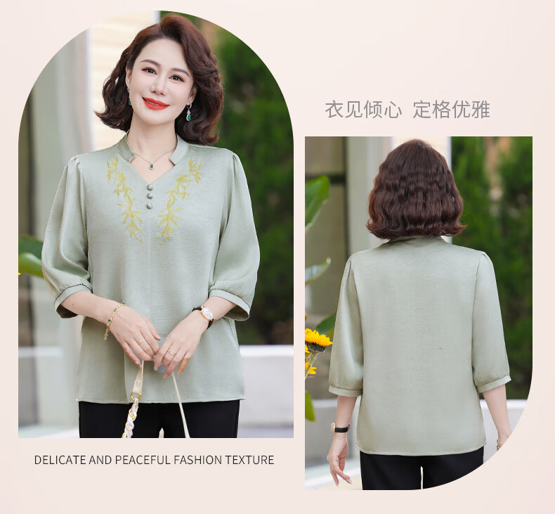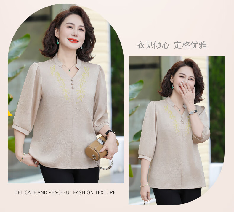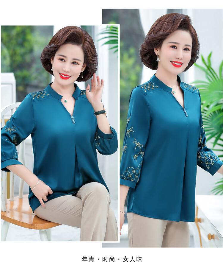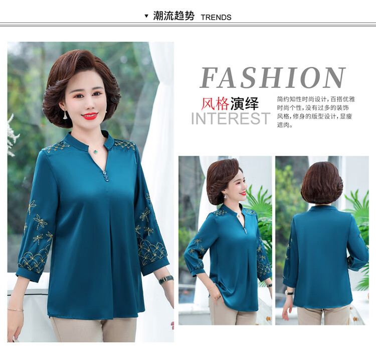 孜颜中老年女装衬衫女妈妈装夏装七分袖两件套50岁60母亲衣服洋气套装 蓝色【单件】 XL (建议80-100斤)