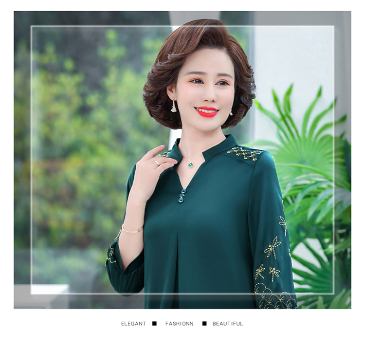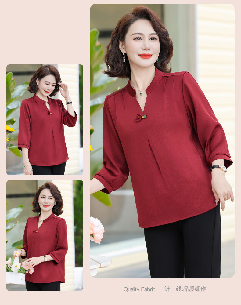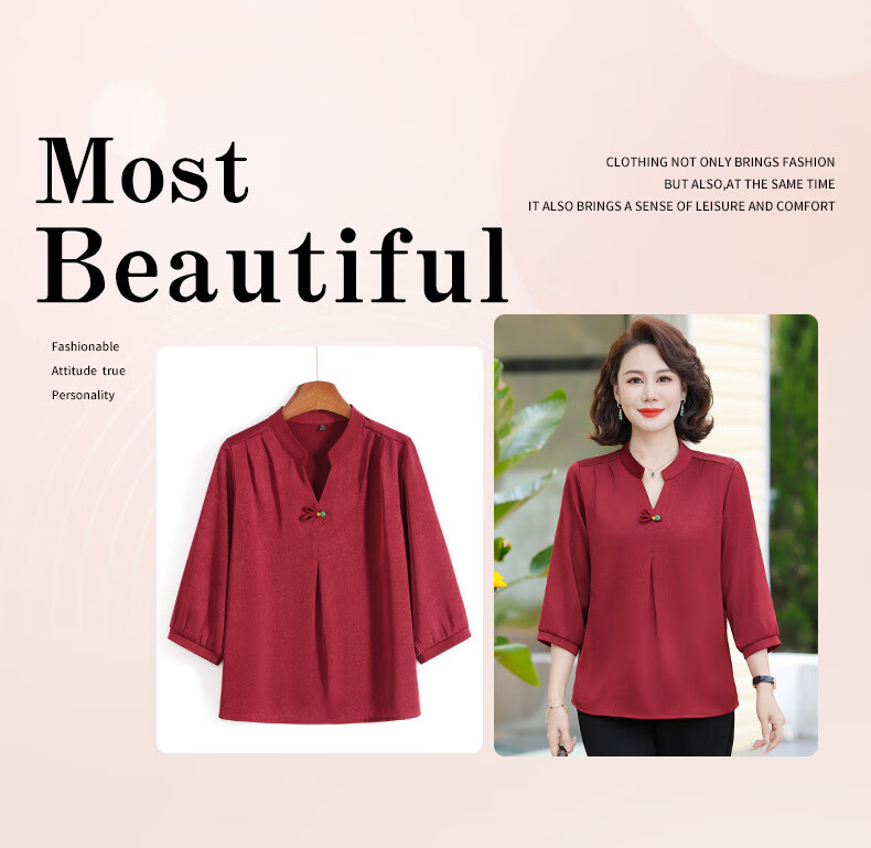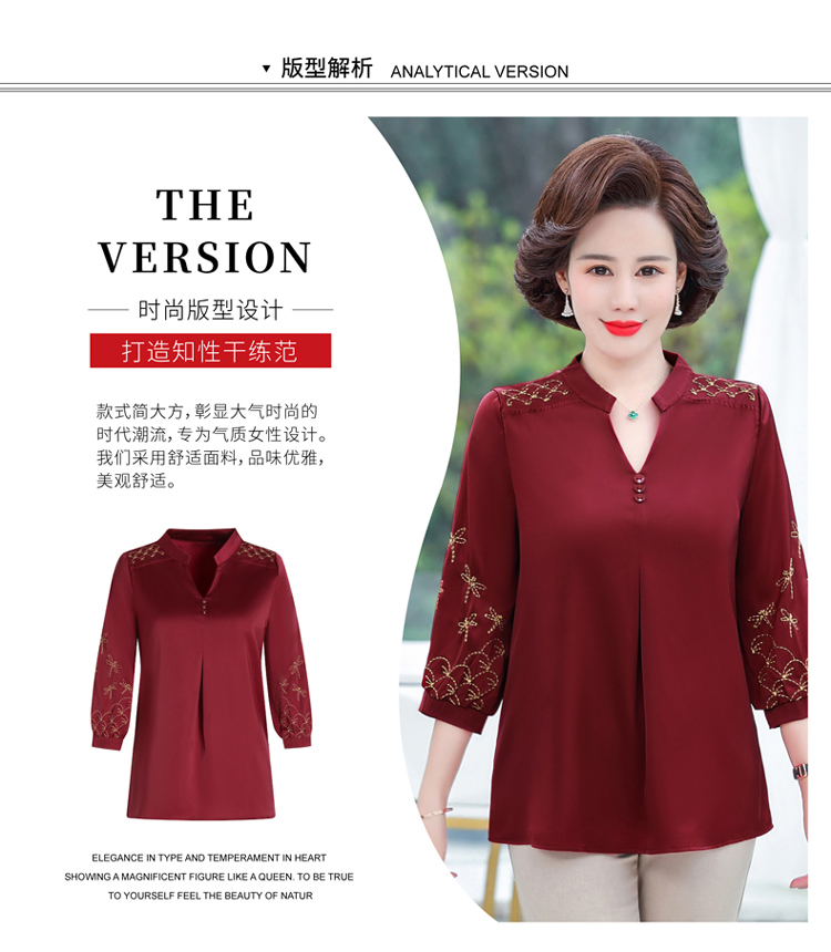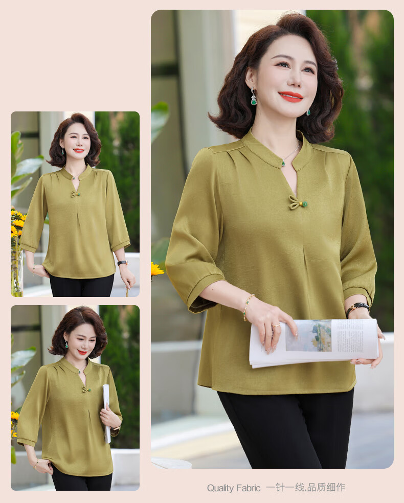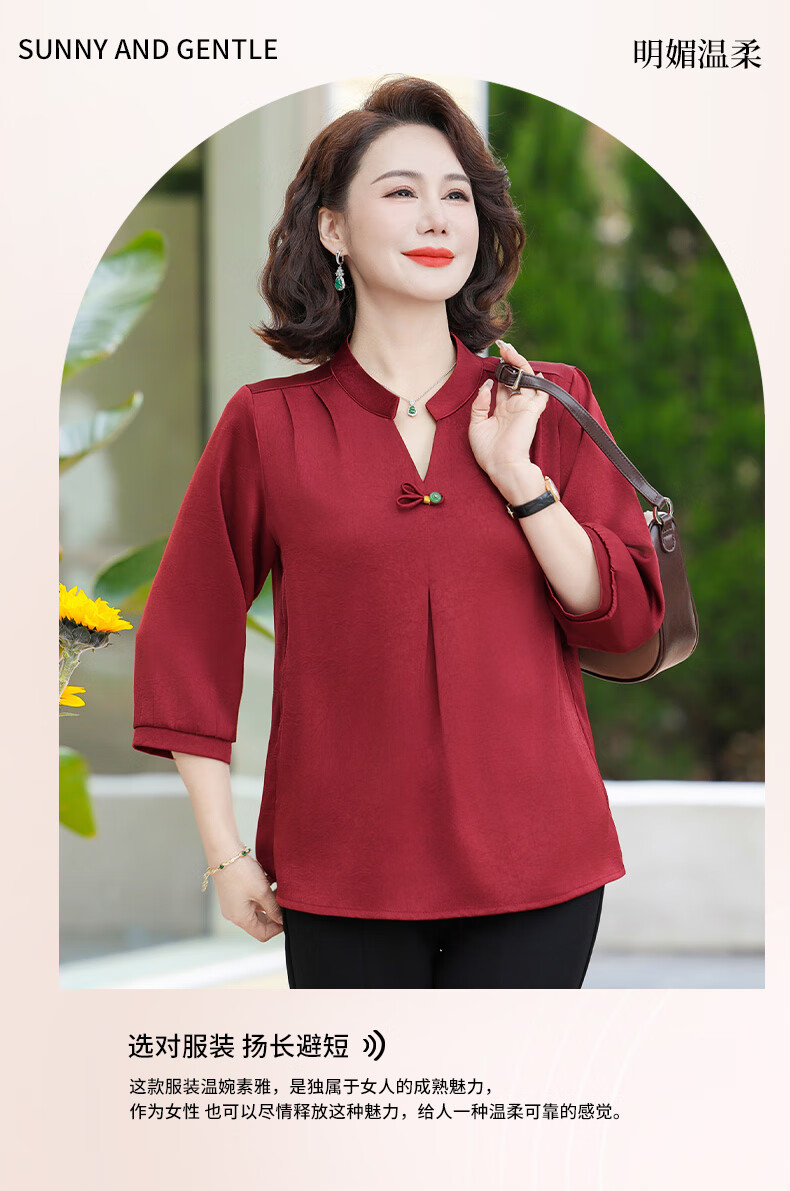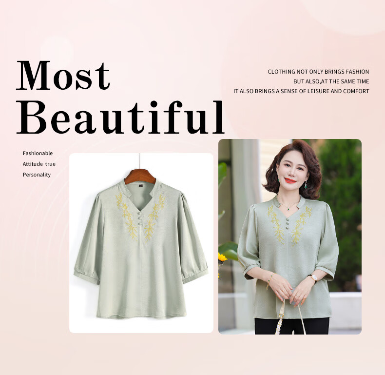 孜颜中老年女装衬衫女妈妈装夏装七分袖两件套50岁60母亲衣服洋气套装 蓝色【单件】 XL (建议80-100斤)