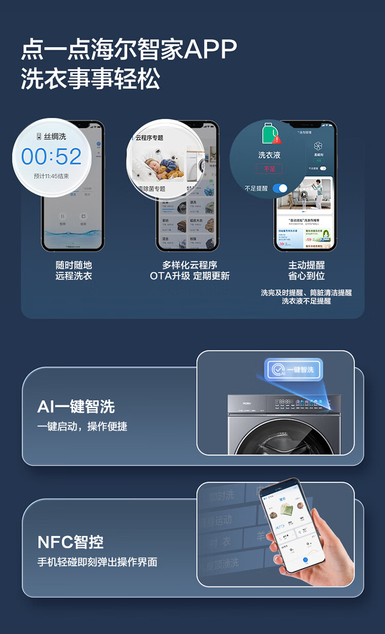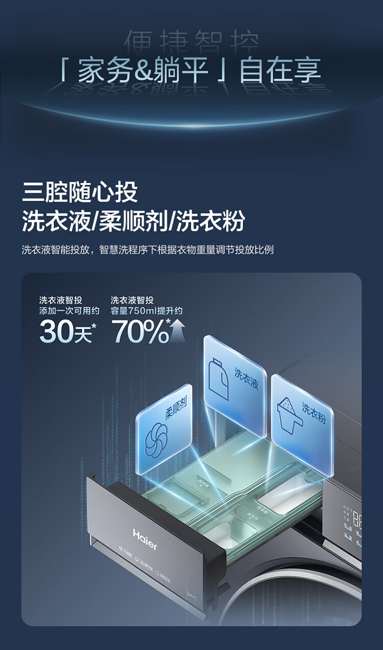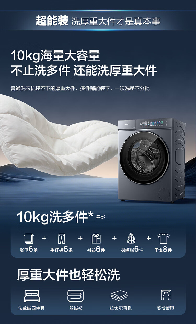 海尔(Haier)【云溪5.0】D1 全自动滚筒洗衣机家用大容量 AI直驱洁净2.0双效除菌直驱变频活水精华洗羊毛绿标 云溪5.0 超级新品10公斤 滚筒