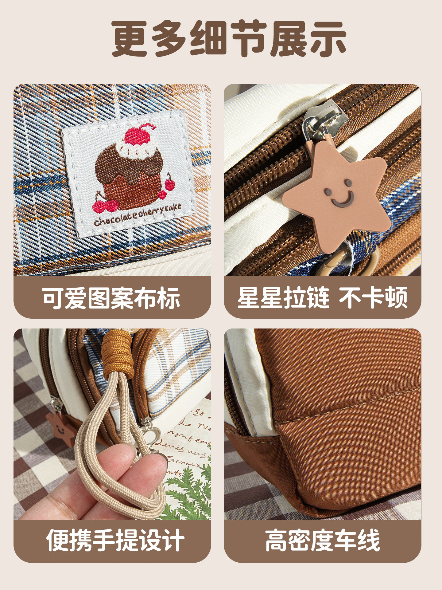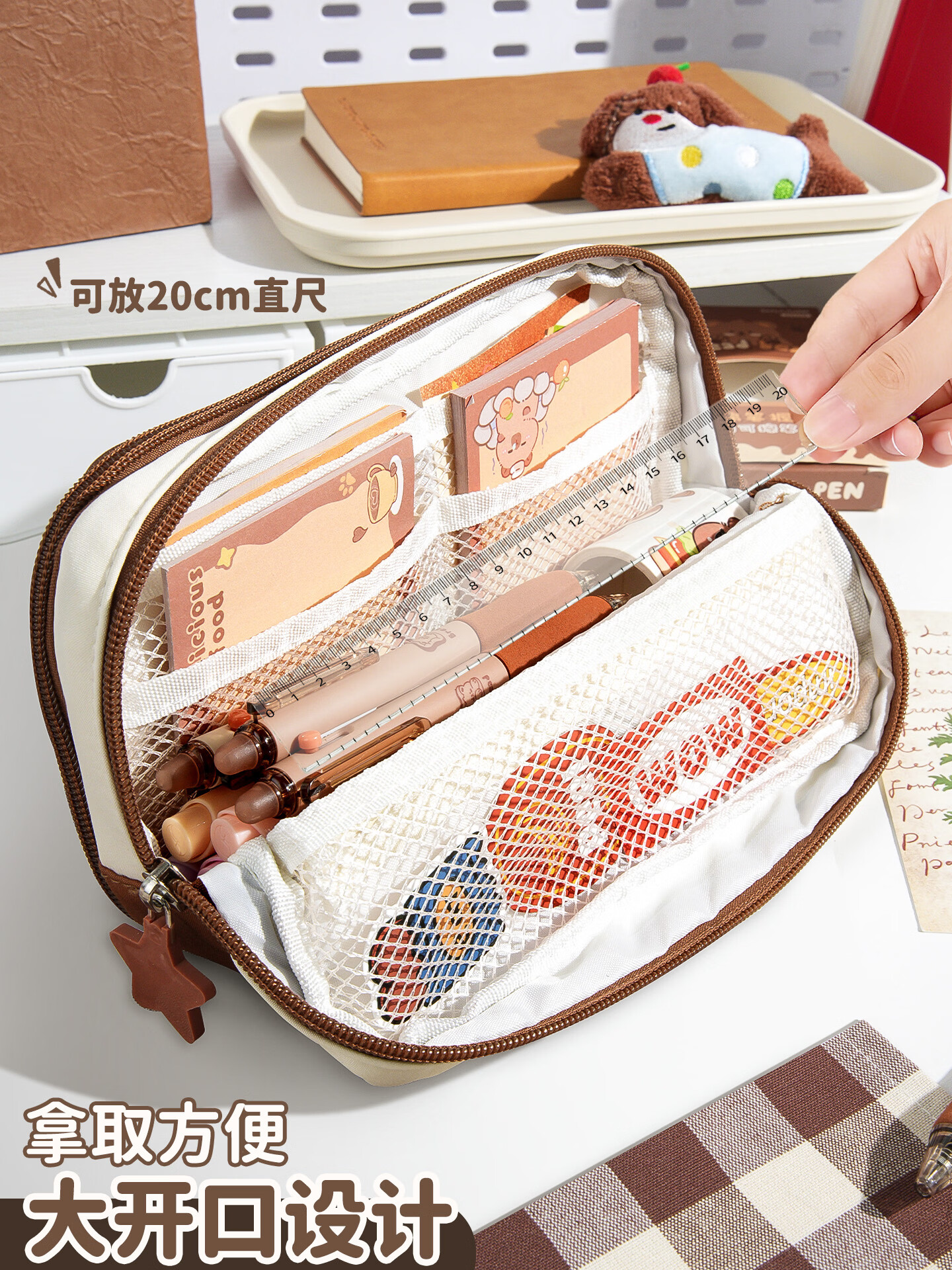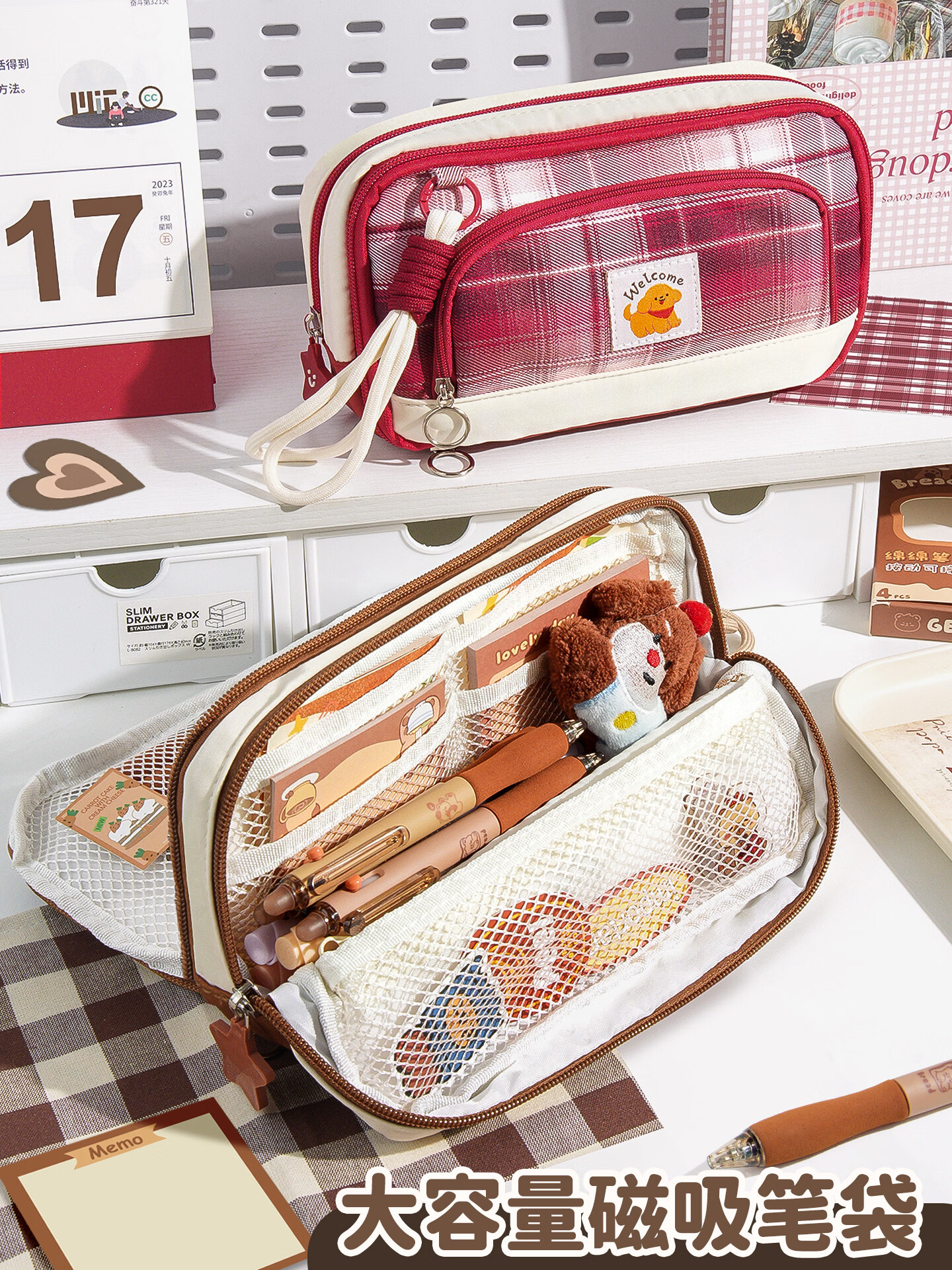 语季格纹加厚笔袋2026新款女生高颜值ins风男孩大容量超火多层文具袋小众不撞款学霸磁吸便携立式笔袋 【格纹蛋糕】多层磁吸可立