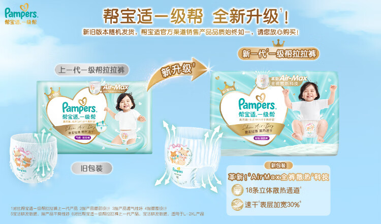 帮宝适散热王者一级帮拉拉裤新生儿婴儿尿不湿尿片超薄透气4XL21