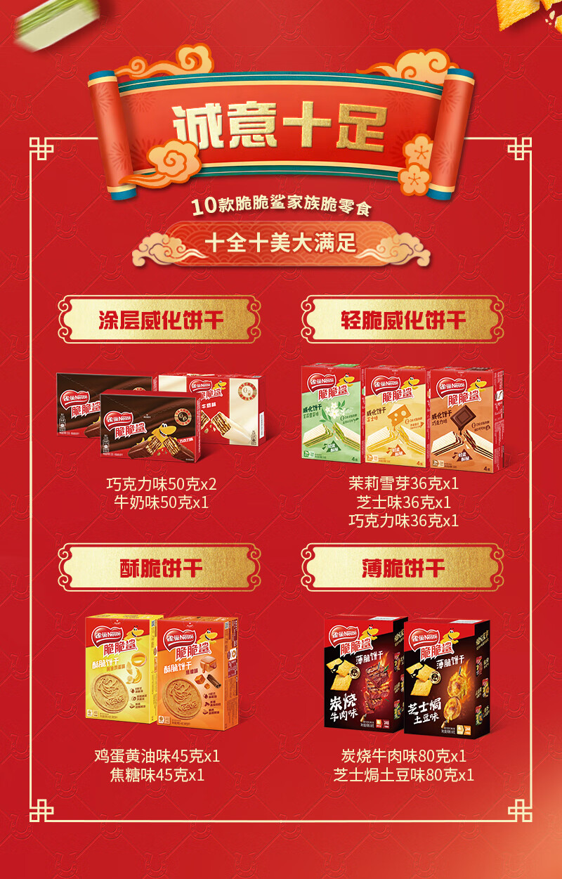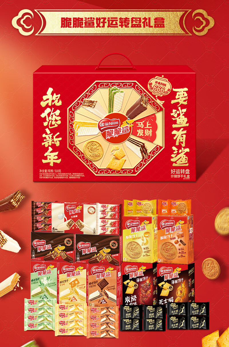 雀巢(Nestle)脆脆鲨食来运转什锦威化饼干礼盒510g休闲零食女神节开学零食礼盒