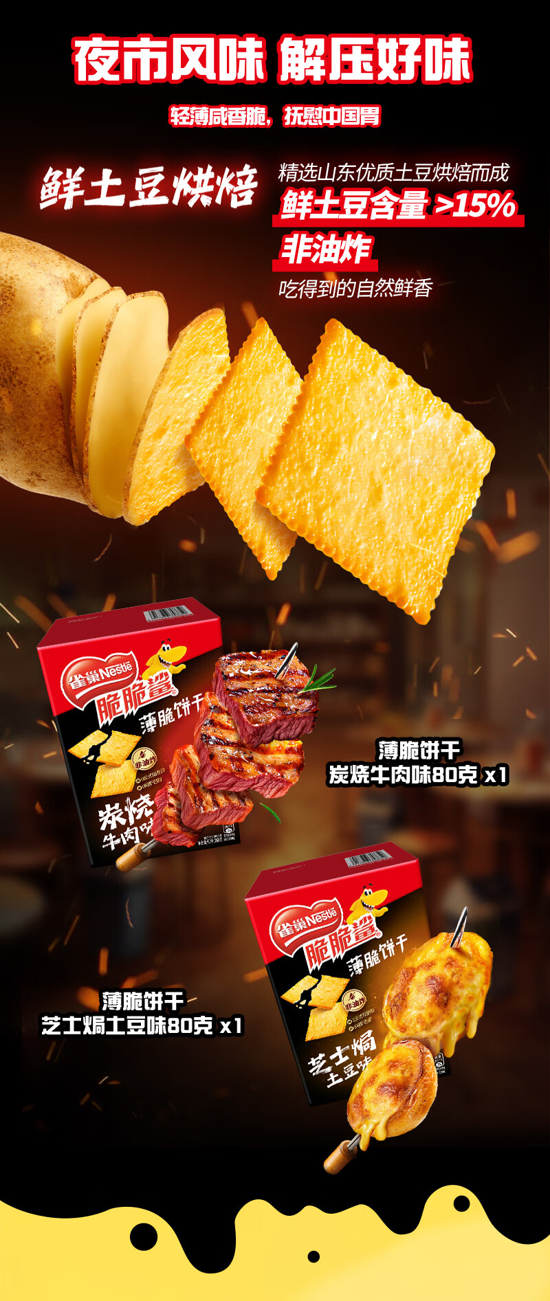 京东京造鲜来多安格斯香烤牛肉薄脆牛排脆 原味100g 内蒙特产零食