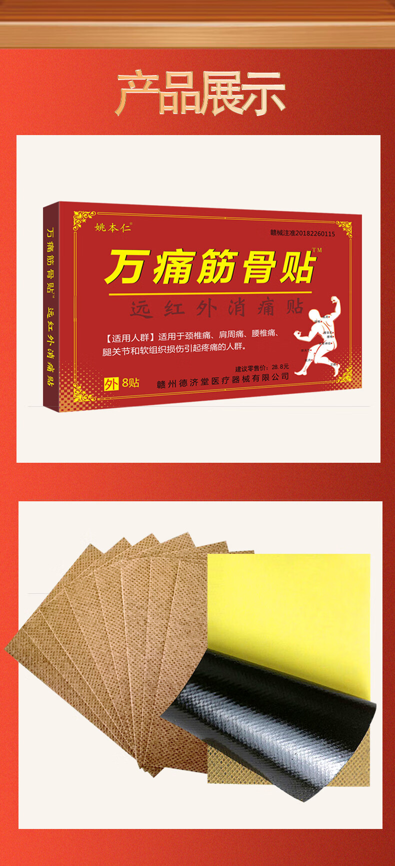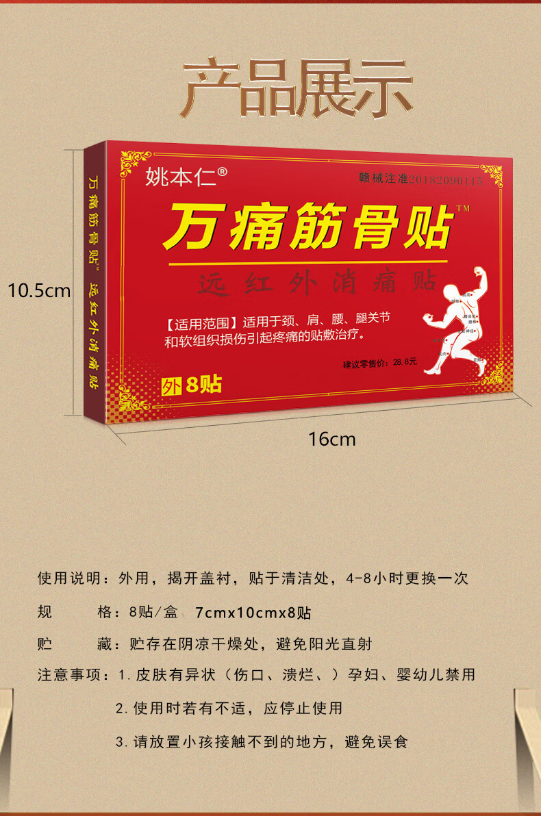 万痛筋骨贴腰腿疼痛贴膏肩周炎膝盖贴通筋骨关节膏药贴颈椎贴 1袋8贴/1盒【体验装】