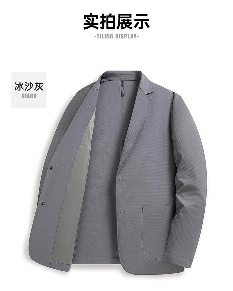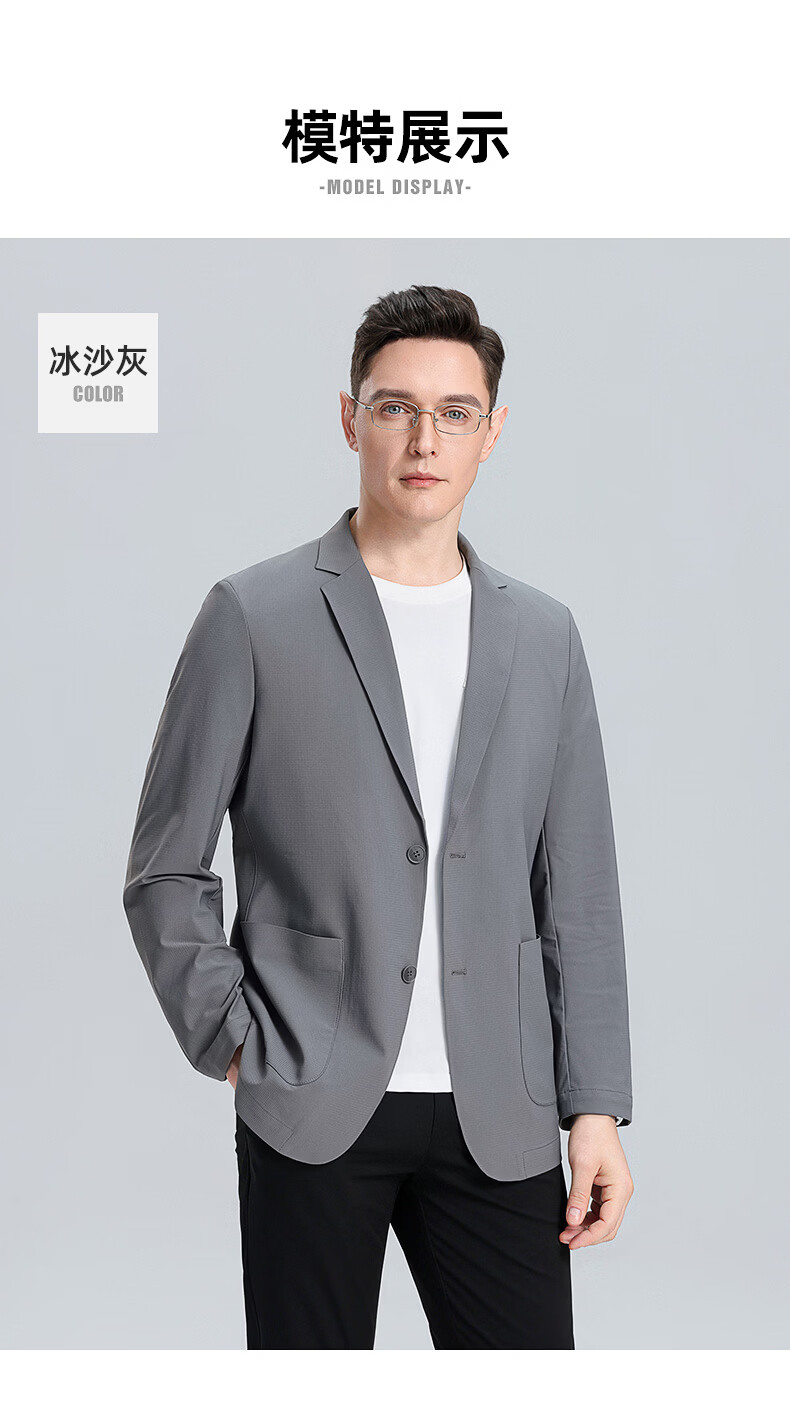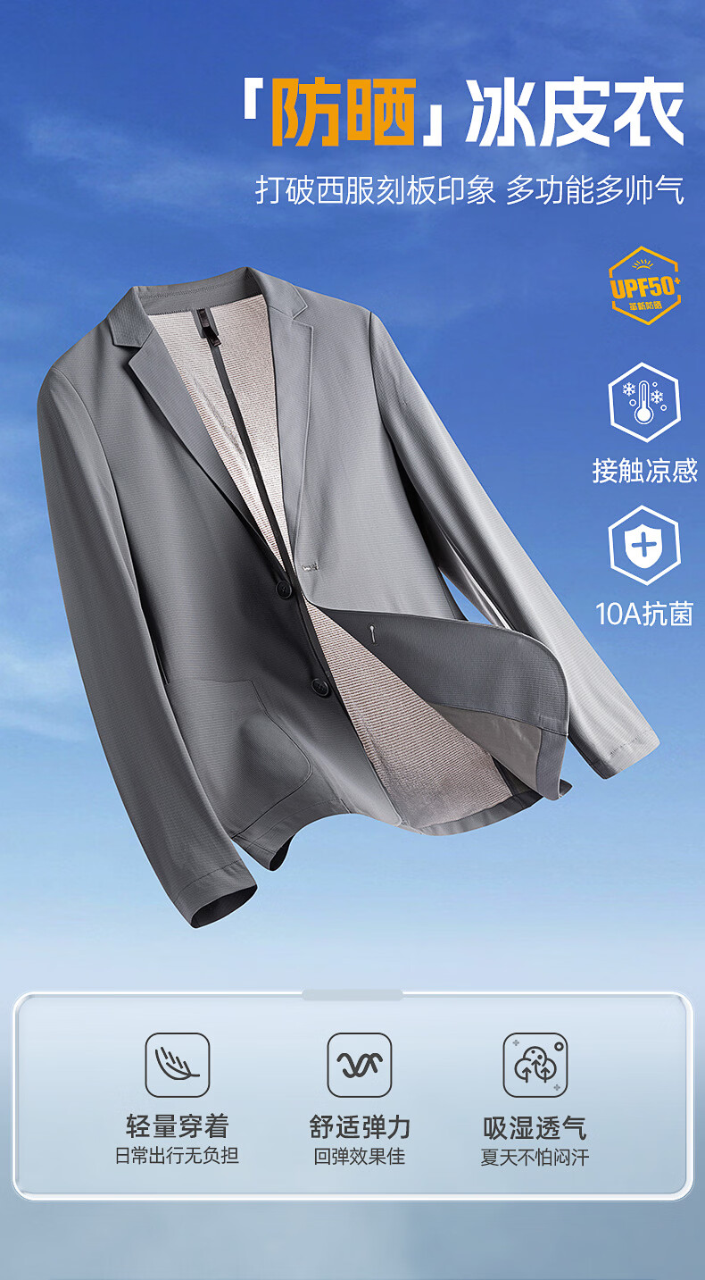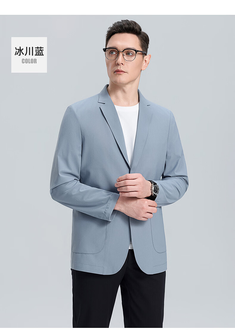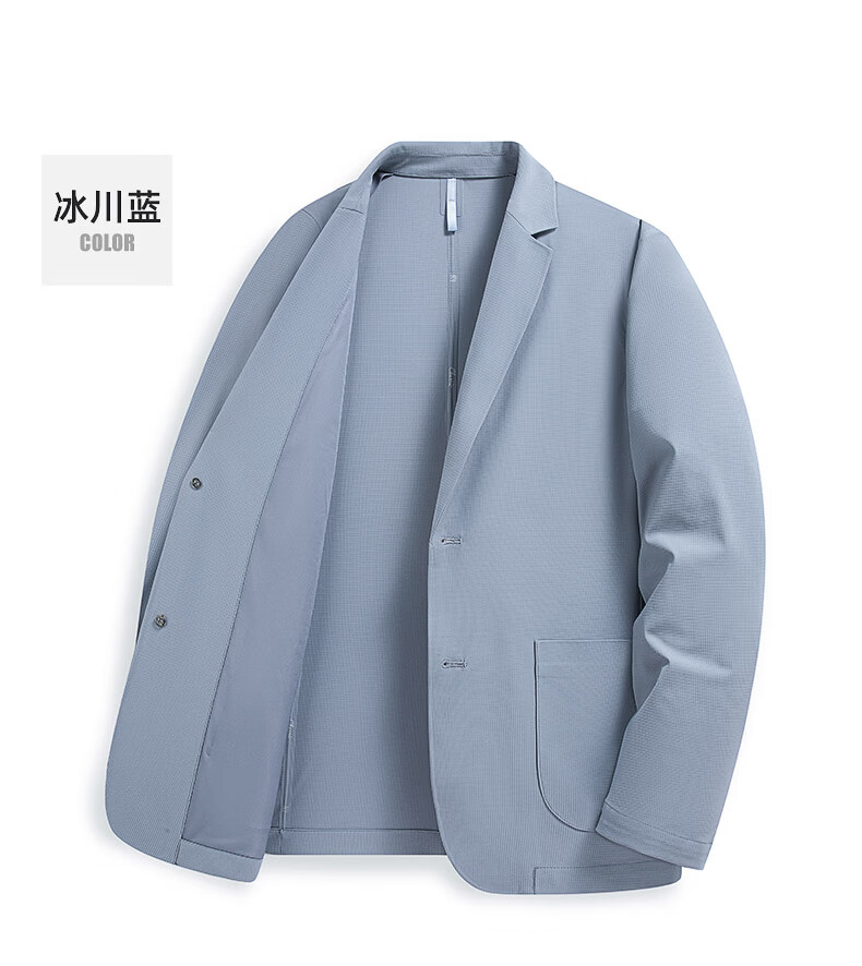 罗蒙(ROMON)10A抗菌防晒凉感休闲单西男士户外商务通勤华夫格冰丝单西外套男 冰川蓝 XL (180) (建议145-165斤)