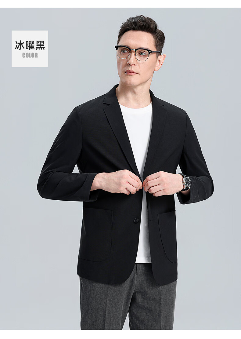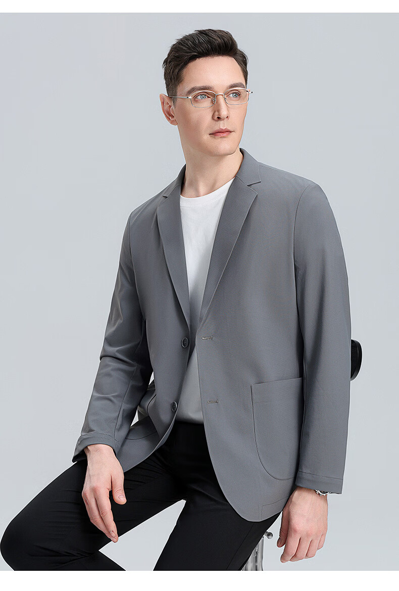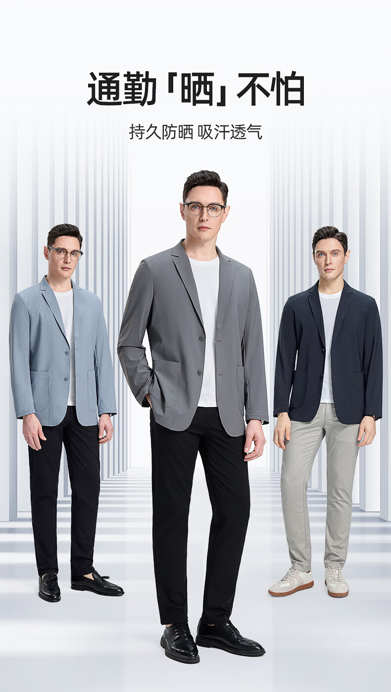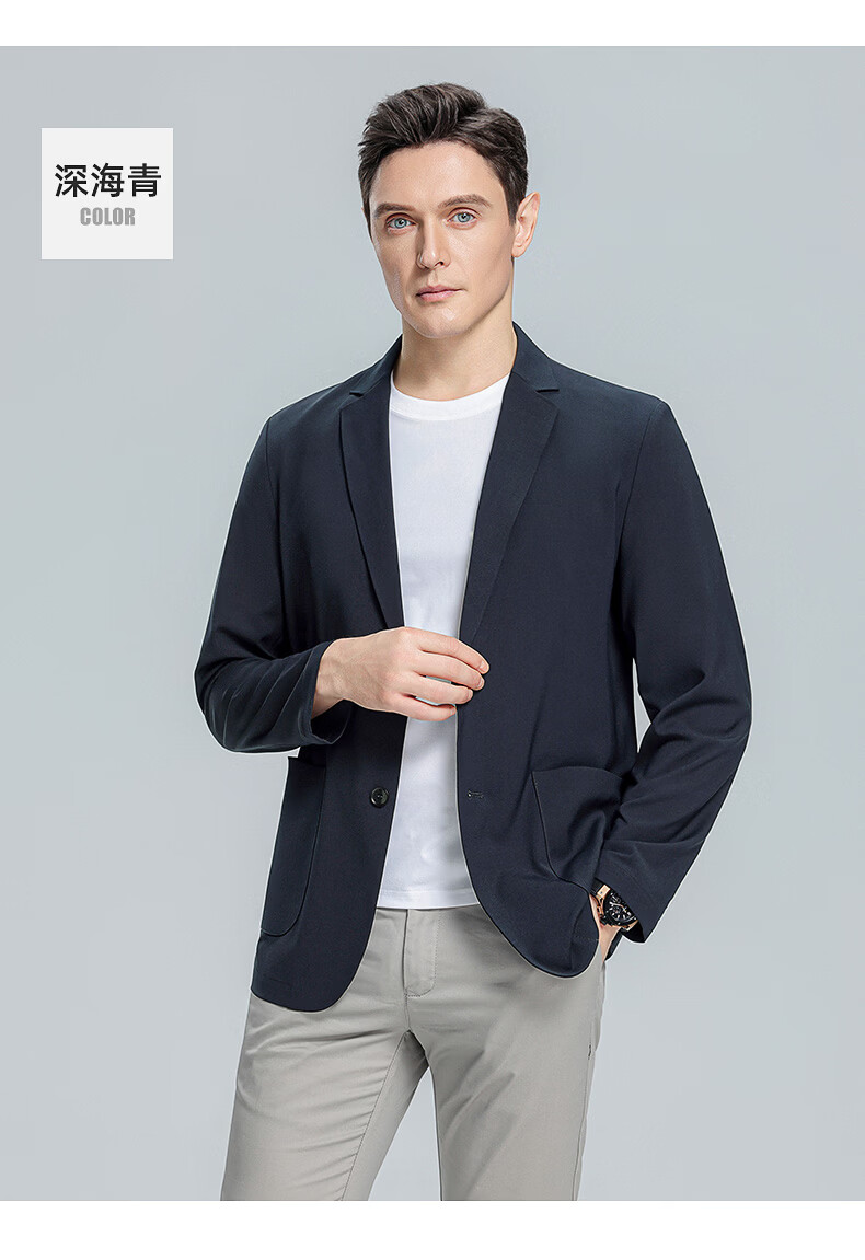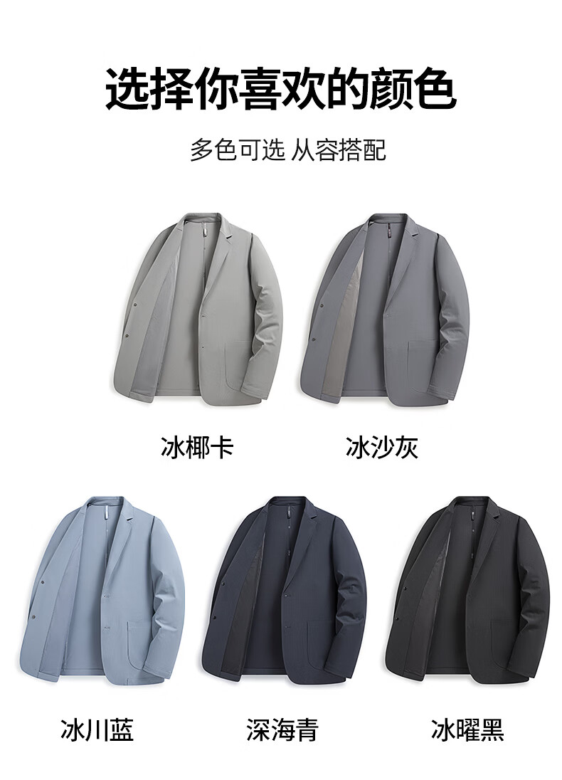 罗蒙(ROMON)10A抗菌防晒凉感休闲单西男士户外商务通勤华夫格冰丝单西外套男 冰川蓝 XL (180) (建议145-165斤)