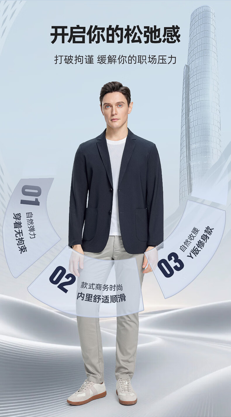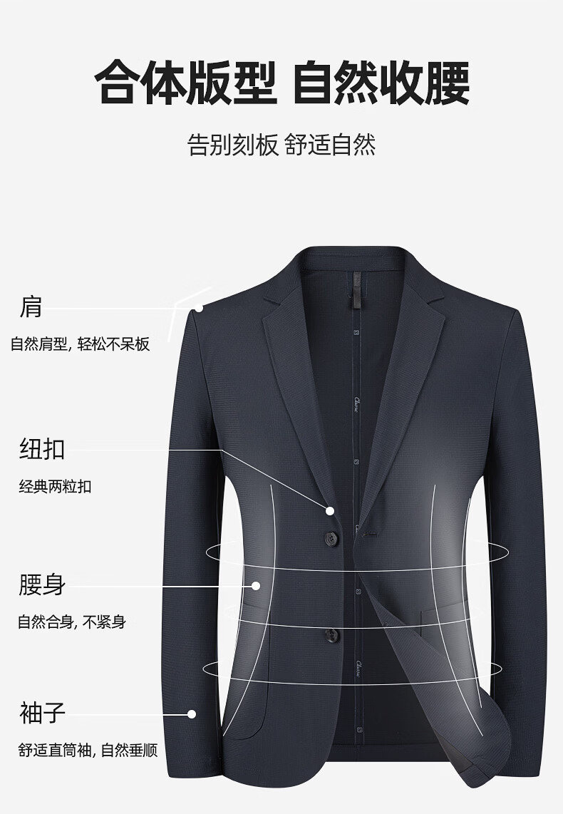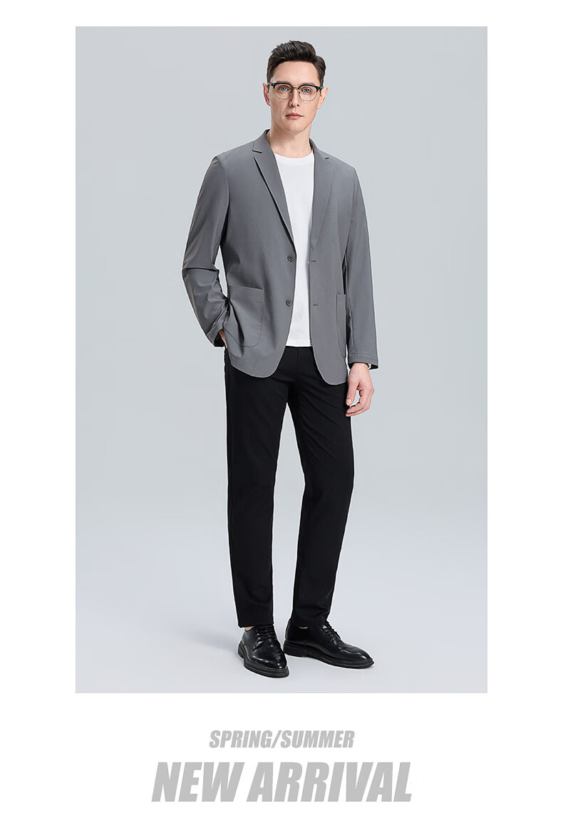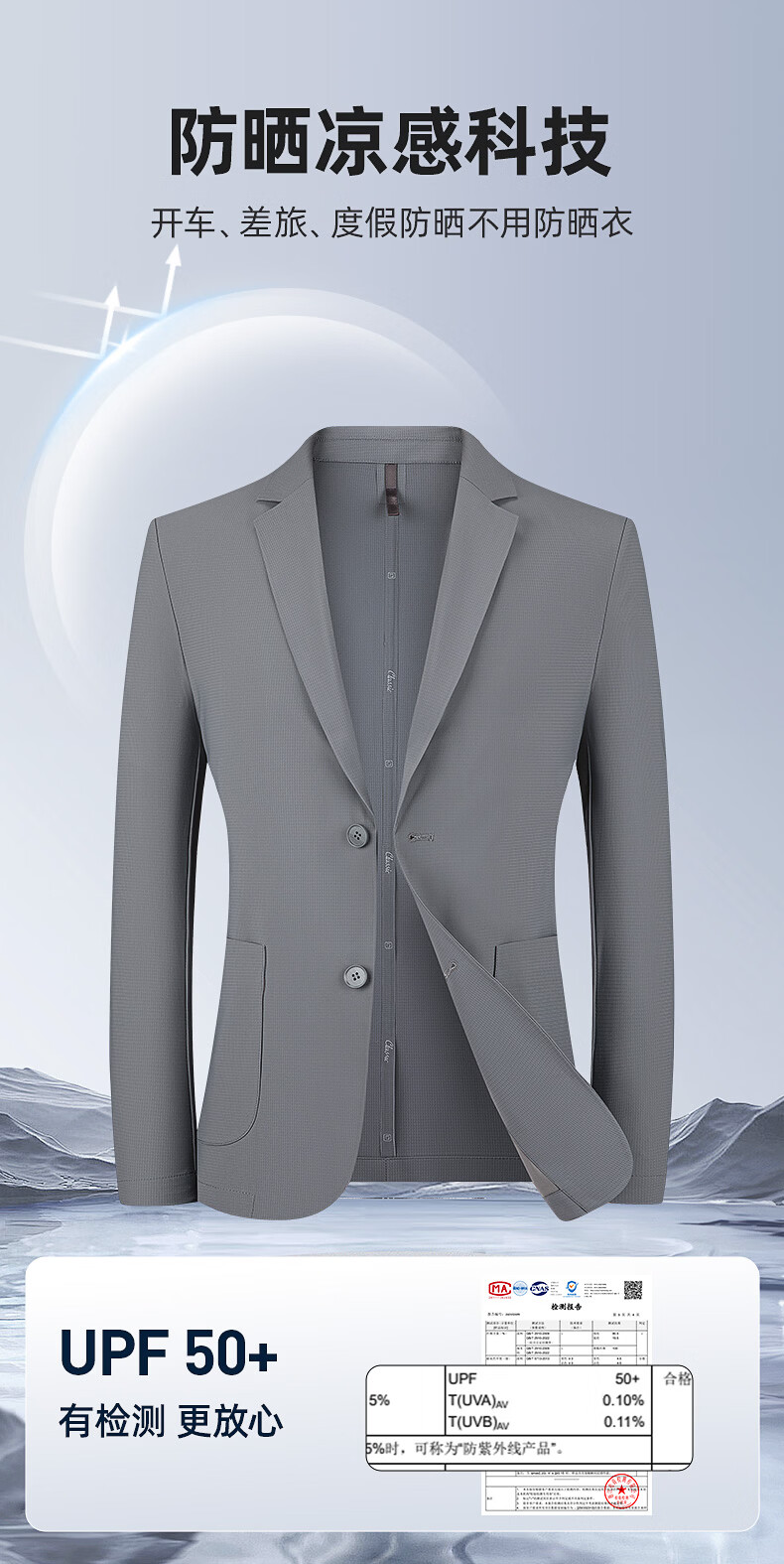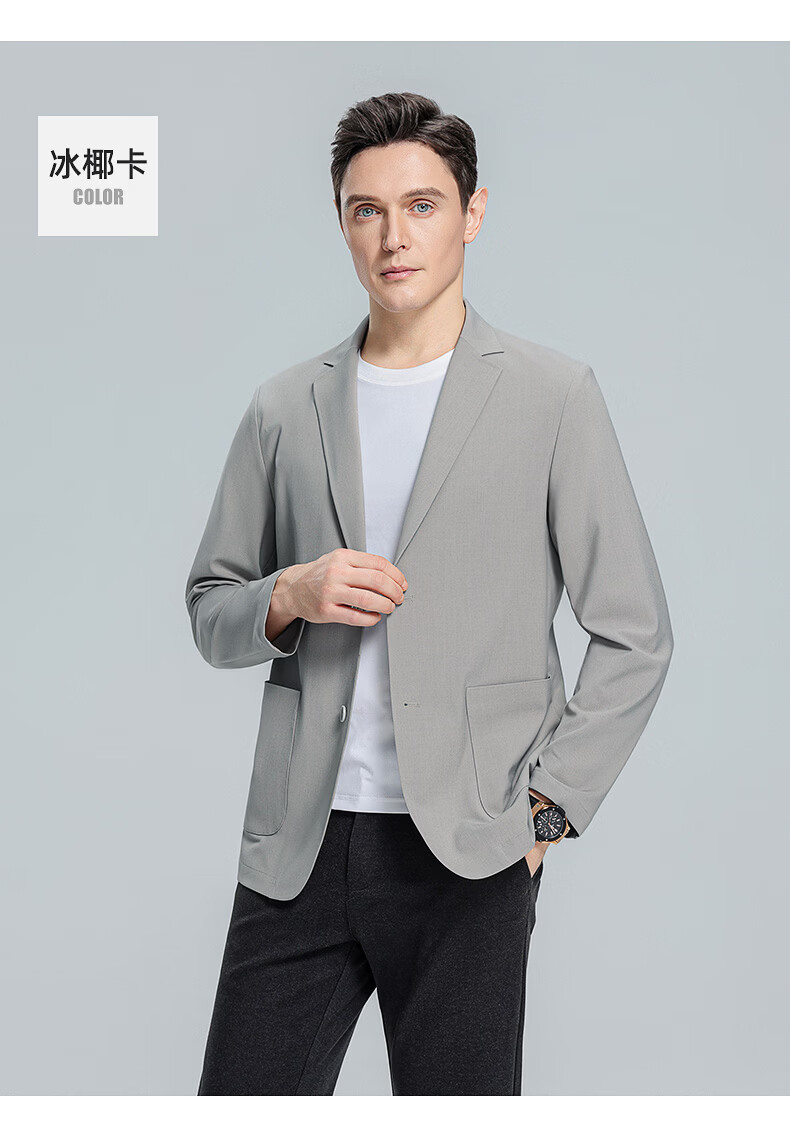 罗蒙(ROMON)10A抗菌防晒凉感休闲单西男士户外商务通勤华夫格冰丝单西外套男 冰川蓝 XL (180) (建议145-165斤)