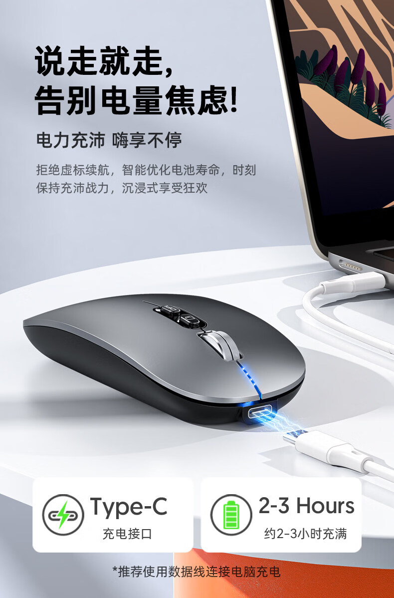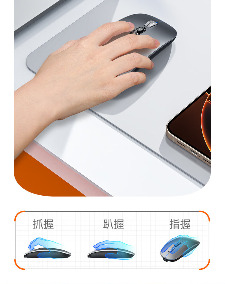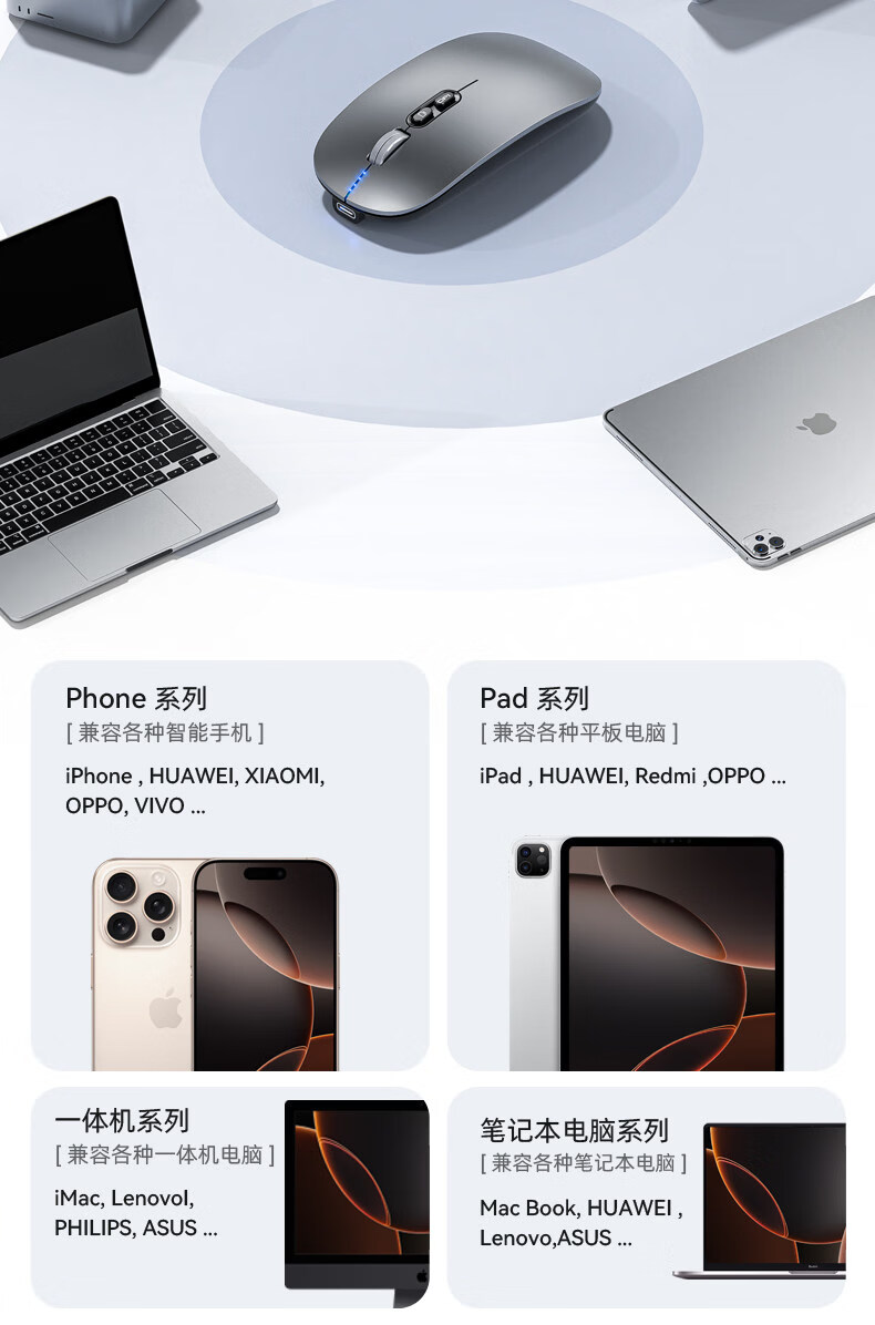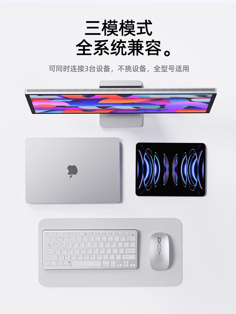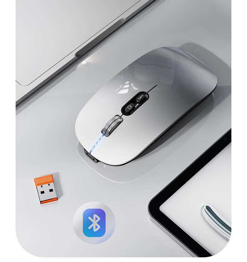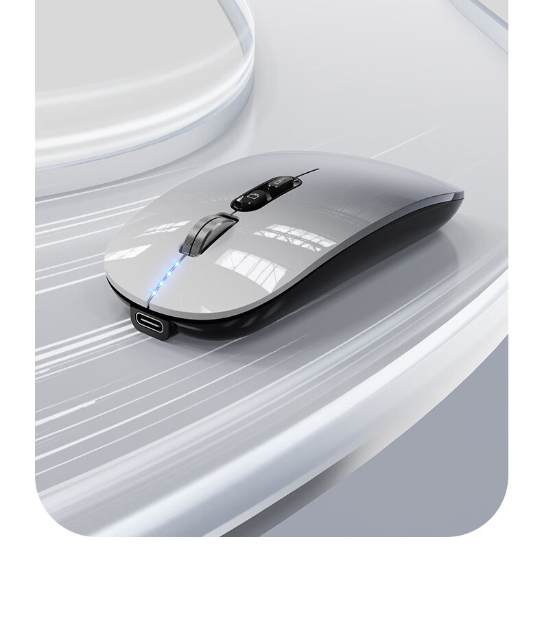 适用2025款苹果电脑笔记本MacBook Pro/Air M5M4M3M2无线蓝牙鼠标type-c接口办公静音充电iPad平板 【亮灰白】蓝牙+USB+Typec接口