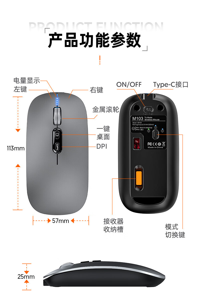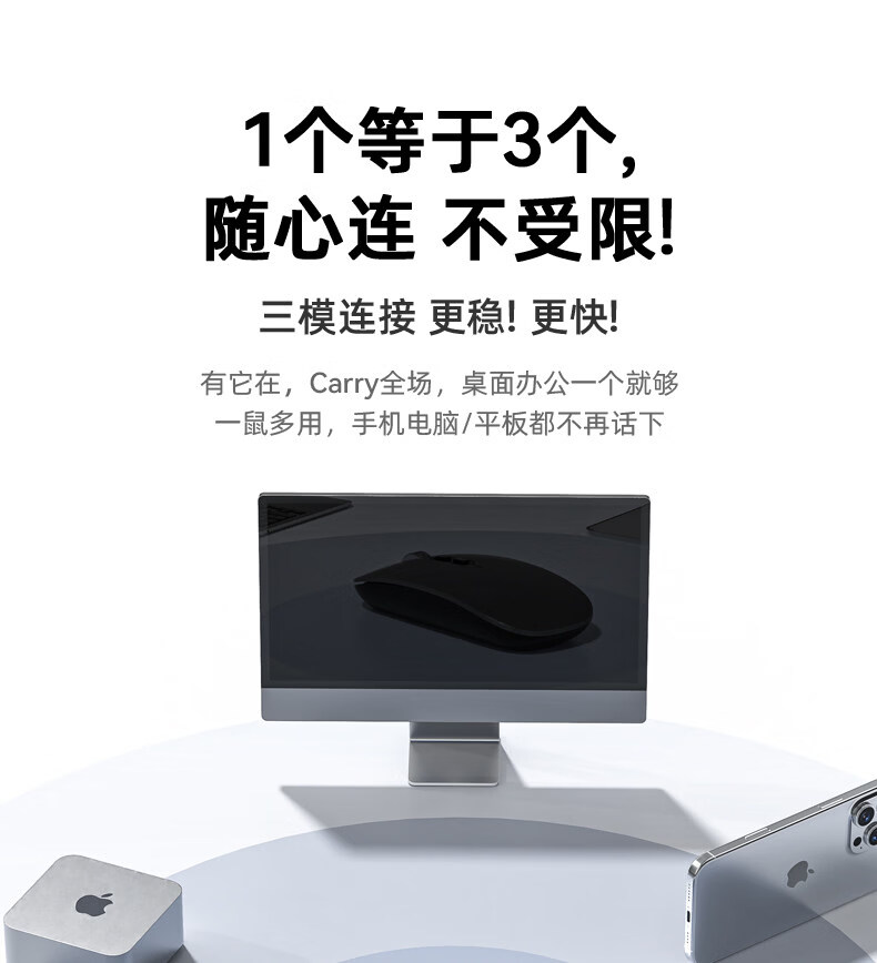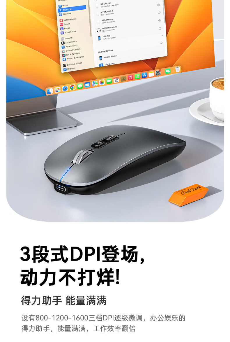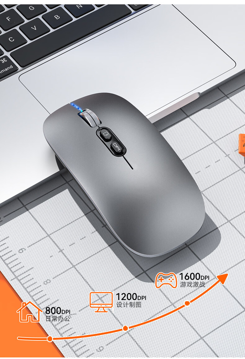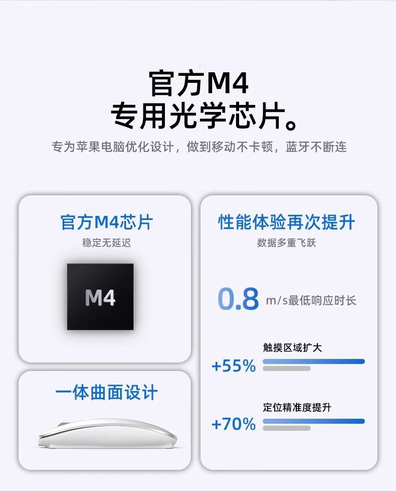 适用2025款苹果电脑笔记本MacBook Pro/Air M5M4M3M2无线蓝牙鼠标type-c接口办公静音充电iPad平板 【亮灰白】蓝牙+USB+Typec接口