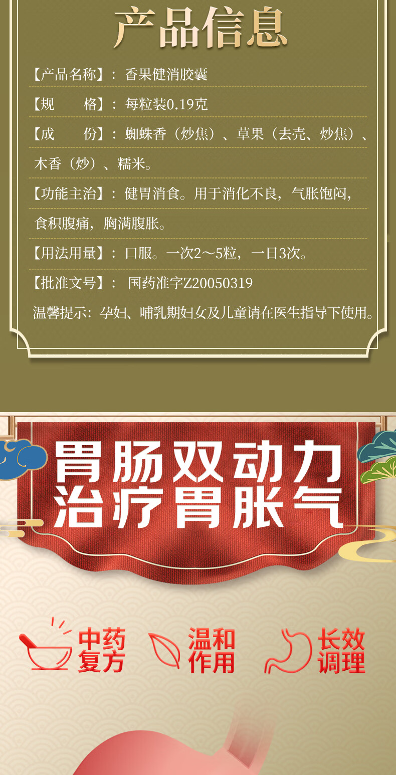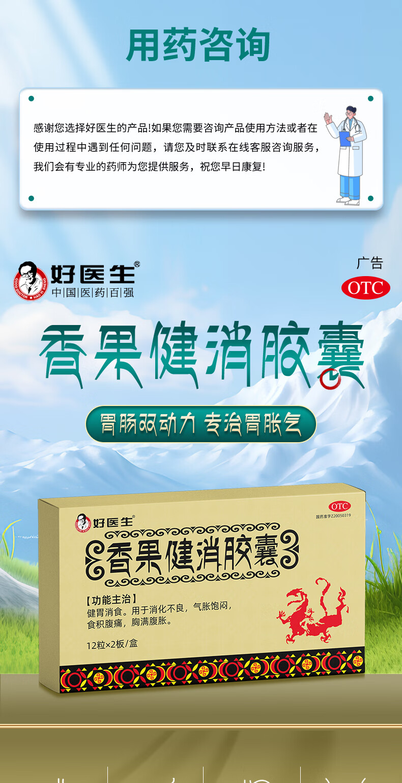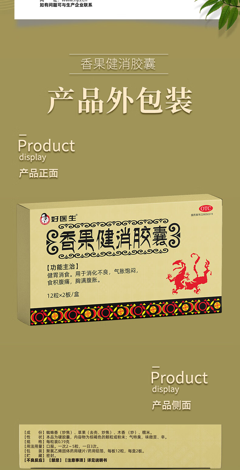 [好医生]香果健消胶囊 0.19g*24粒 1盒装 健胃消食 用于消化不良 气胀饱闷 食积腹痛 胸满腹胀 4天用量