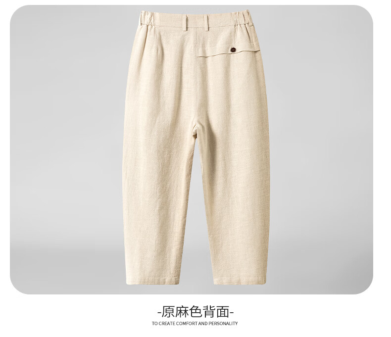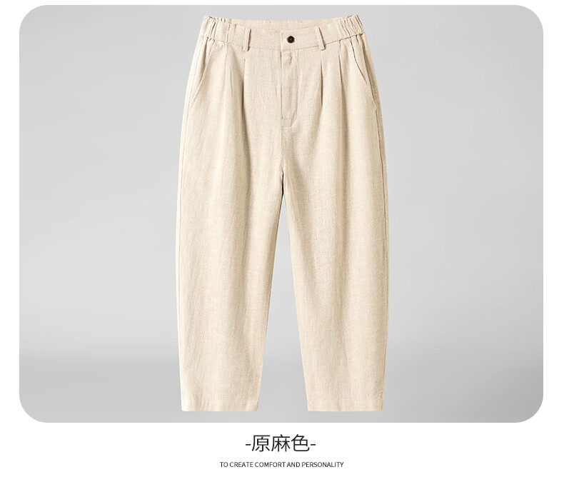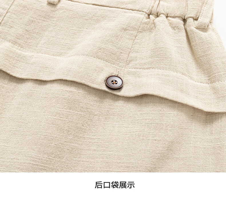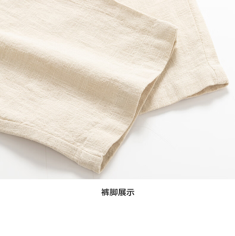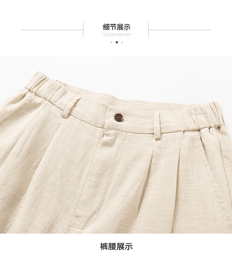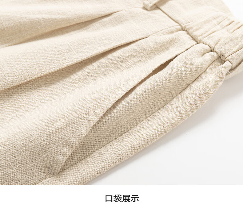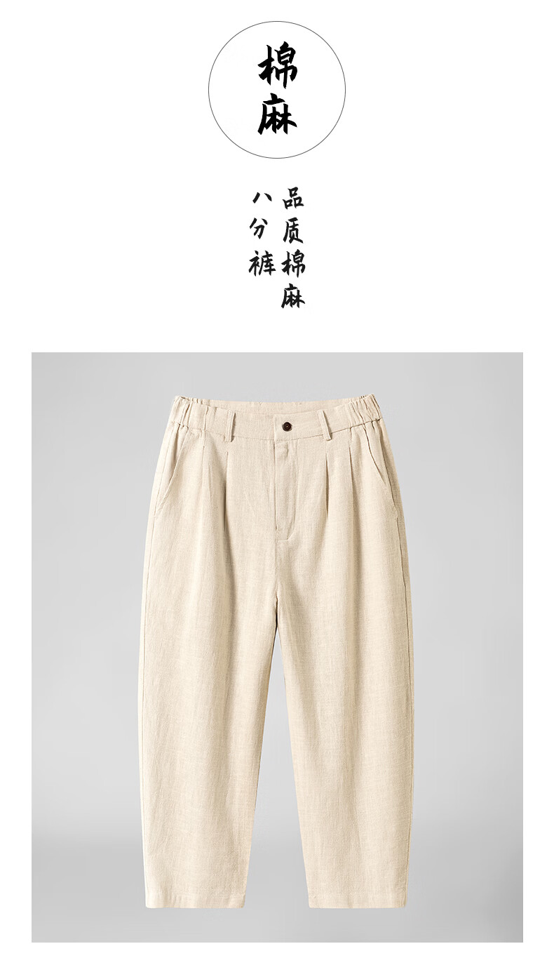 SHANSHAN杉杉【棉+苎麻】休闲裤男士夏季新款休闲简约松紧腰八分裤男裤 原麻色 L /175