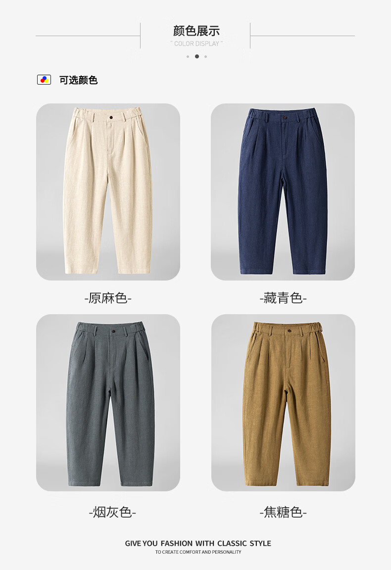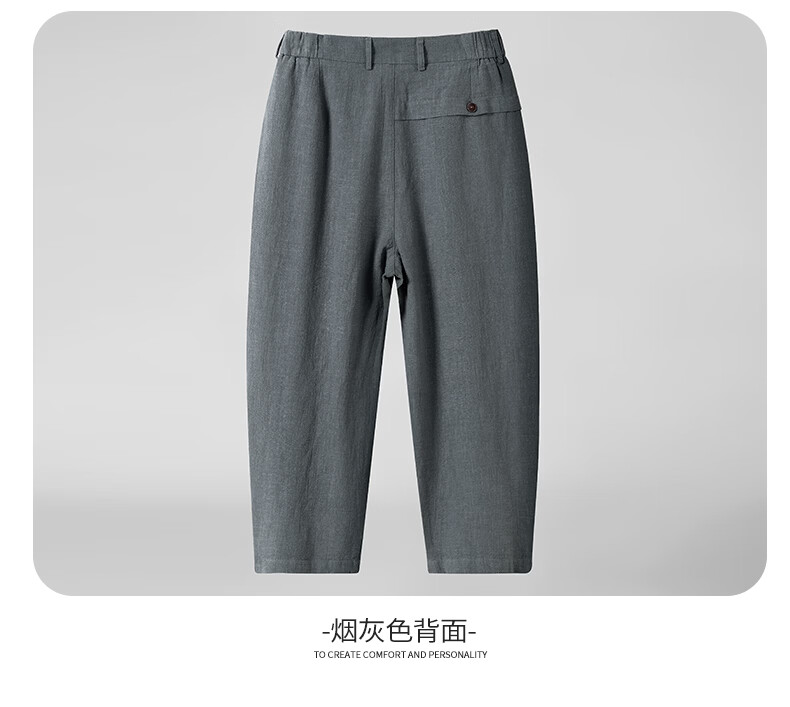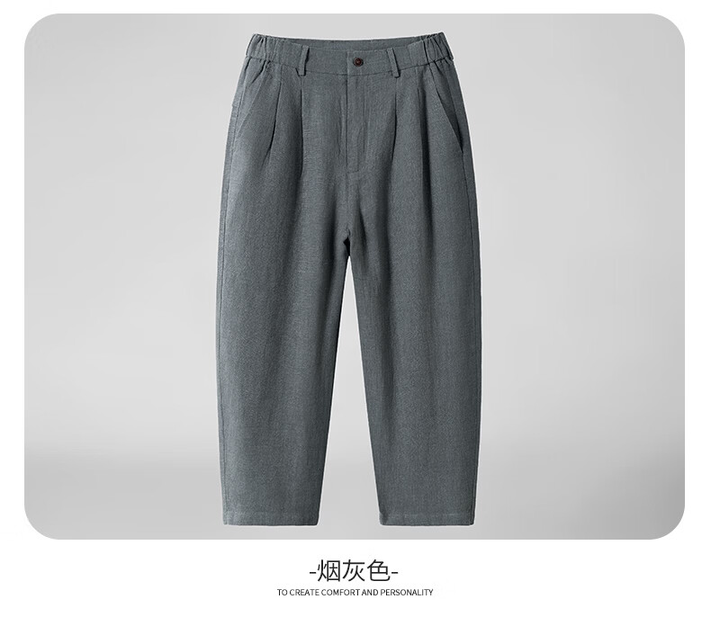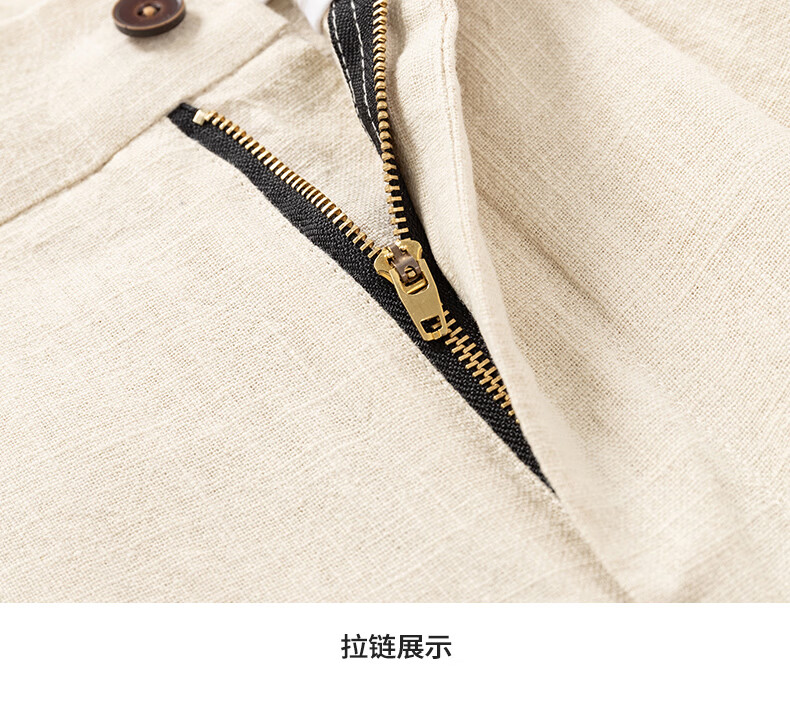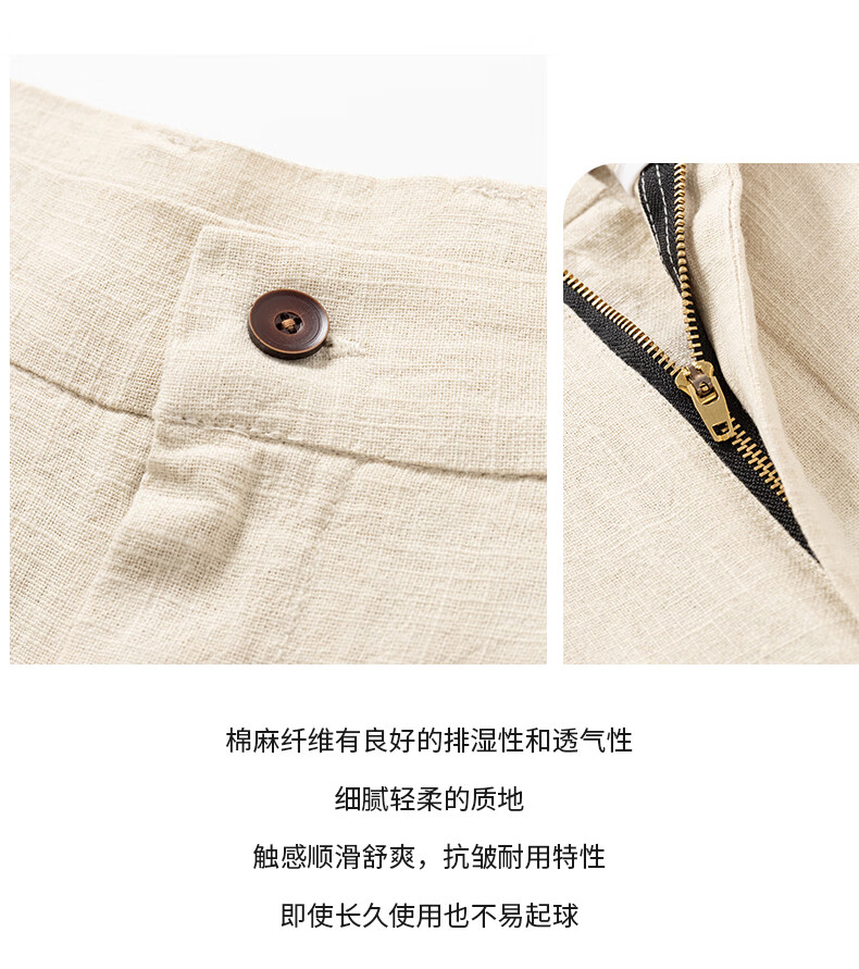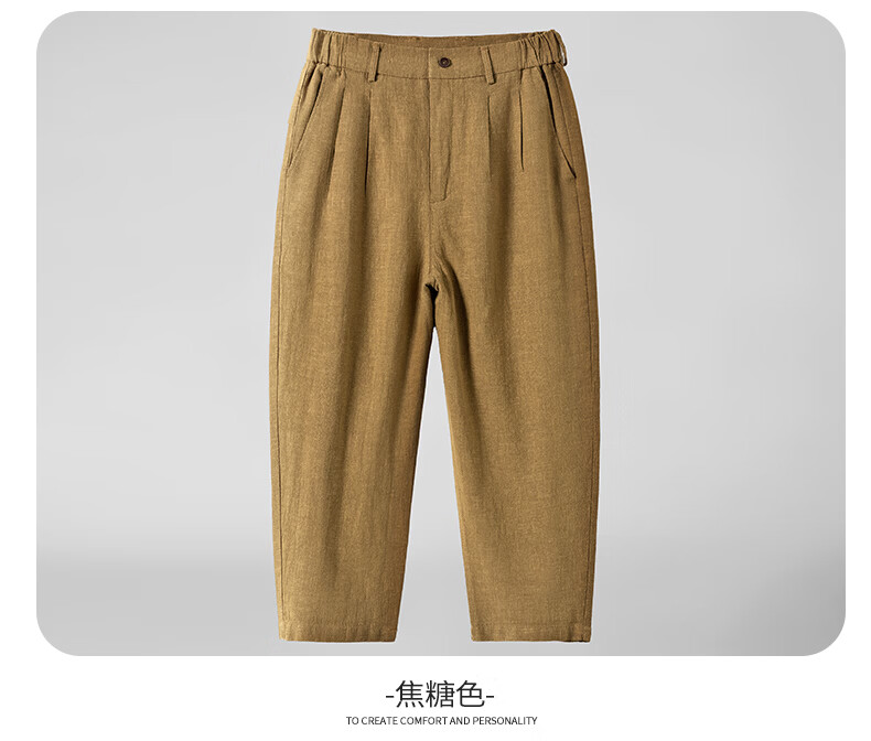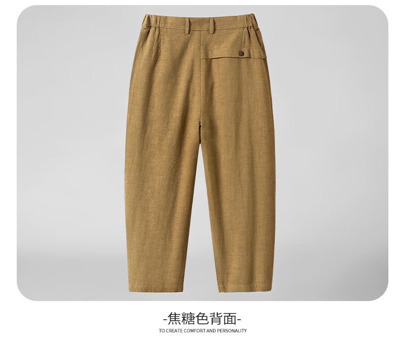 SHANSHAN杉杉【棉+苎麻】休闲裤男士夏季新款休闲简约松紧腰八分裤男裤 原麻色 L /175