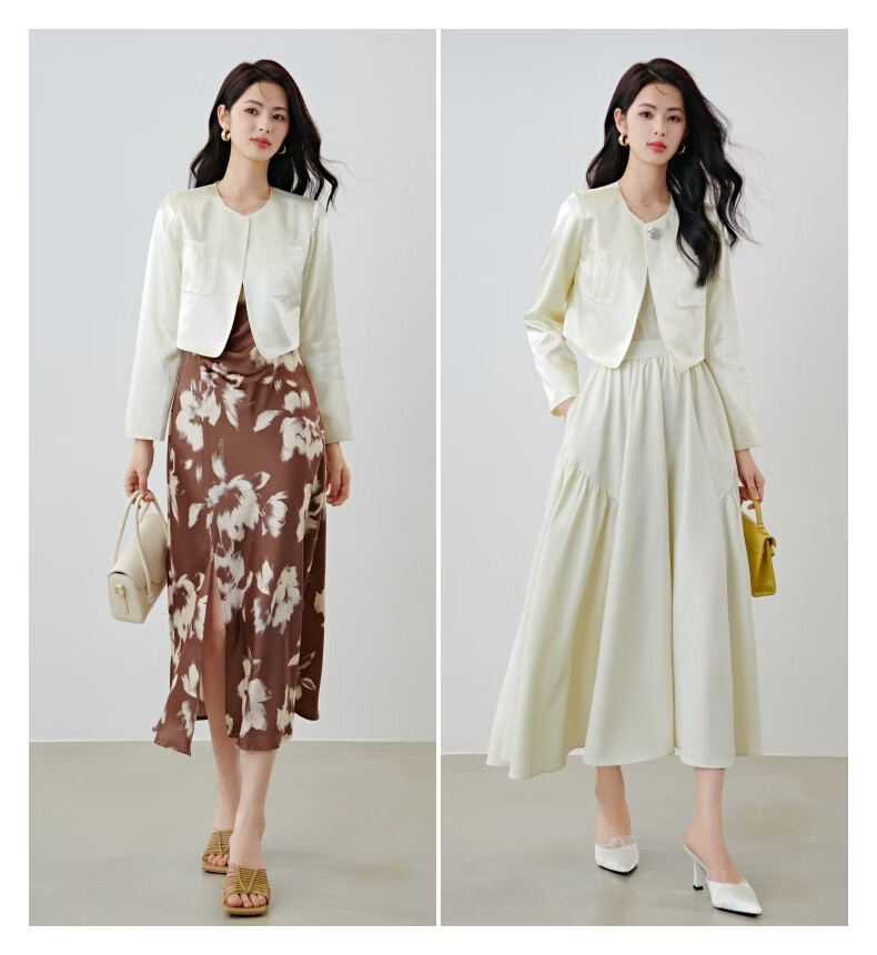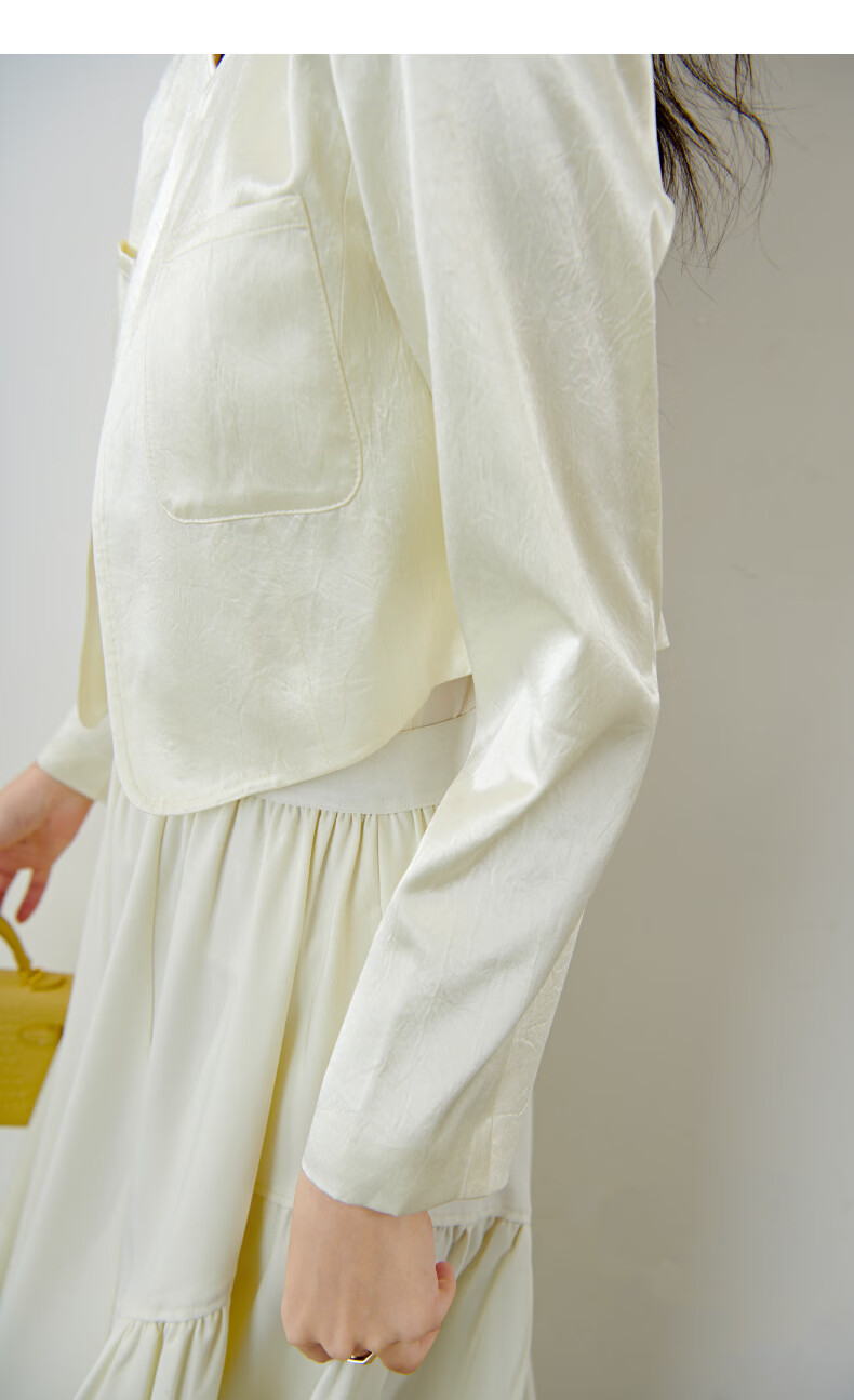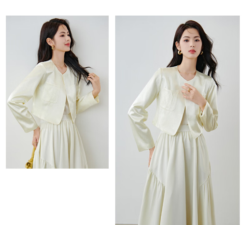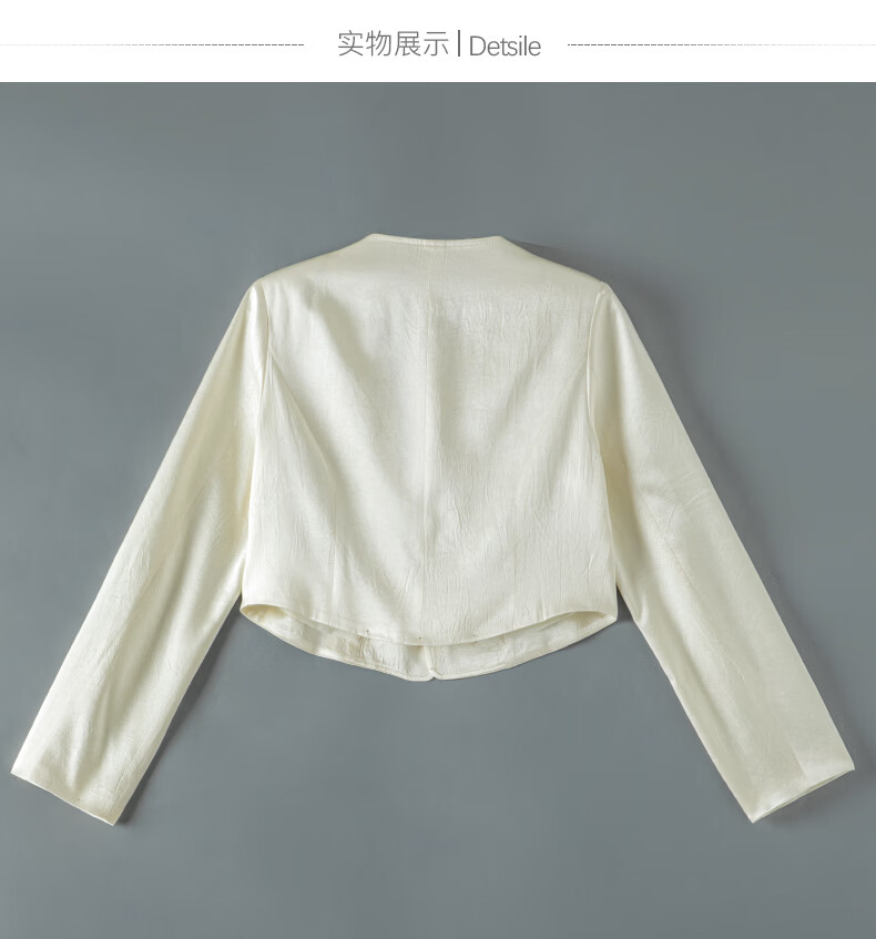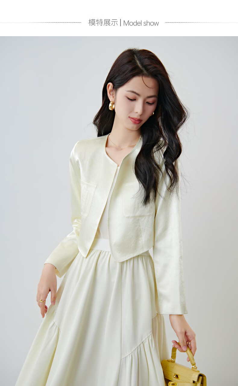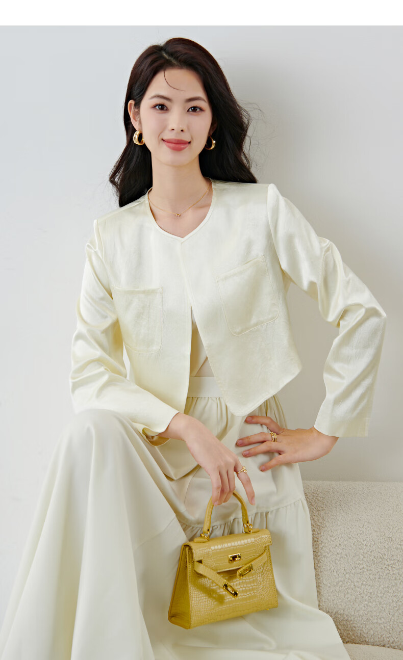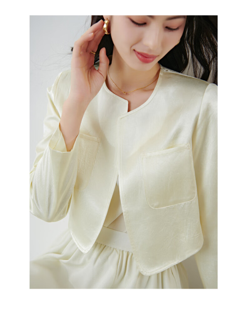 晚白【新品】2026春小个子显高千金风缎感醋酸上衣高智感穿搭短款外套 杏色 S