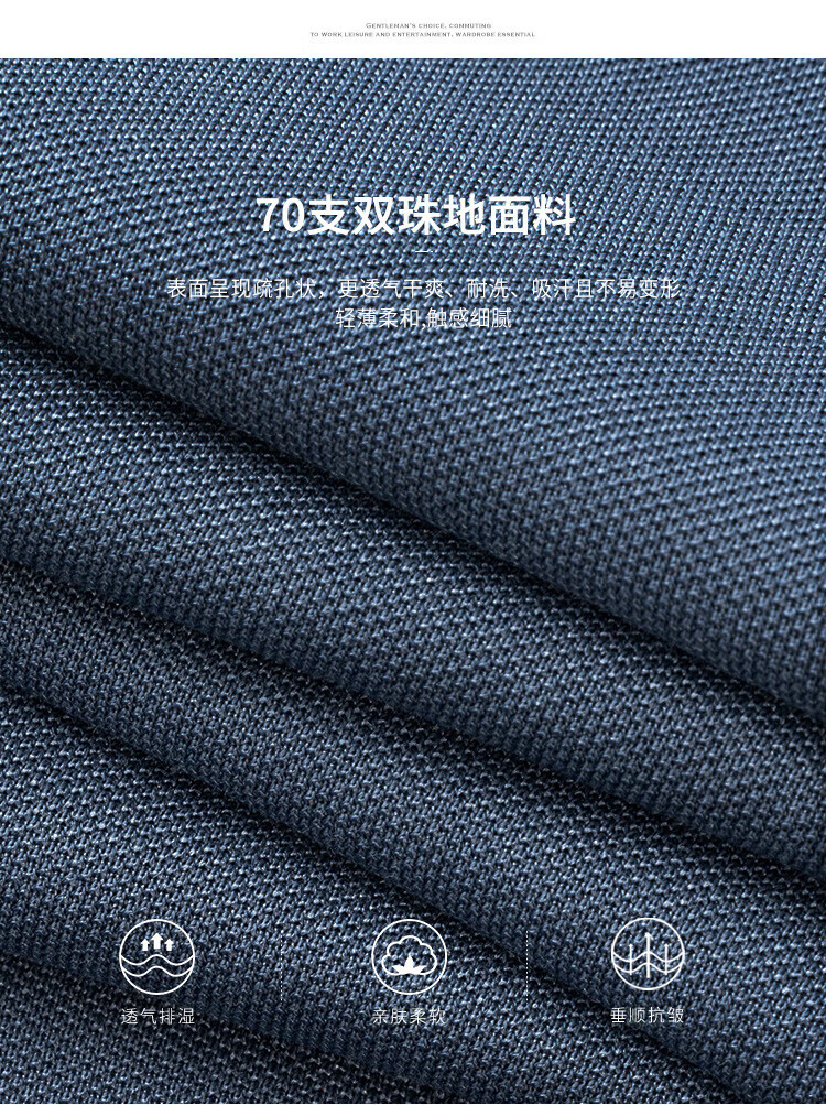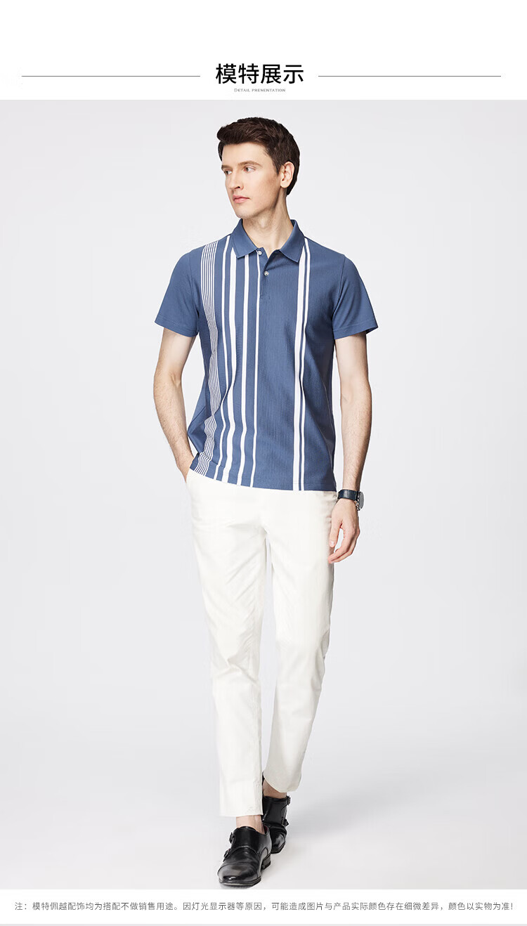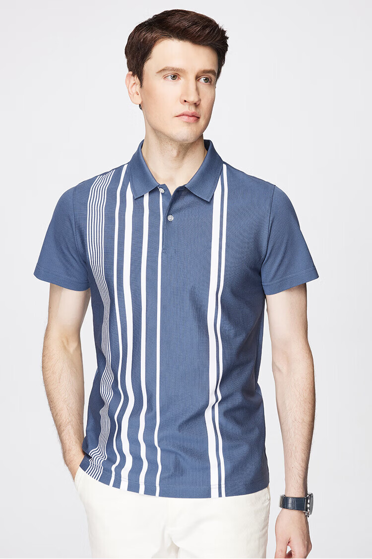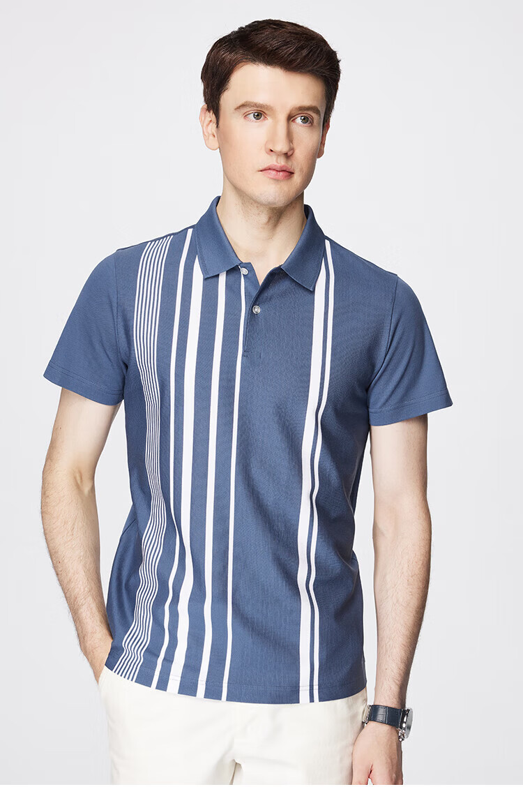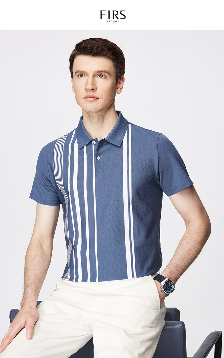 杉杉(FIRS)短袖T恤男夏季70支纯棉舒适透气POLO体恤双珠地垂顺抗皱男装上衣 灰蓝 M (170/88A)