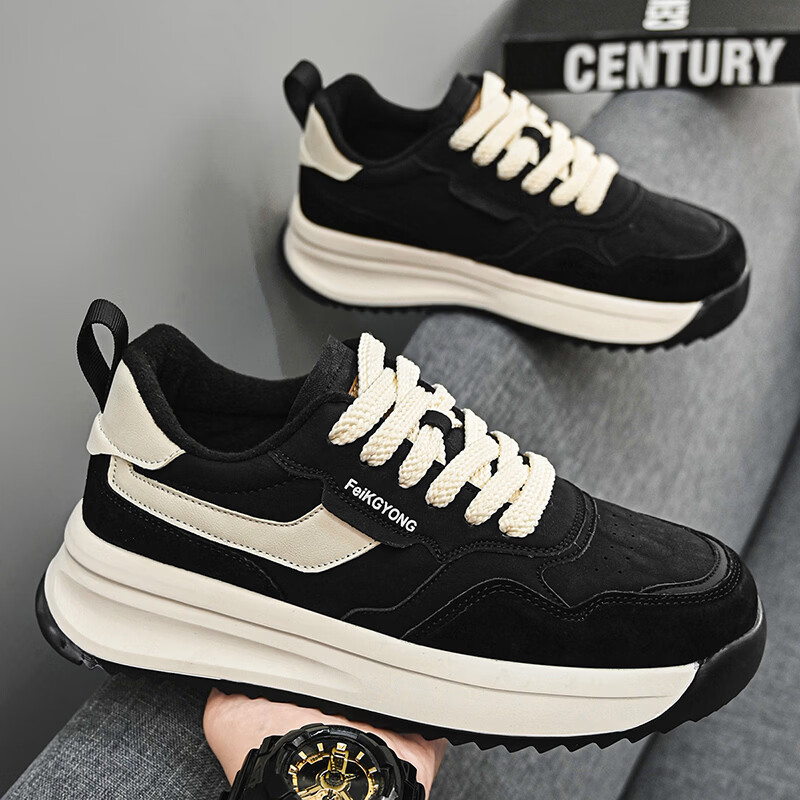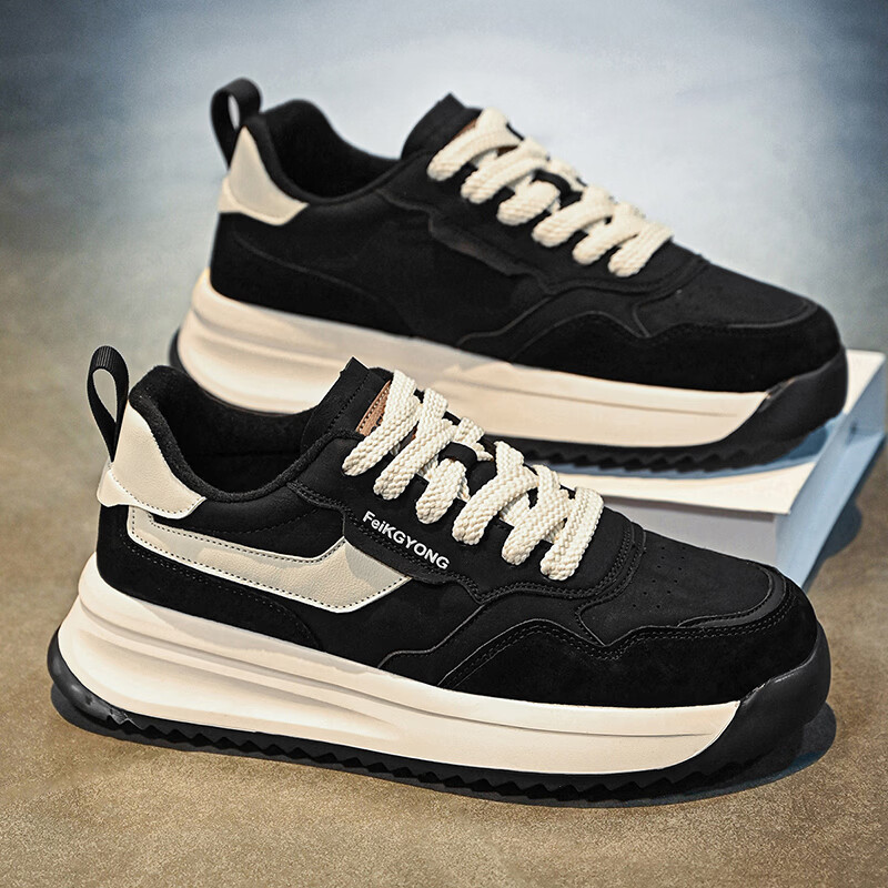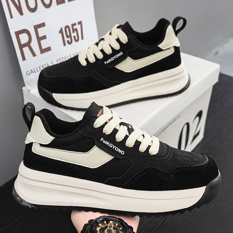 森馬男鞋2026年新款春季潮流百搭休闲跑步运动鞋男士防滑阿甘老爹潮鞋 黑色【基础款】 39 标准码数/现货秒发