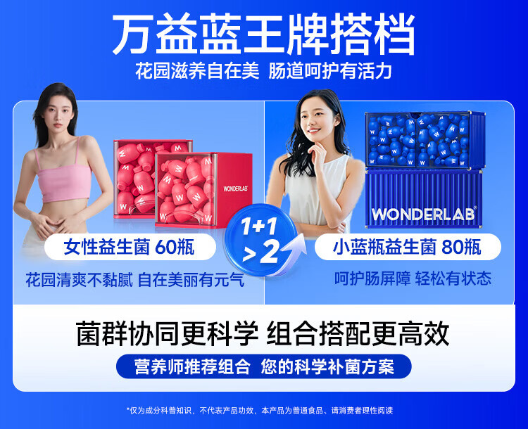 万益蓝WonderLab 小蓝瓶益生菌40瓶升级4.0 肠道肠胃益生菌 成人调理