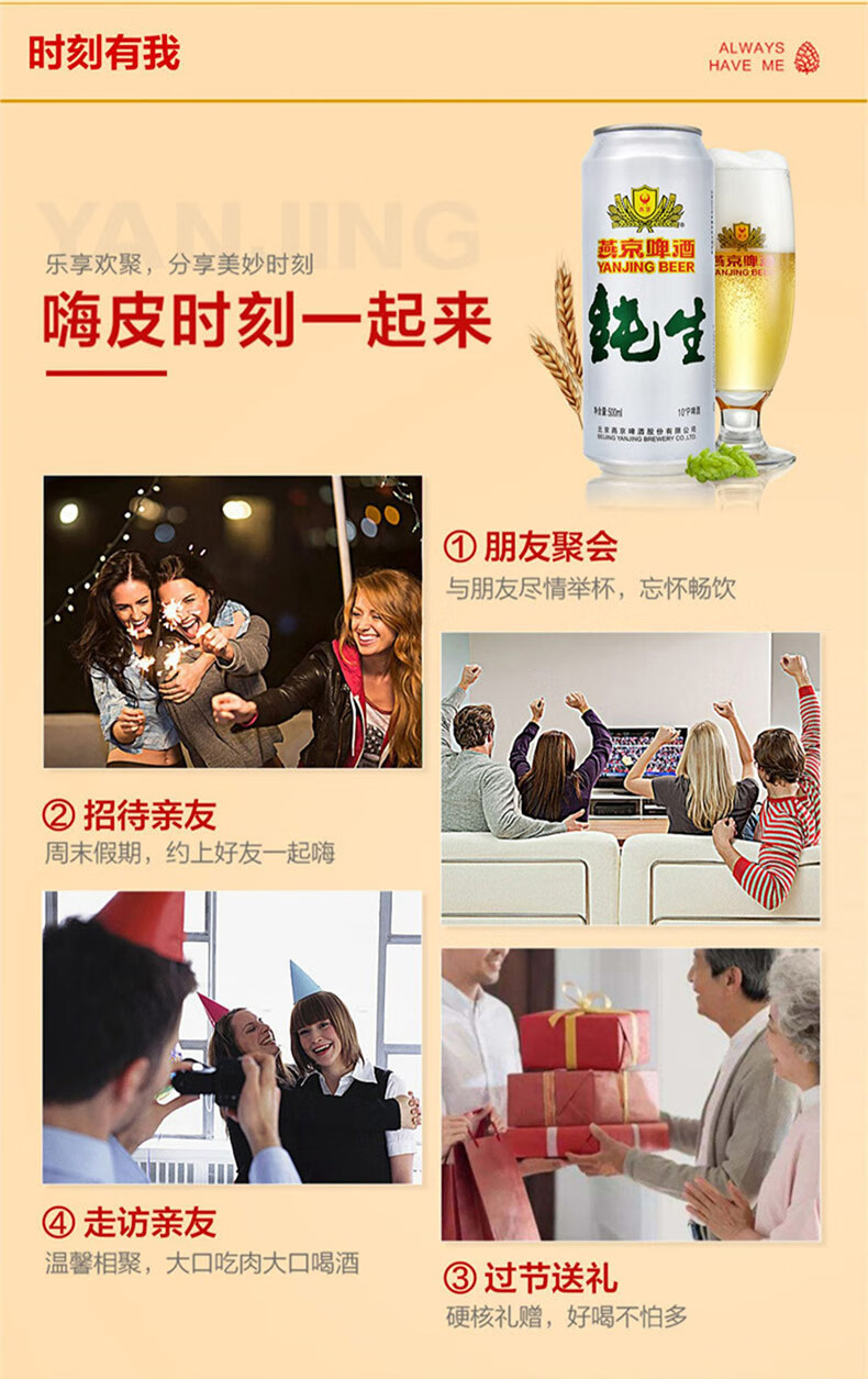 燕京啤酒 纯生10度500ml*12听 整箱装 春日热卖